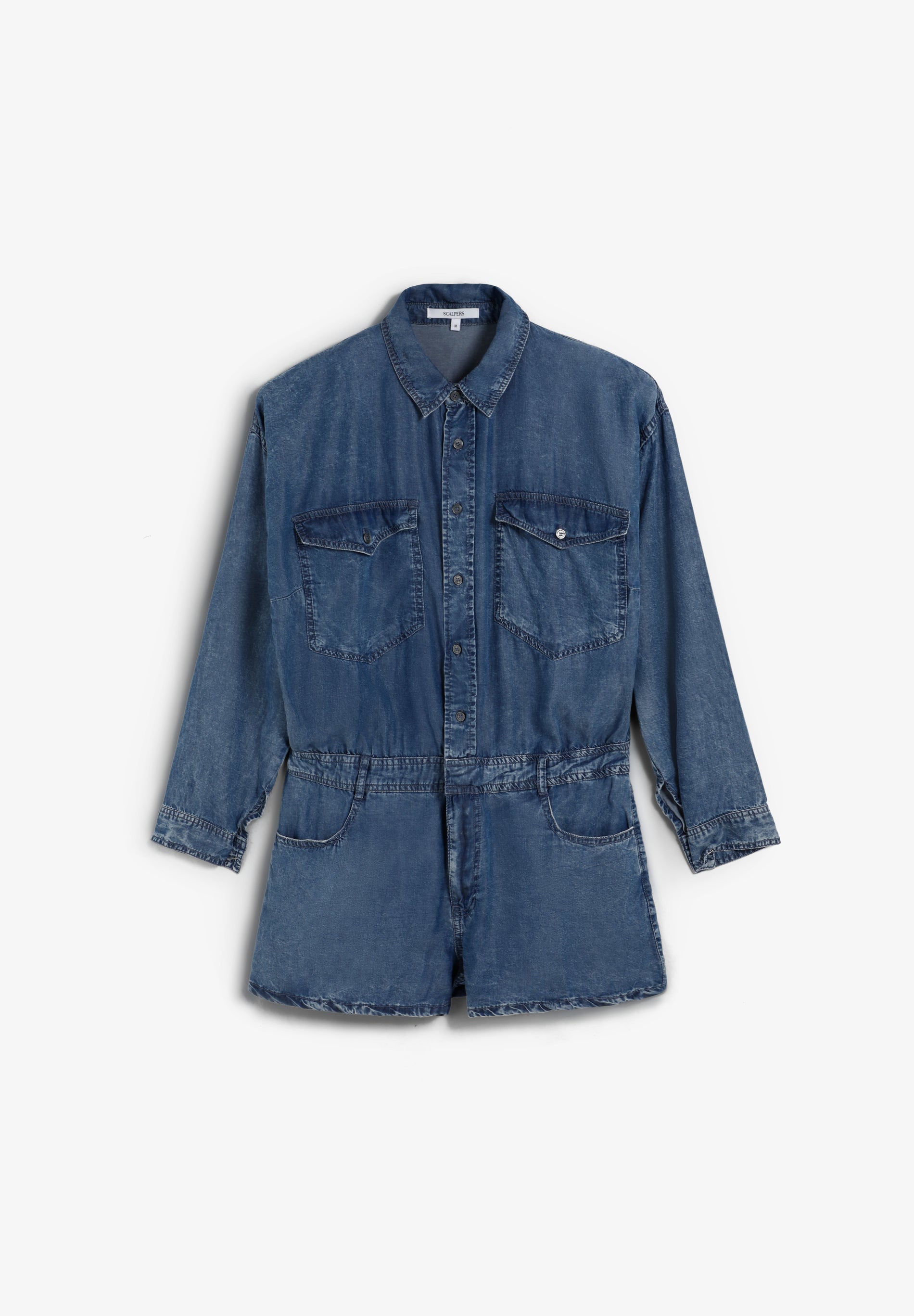 MACACÃO CURTO EFEITO DENIM