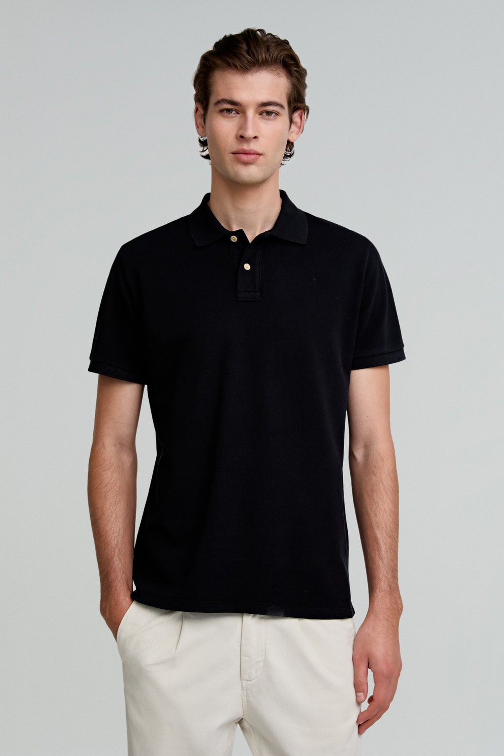 Camisa polo confecionada em 100% Algodão Orgânico BCI. Manga curta. Fecho na gola abotoado à frente. Pormenor de logótipo bordado no peito.