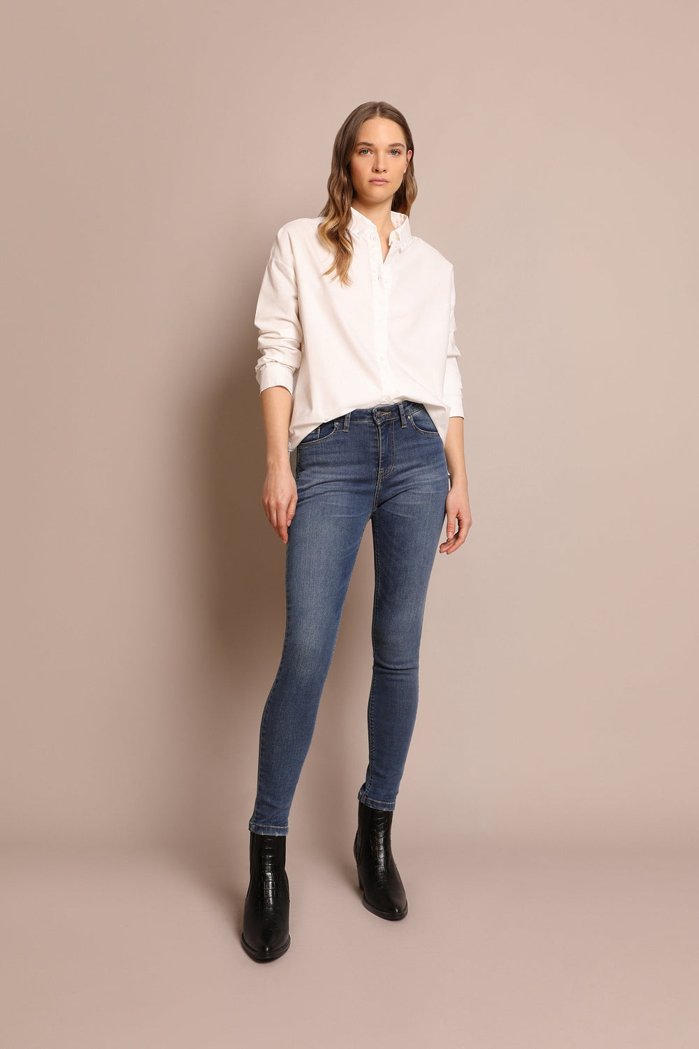 - Corte Slim fit, fecho com botão e zip.