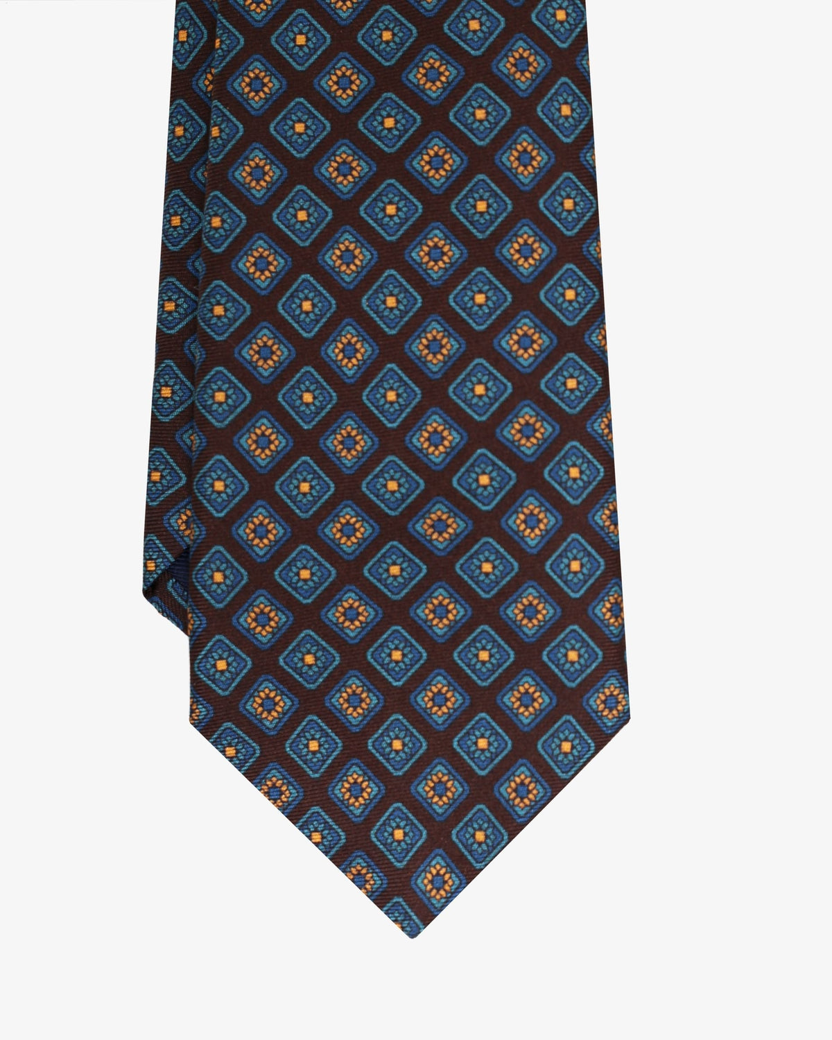 Corbata con motivo geométrico confeccionada en tejido 100% seda.