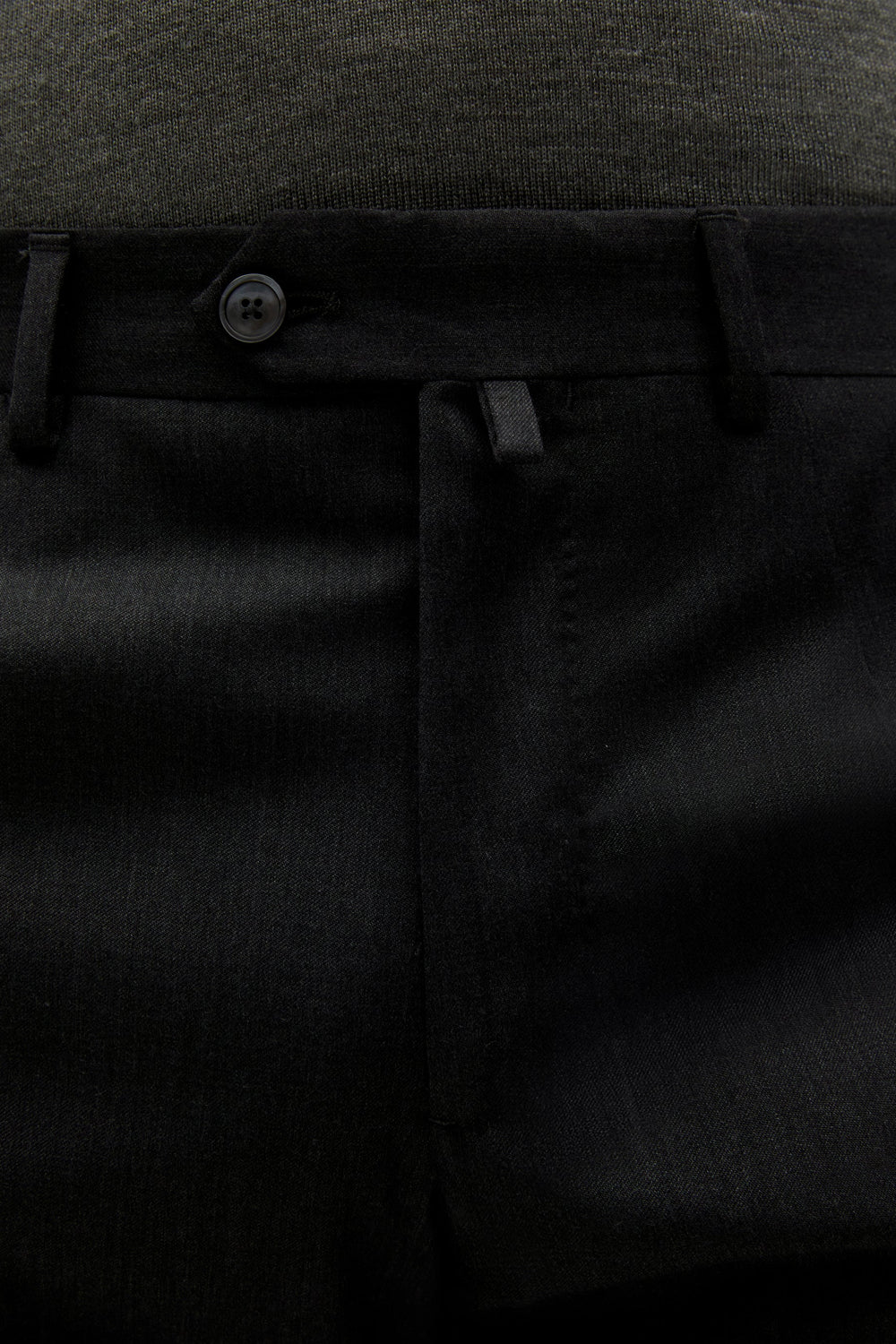- Pantalón de corte recto, cierre con botón prolongado en cintura y cremallera y bajo sencillo sin vuelta