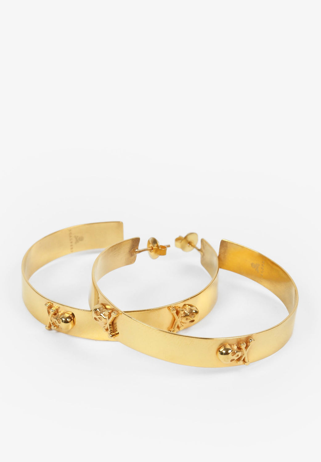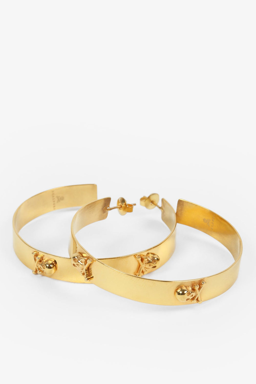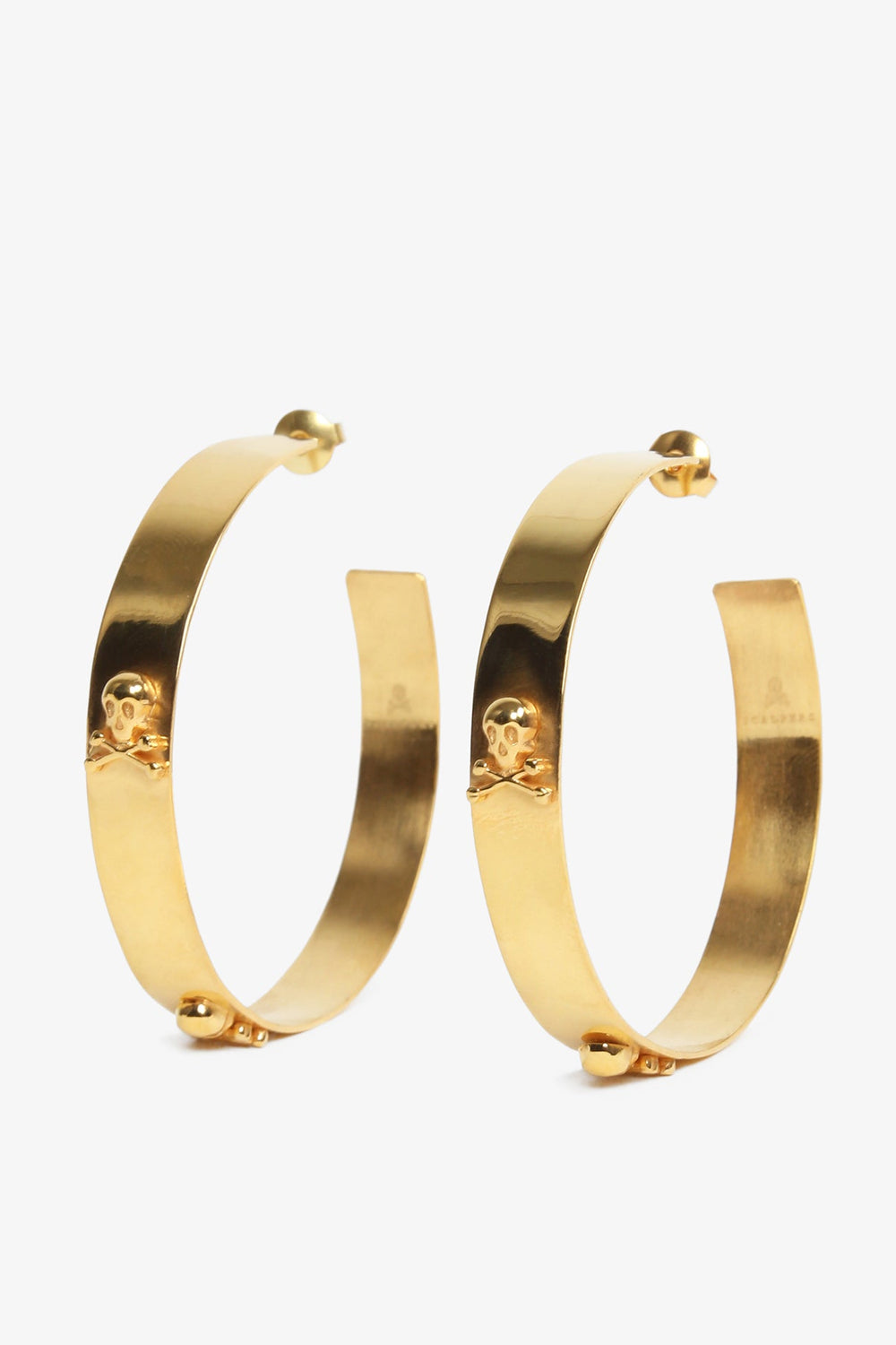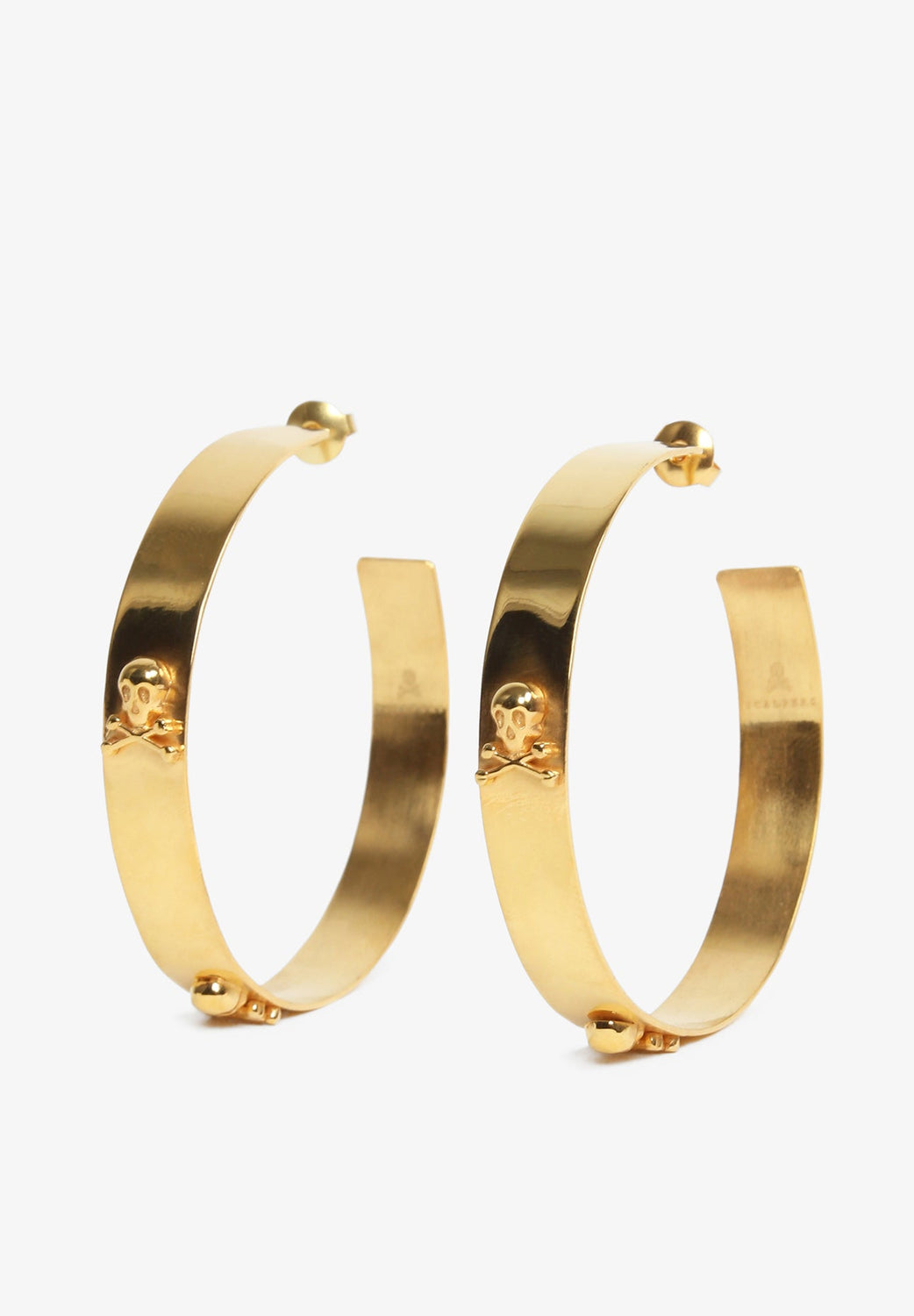 Brincos de argolas de bronze banhado a ouro de 18 K. Fecho de pressão e pormenor de logótipo.