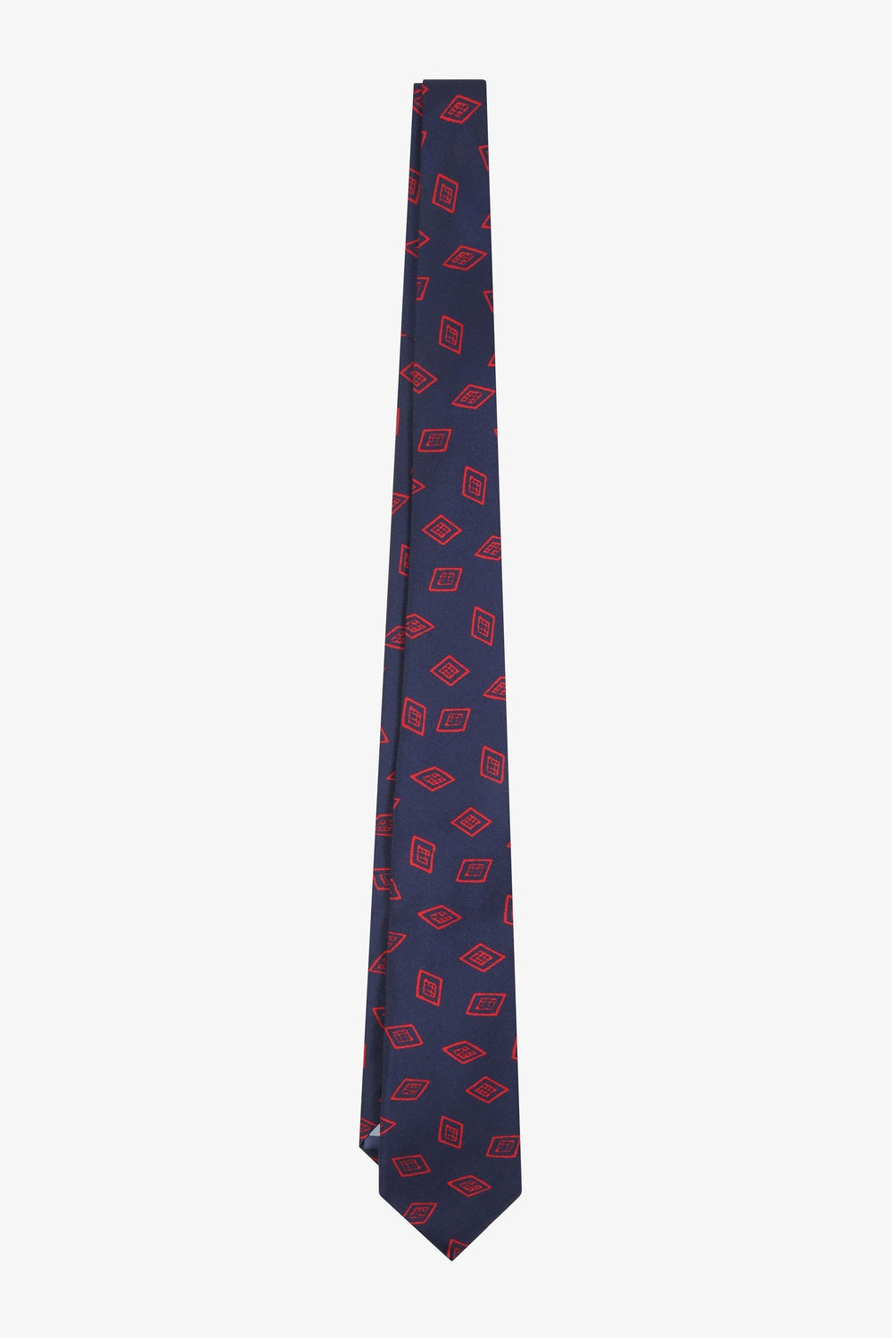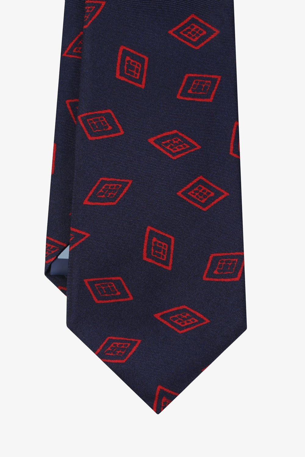 Gravata com motivo de losangos confecionada em tecido 100% seda.