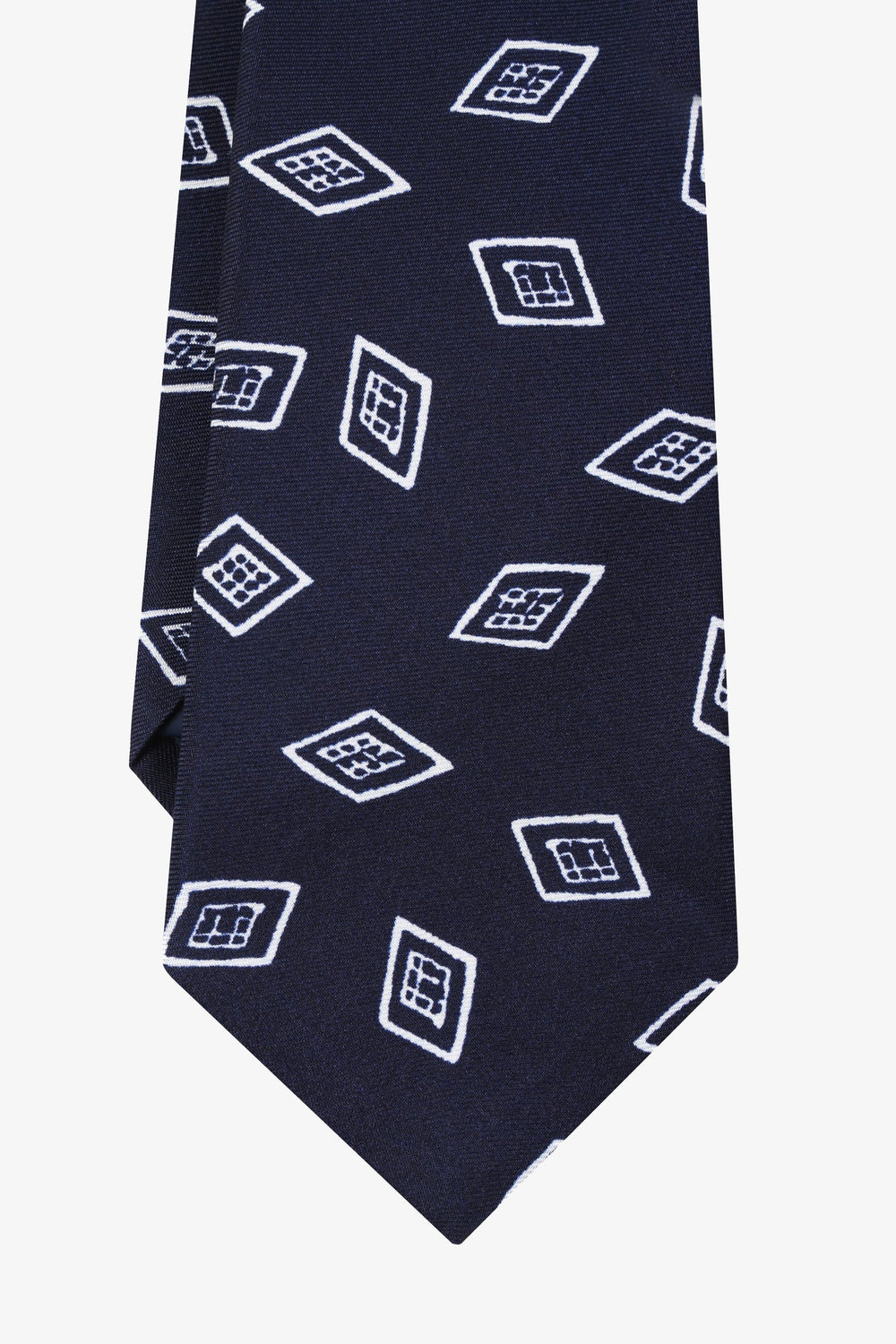 Gravata com motivo de losangos confecionada em tecido 100% seda.