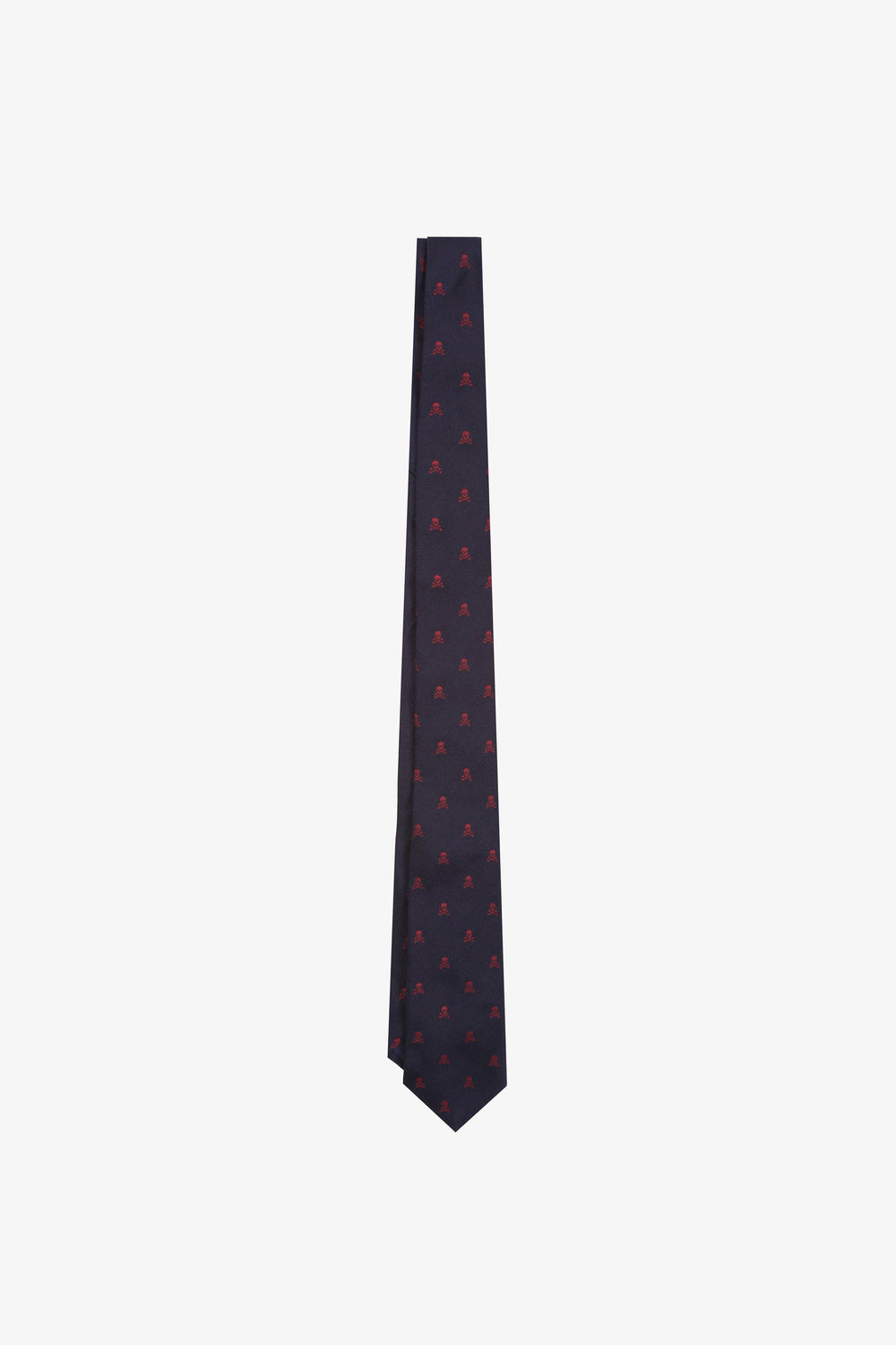 Gravata com motivo de caveiras, confeccionada em tecido 100% seda.