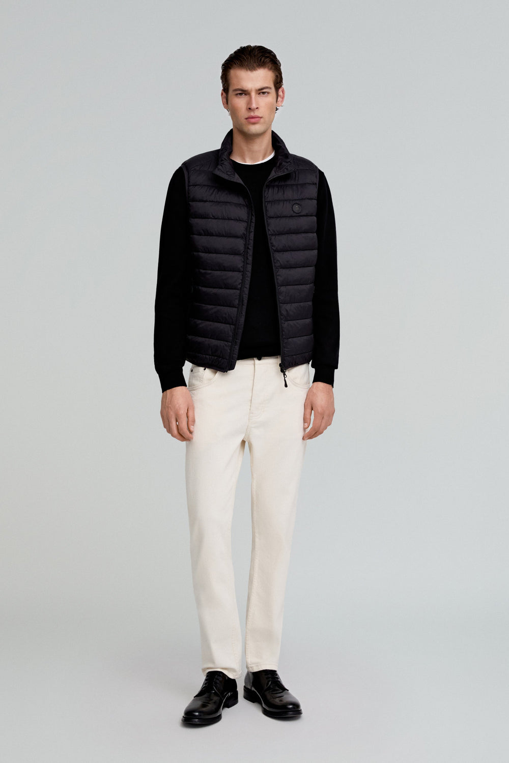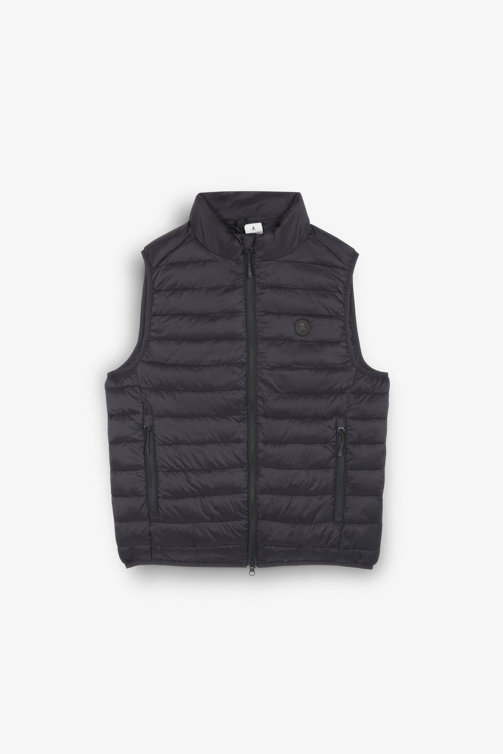 Colete acolchoado. Confeccionado em tecido de nylon e poliéster reciclado water repellent. Corte Slim Fit. Gola subida. Fecho com fecho de correr de duplo cursor. Bolsos com fecho de correr e bolso interior. Detalhe de emblema de borracha no peito.