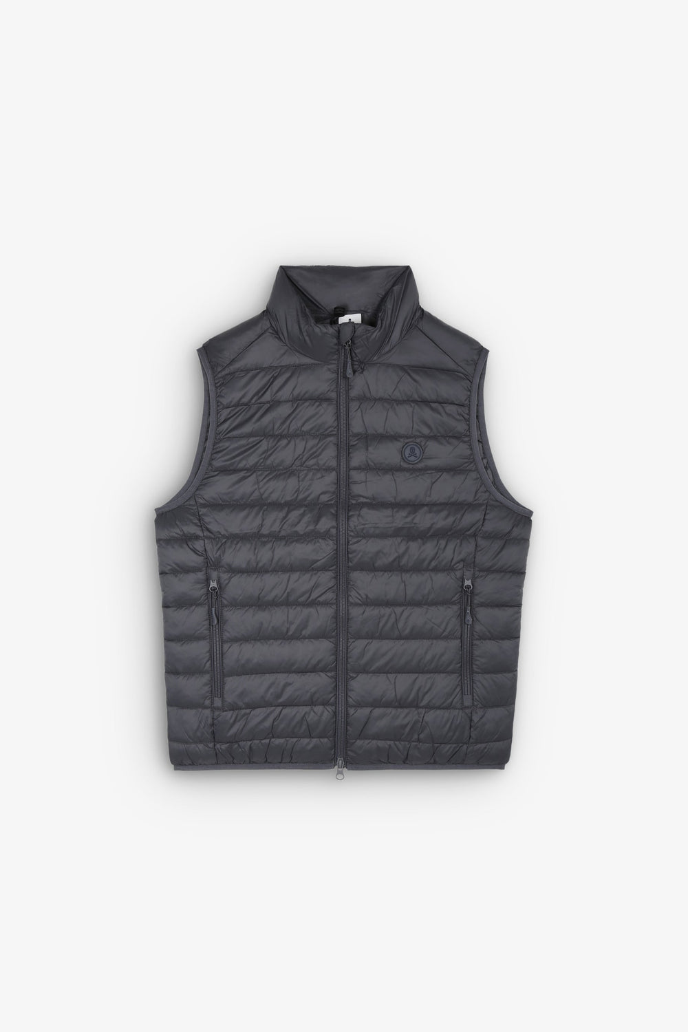 Colete acolchoado. Confeccionado em tecido de nylon e poliéster reciclado water repellent. Corte Slim Fit. Gola subida. Fecho com fecho de correr de duplo cursor. Bolsos com fecho de correr e bolso interior. Detalhe de emblema de borracha no peito.
