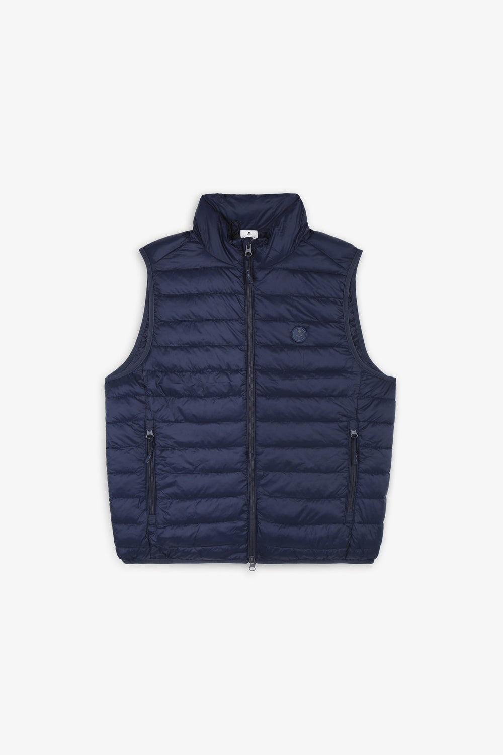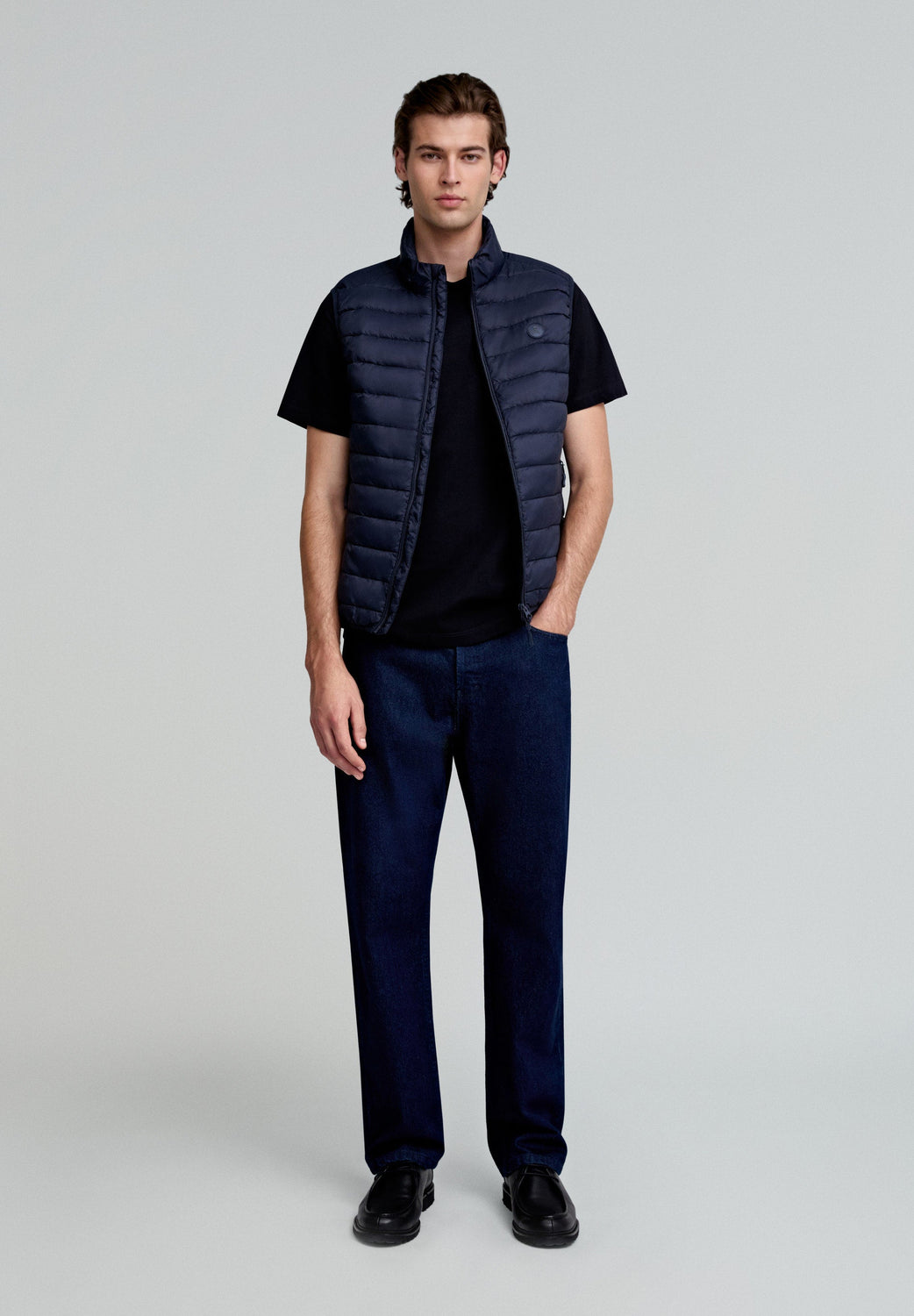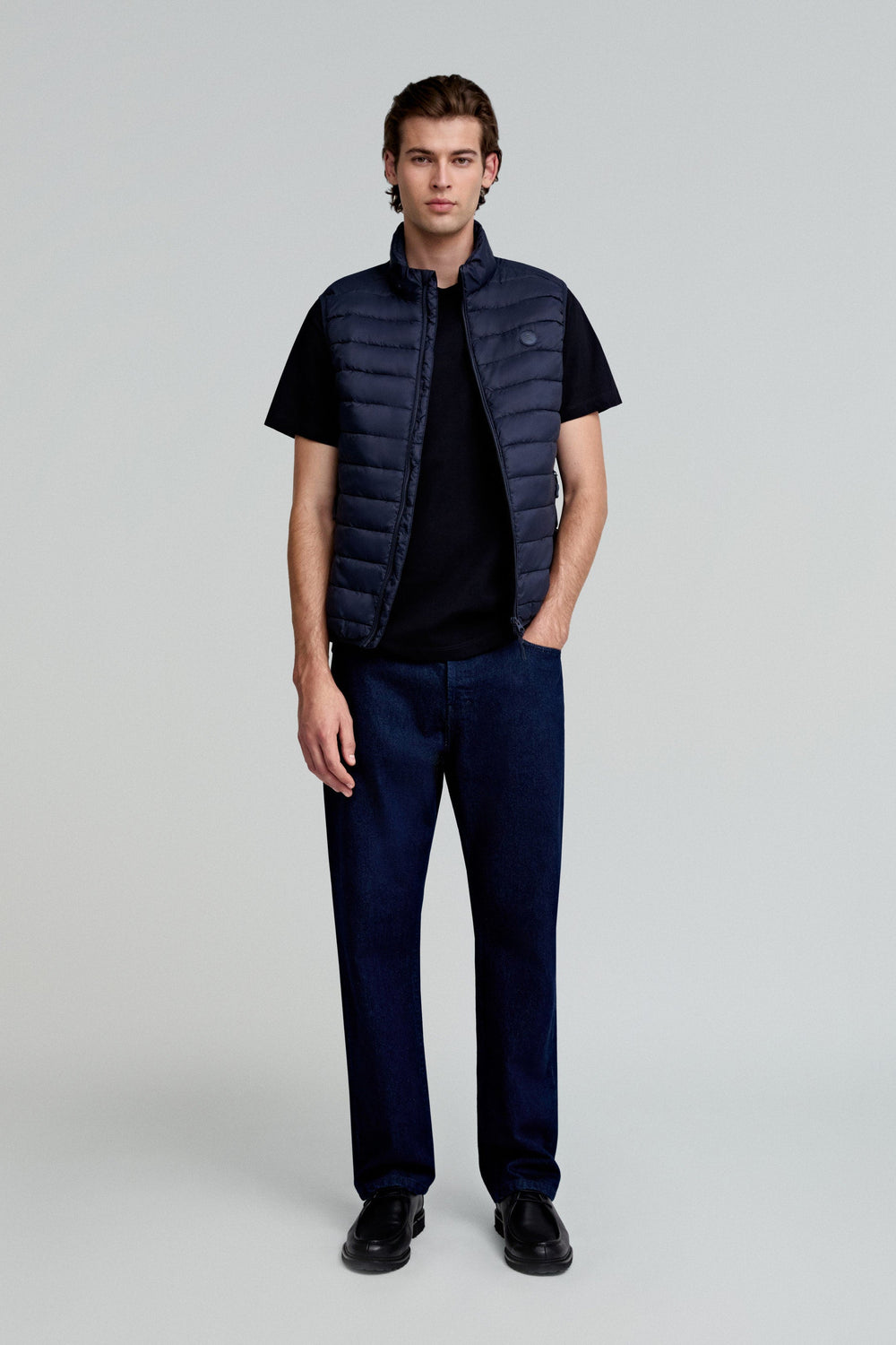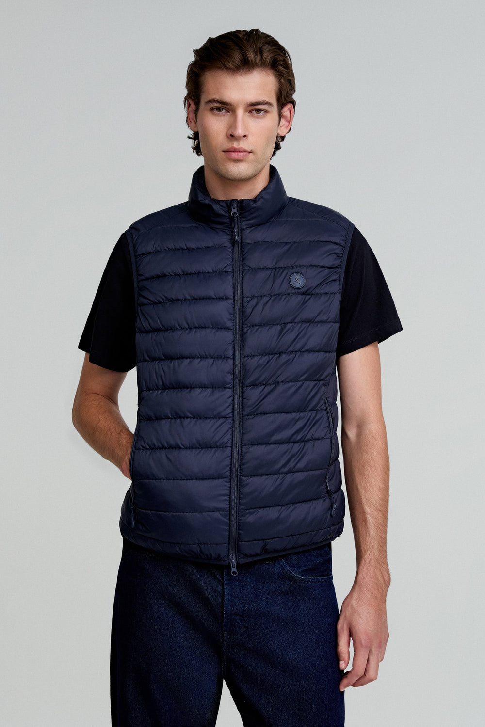 Colete acolchoado. Confeccionado em tecido de nylon e poliéster reciclado water repellent. Corte Slim Fit. Gola subida. Fecho com fecho de correr de duplo cursor. Bolsos com fecho de correr e bolso interior. Detalhe de emblema de borracha no peito.
