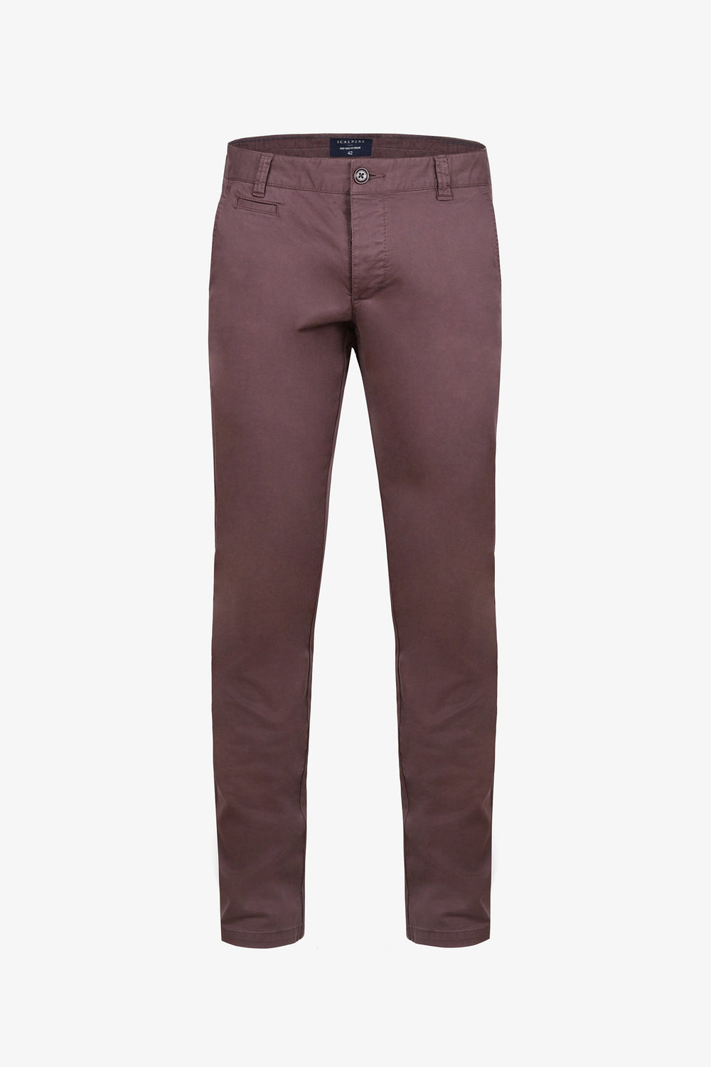 Calças chino tingidas em algodão com um acabamento suave.