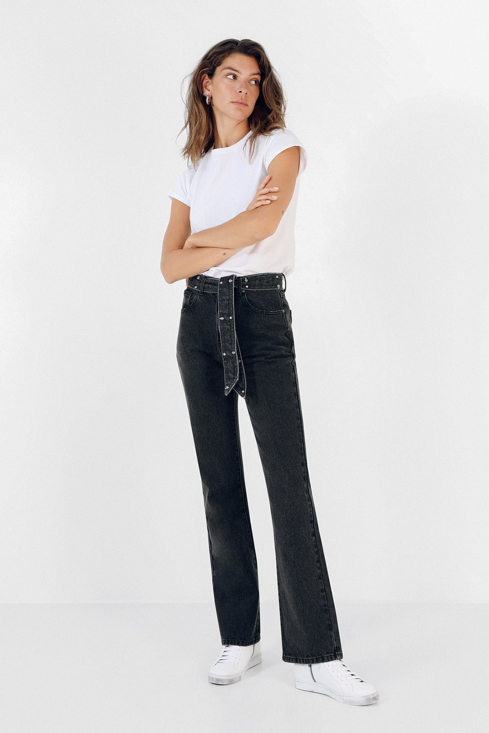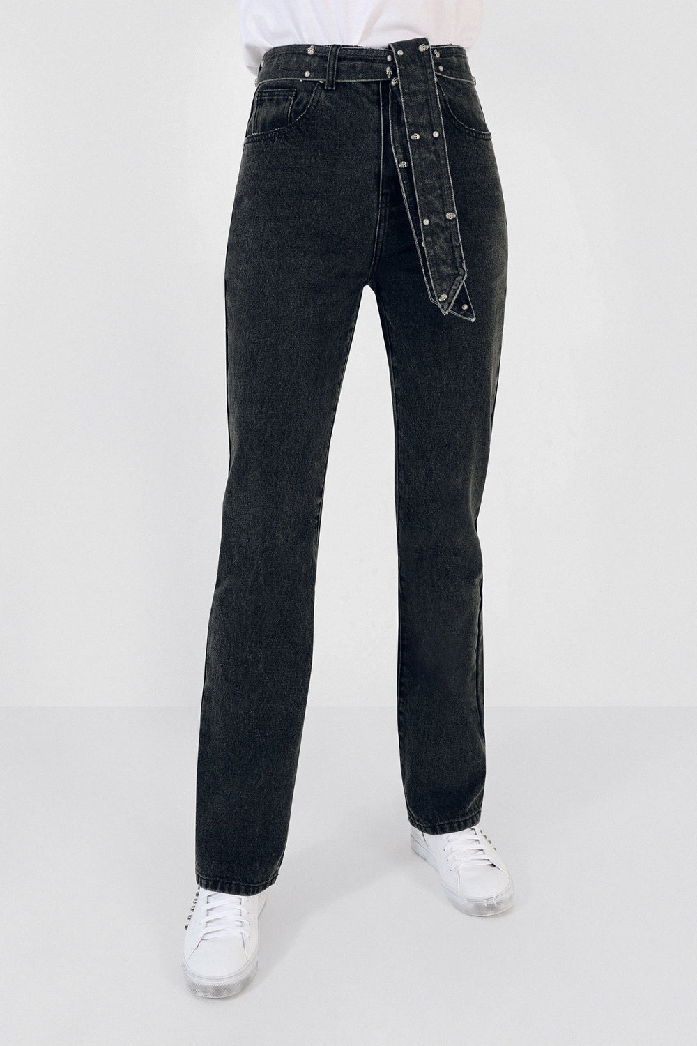 JEANS COM LAÇADA E TACHAS