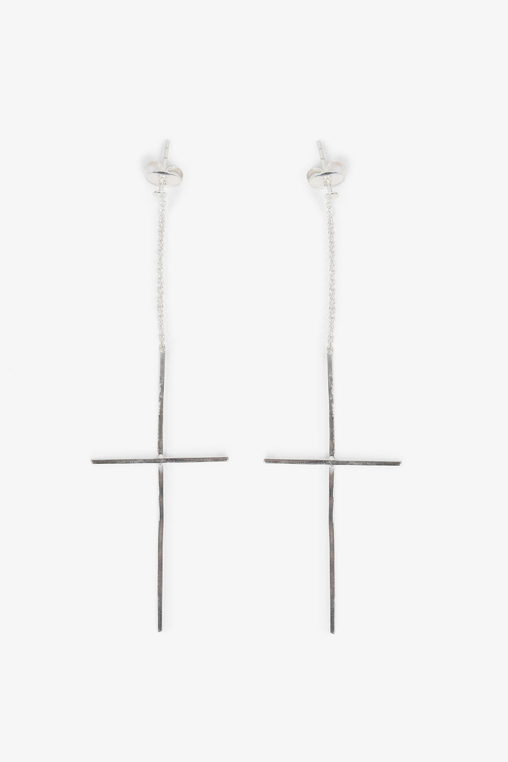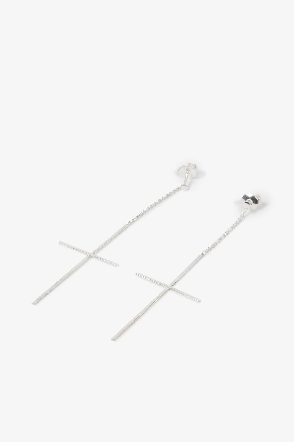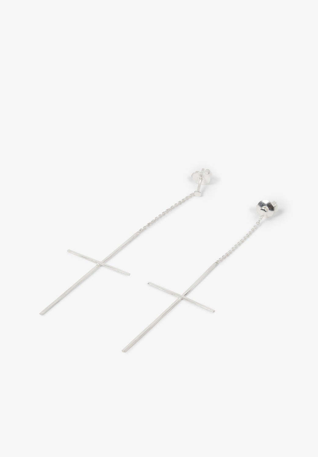 Pulseira de corrente de bronze banhada a prata. Fecho de pressão e cruzes.