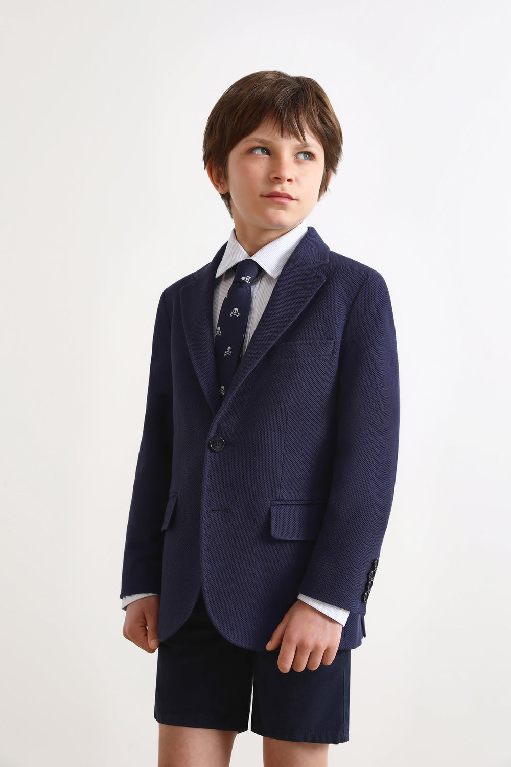 - Corte Regular Fit, decote com lapelas entalhadas e fecho com botão.