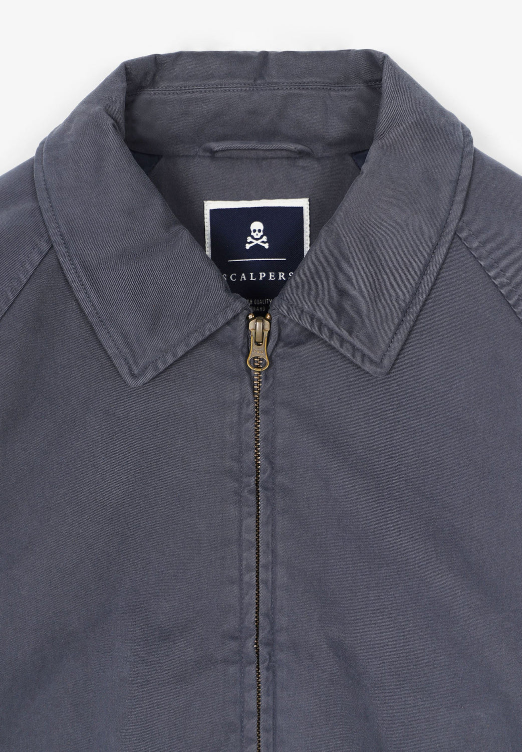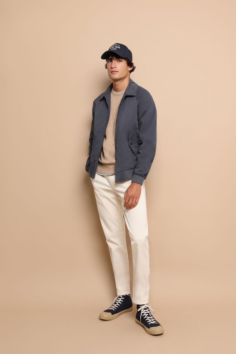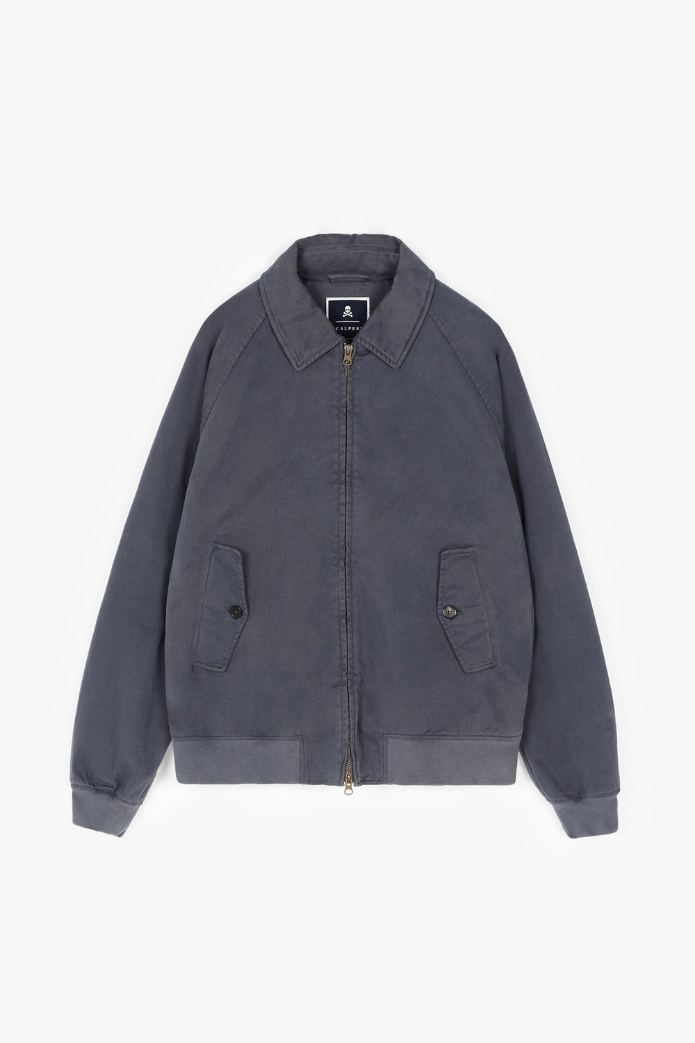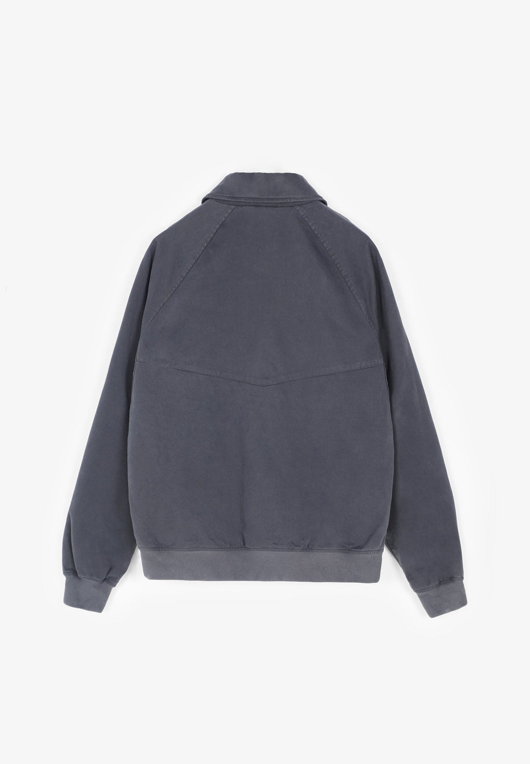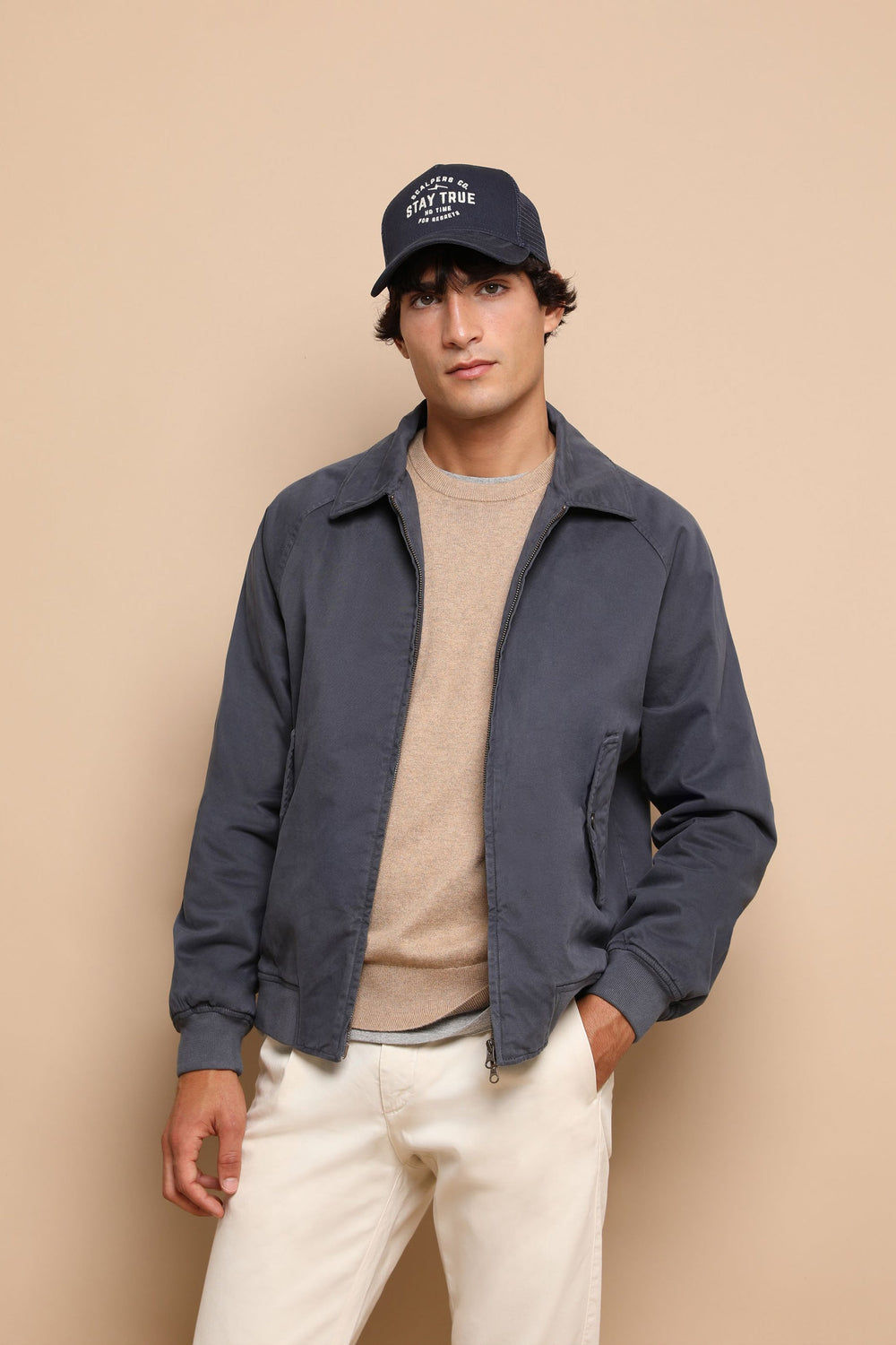Casaco tipo bomber confecionado em algodão com fecho de zip e bolsos com aba.