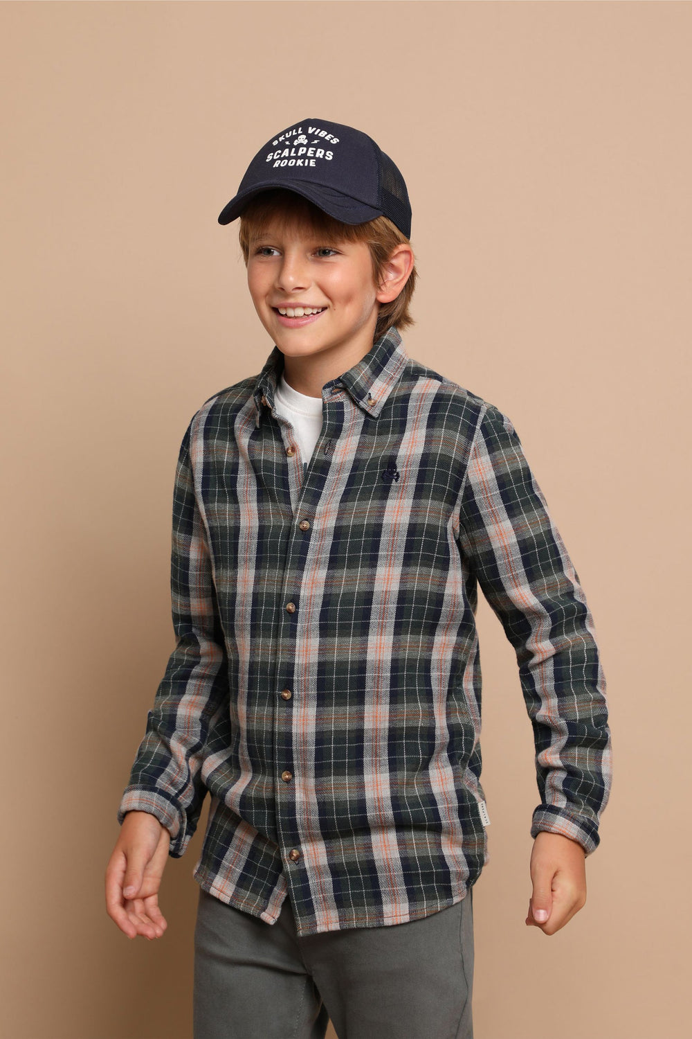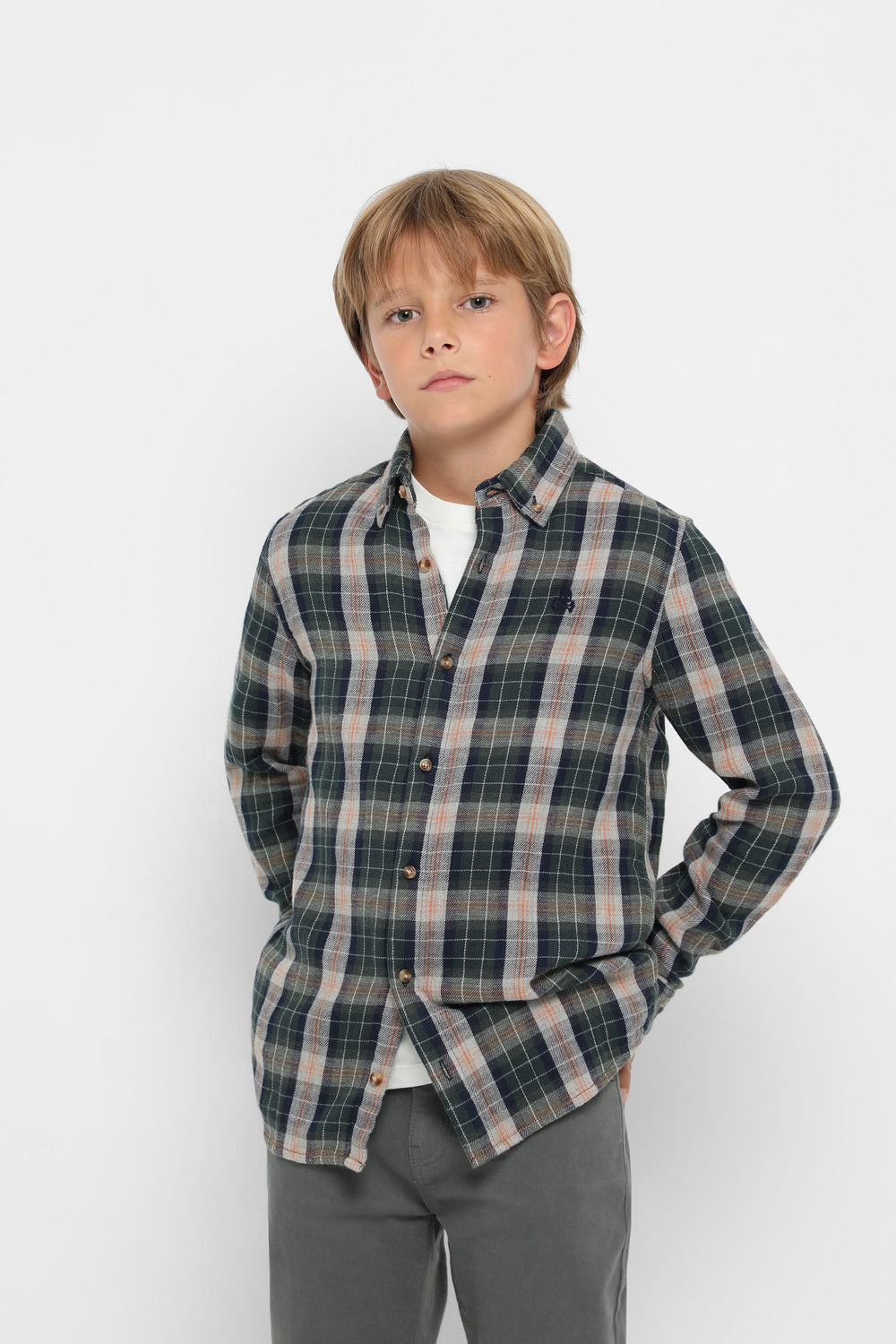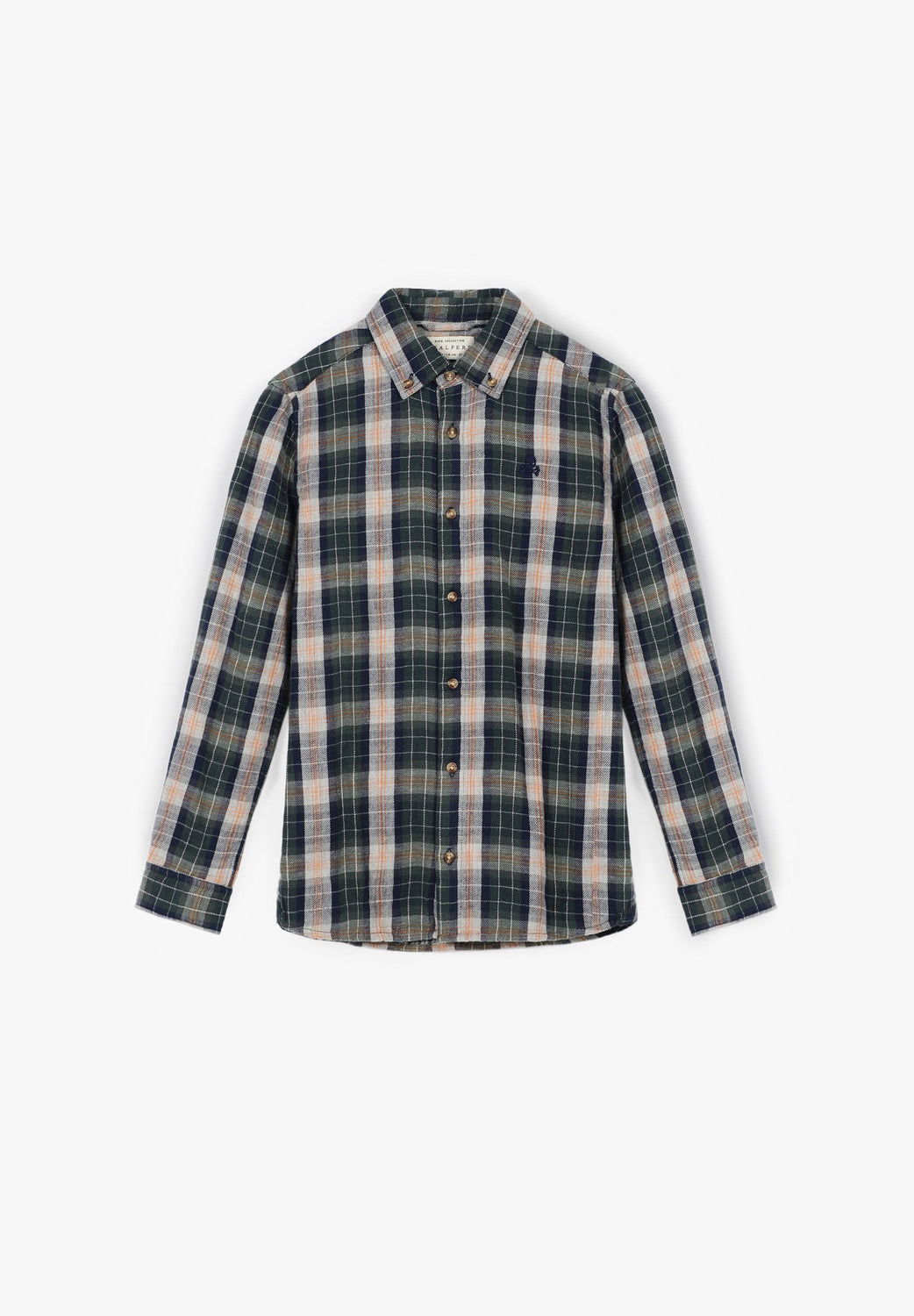 Camisa com estampado de quadrados tartan confecionada em 100% algodão. Corte Regular Fit, colarinho com botões e fecho com botões. Manga comprida terminada em punho com botões e pormenor de logótipo bordado no tom.
