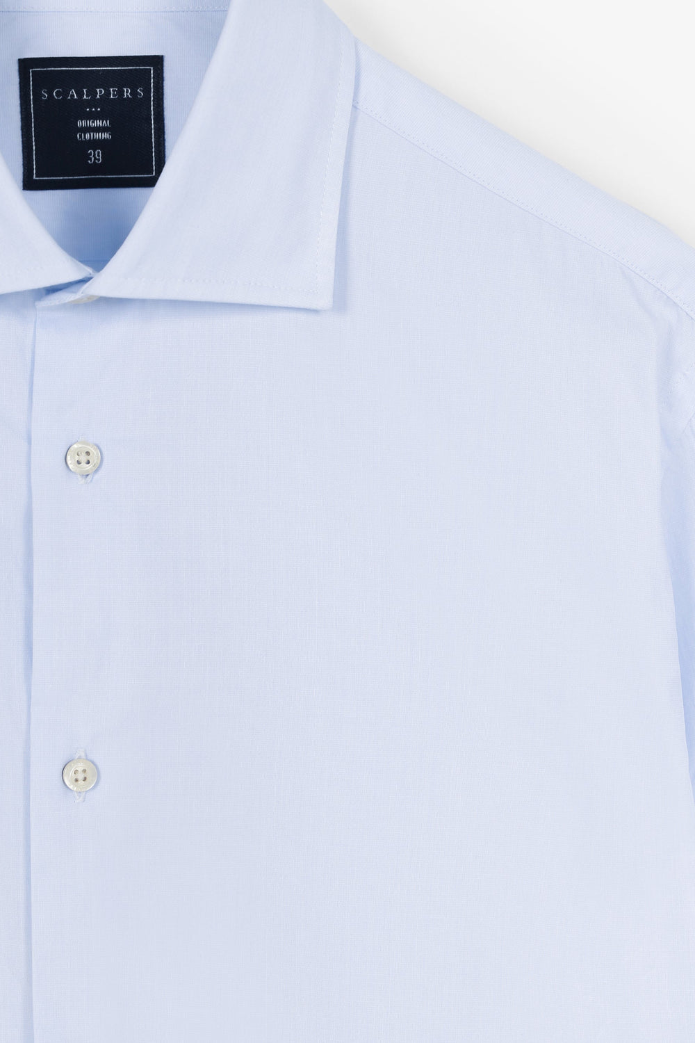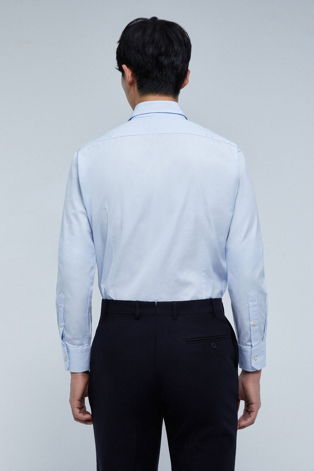 Camisa clássica. Confecionada em tecido italiano 100% algodão. Corte Slim Fit. Colarinho clássico. Fecho com botões. Manga comprida terminada em punho misto