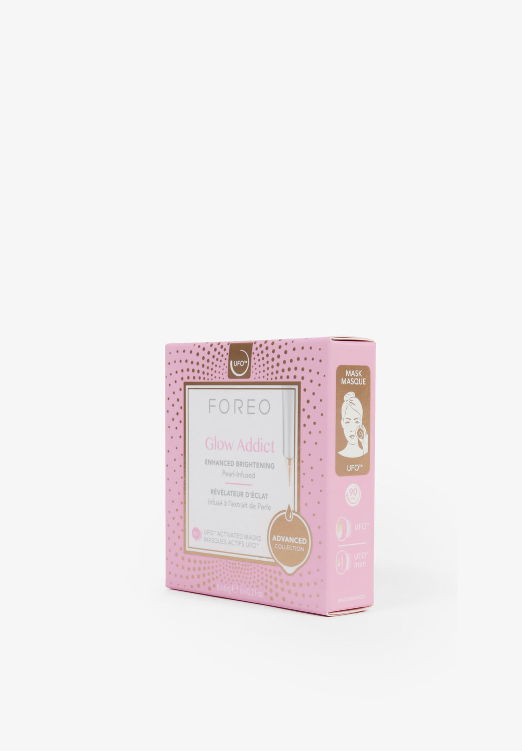 Máscara facial de efeito resplandecente para UFO da FOREO. Perfeita para peles apagadas que precisam de um extra de luminosidade, equilibra o tom da pele e alivia a sensação de fadiga. Combina uma potente terapia de luz verde com ingredientes que iluminam e equilibram o tom da pele. A fórmula natural, com extrato de pérolas e rica em nutrientes, está repleta de niacinamida, vitamina E e vitamina C. É compatível com todos os dispositivos da gama UFO. Inclui 6 máscaras Glow Addict que regeneram e nutrem a cútis em apenas 90 segundos.