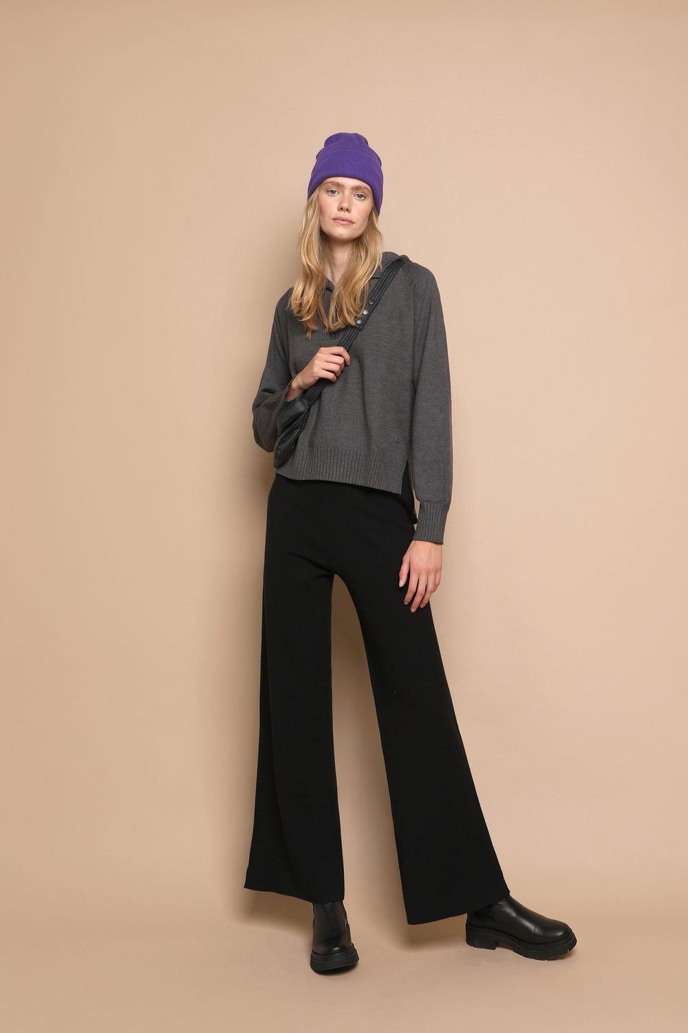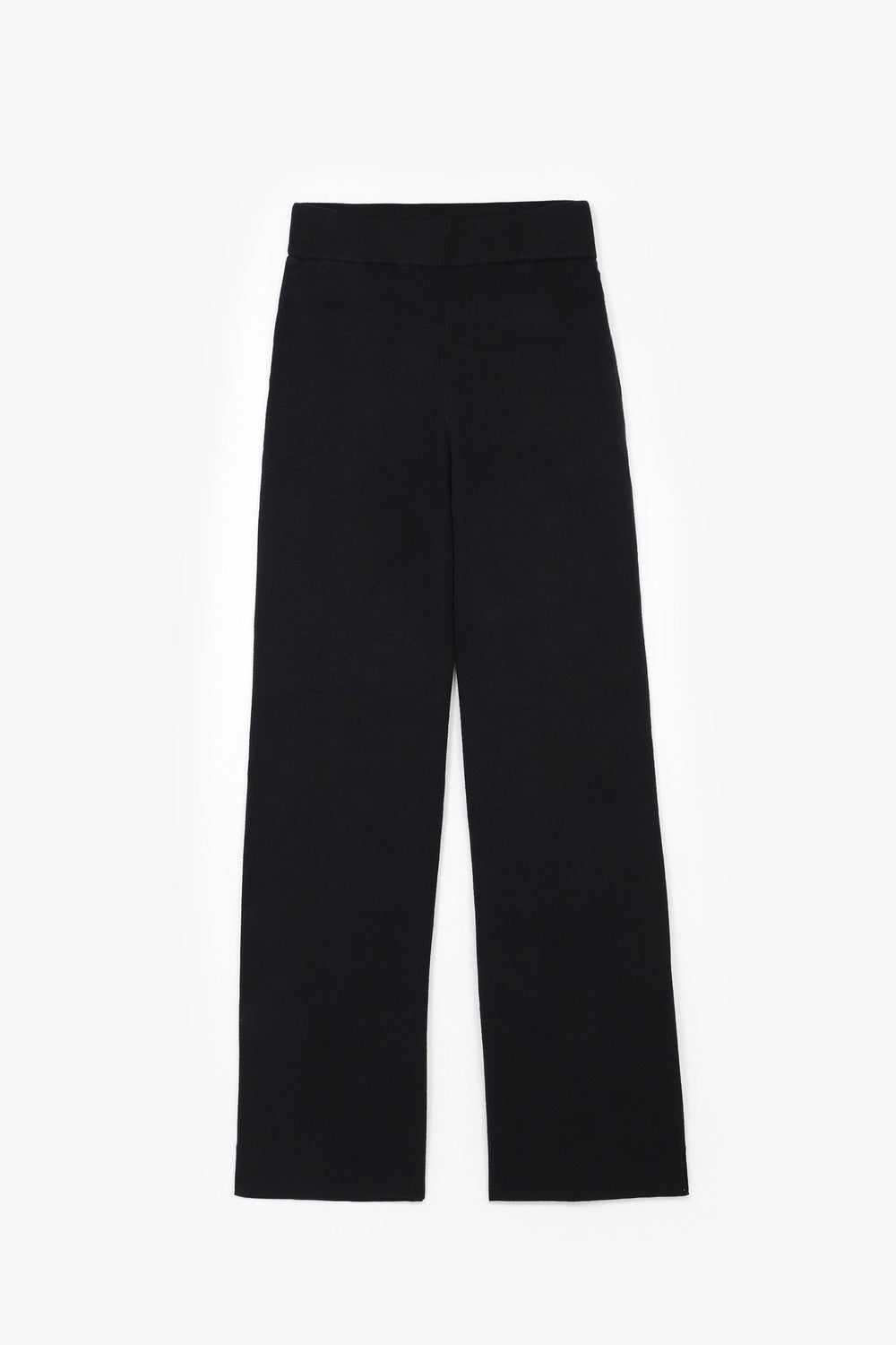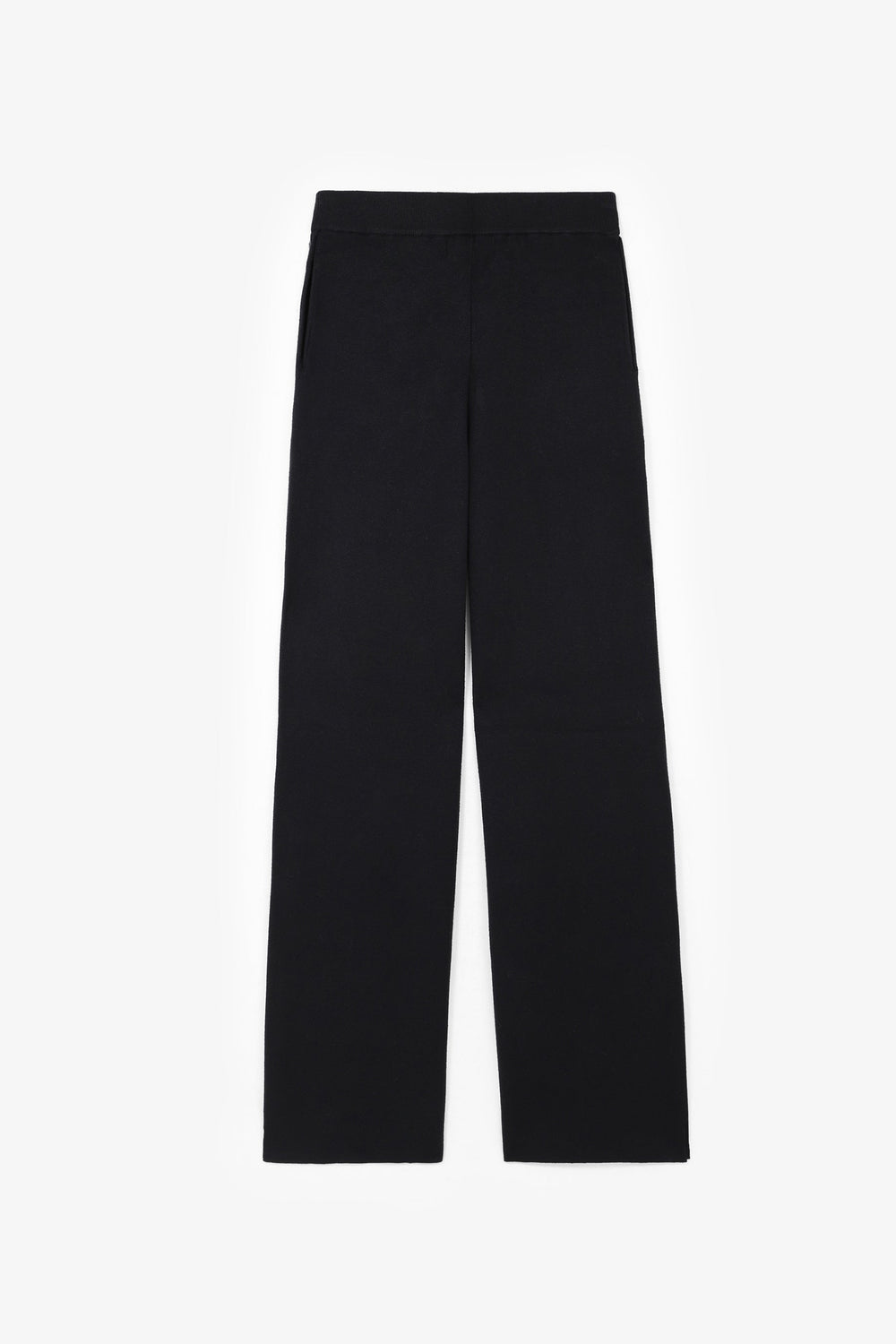Calças de malha confecionadas em tecido ligeiramente elástico. Corte Regular Fit e cós elástico.