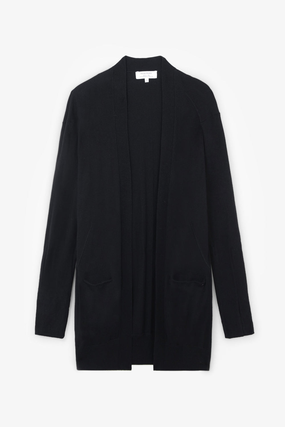 Cardigã de malha confecionado em mistura de algodão, lã e caxemira. Corte Regular Fit, manga comprida e bolsos laterais.
