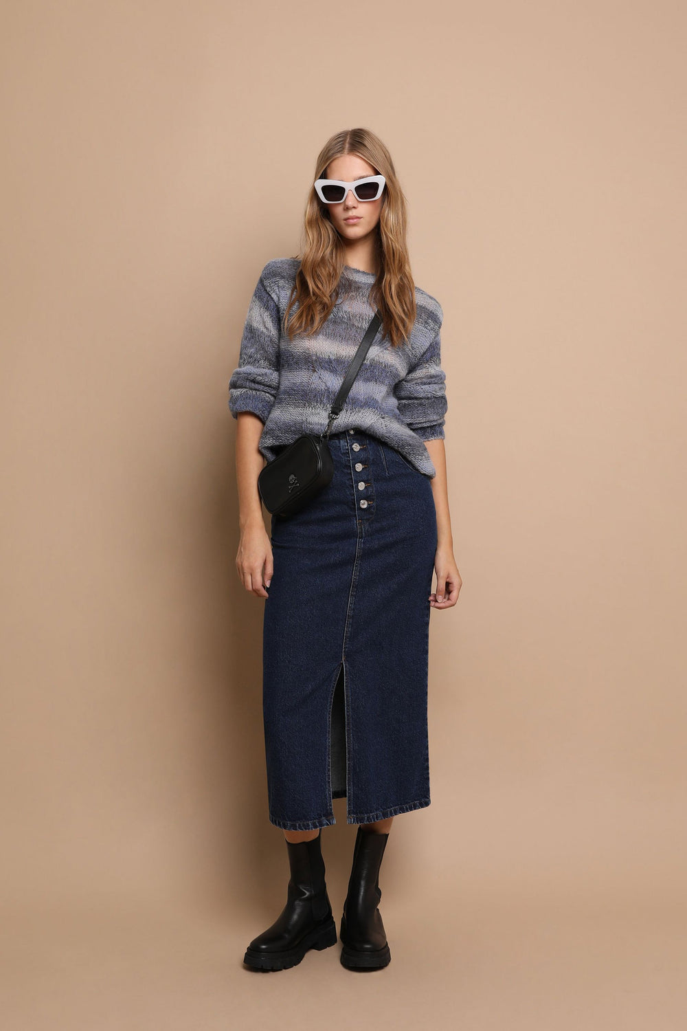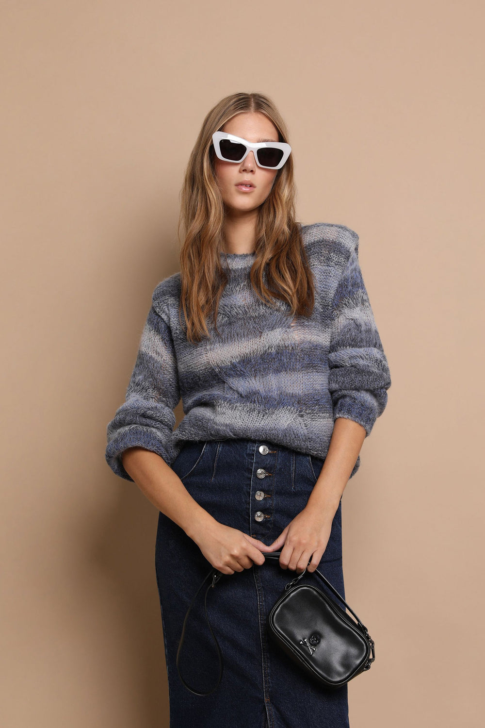 Sweater com pormenor de ombros confecionada em mistura de lã e alpaca. Corte Regular Fit, decote redondo e manga comprida com ombreiras terminada em punho.