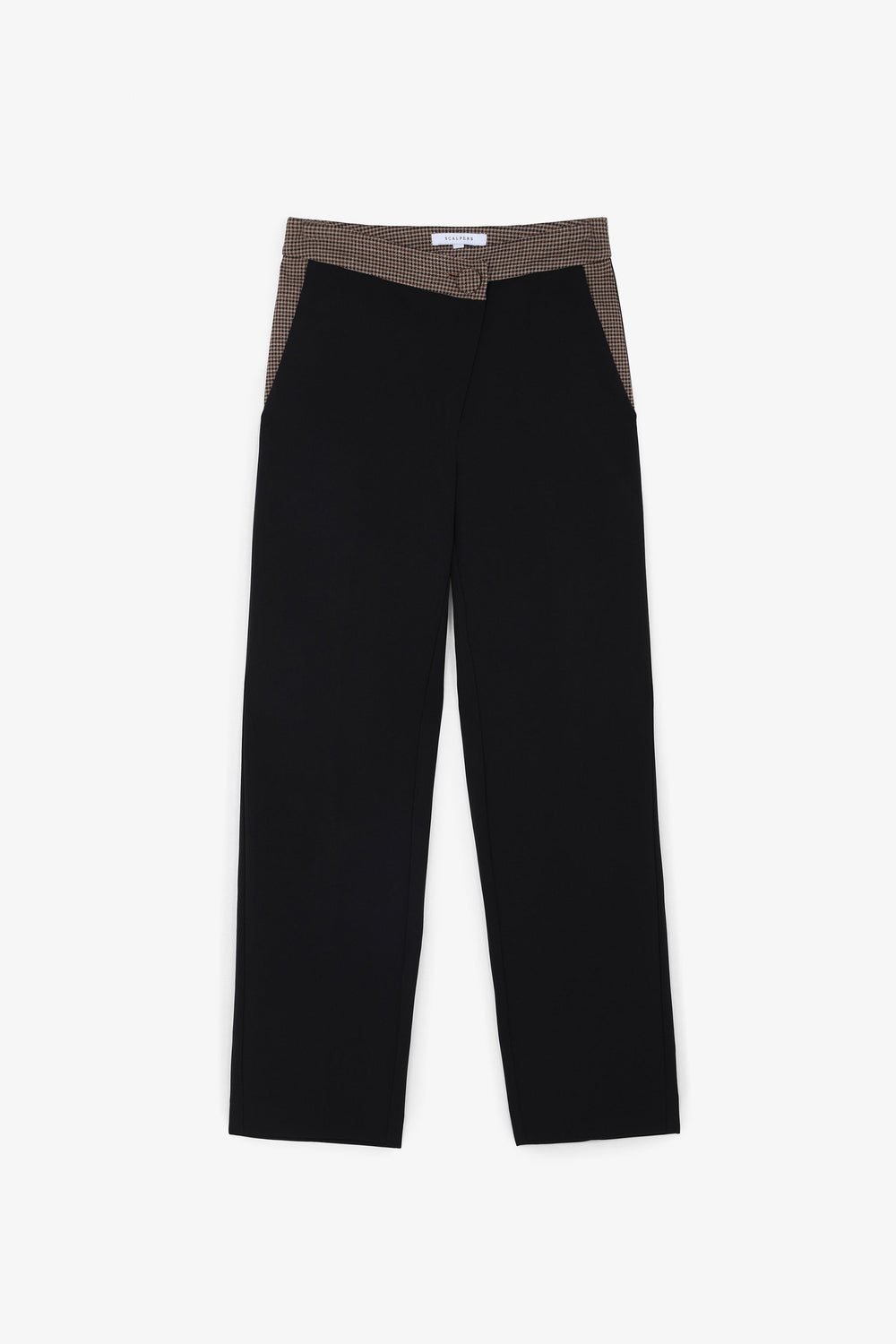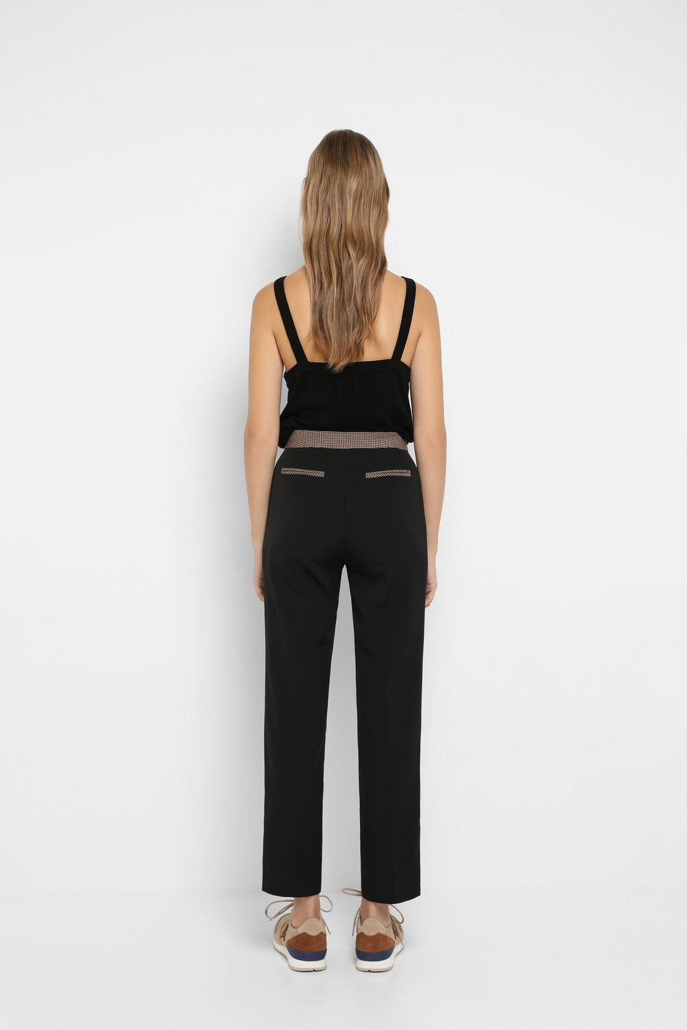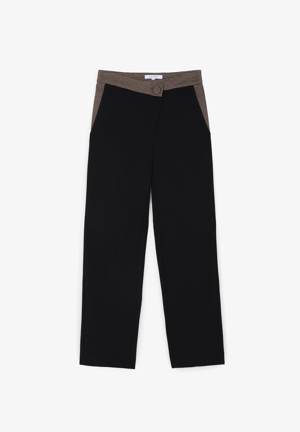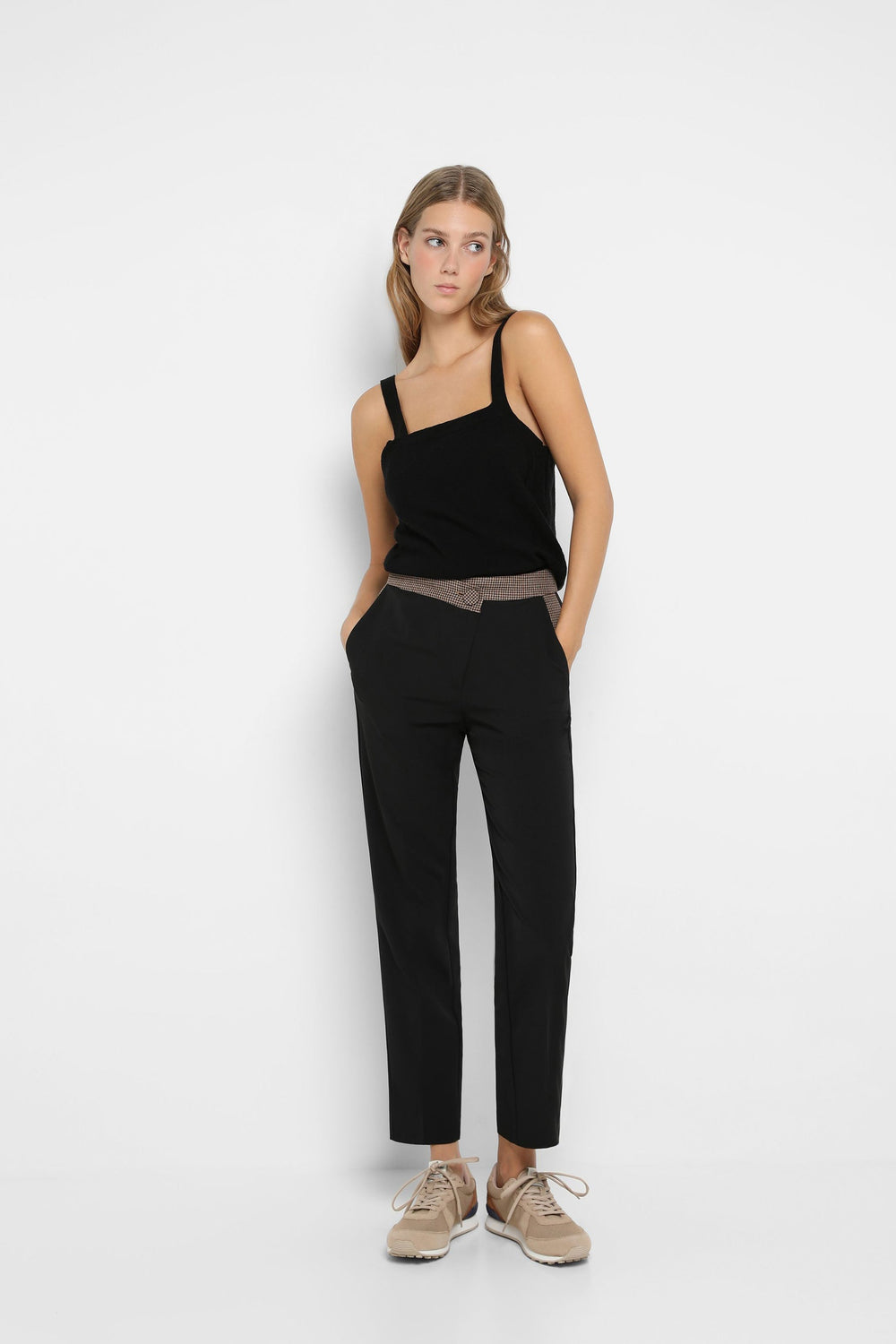 Calças com cós com estampado Harris confecionadas em tecido ligeiramente elástico. Corte Regular Fit, fecho com botão e zip. Bolsos laterais.