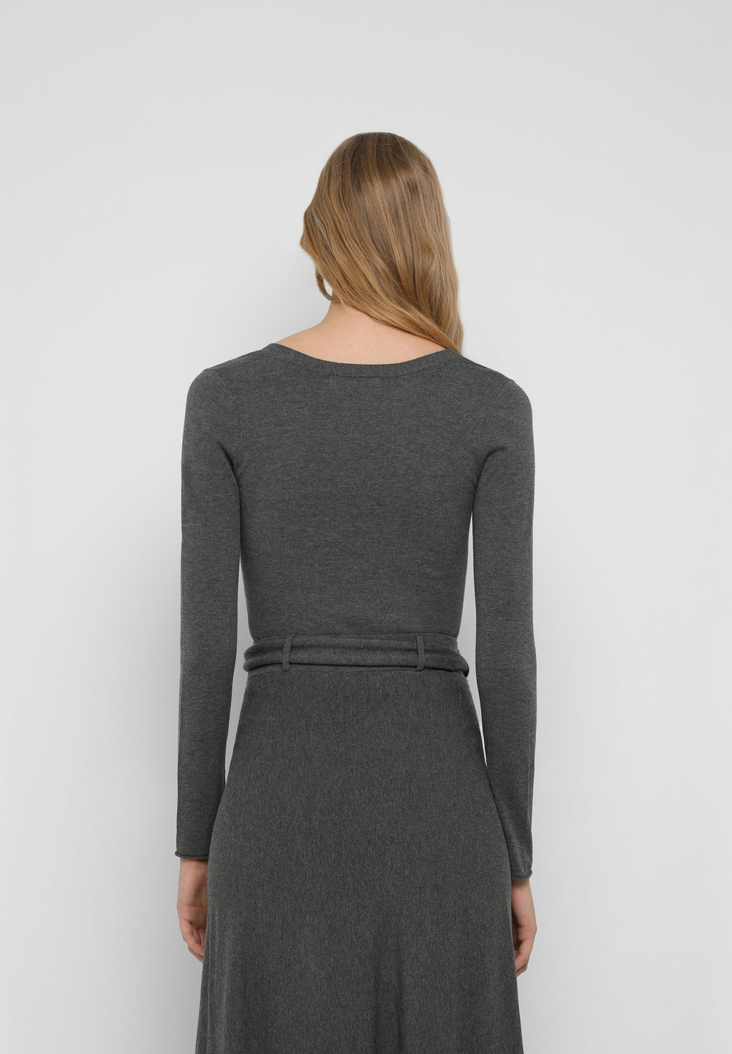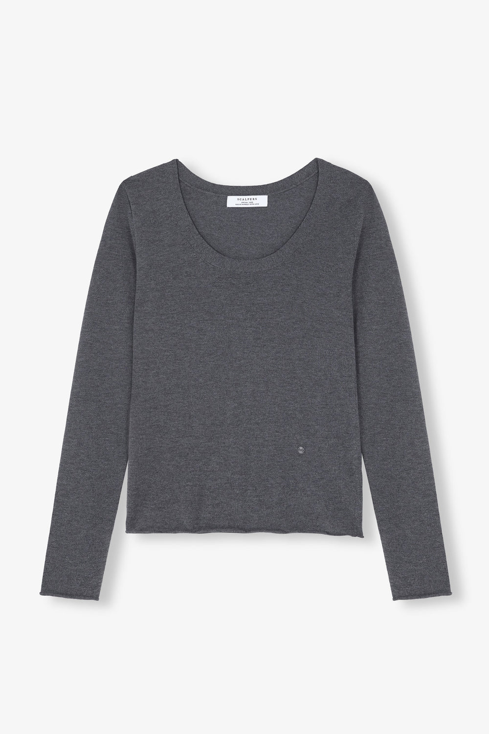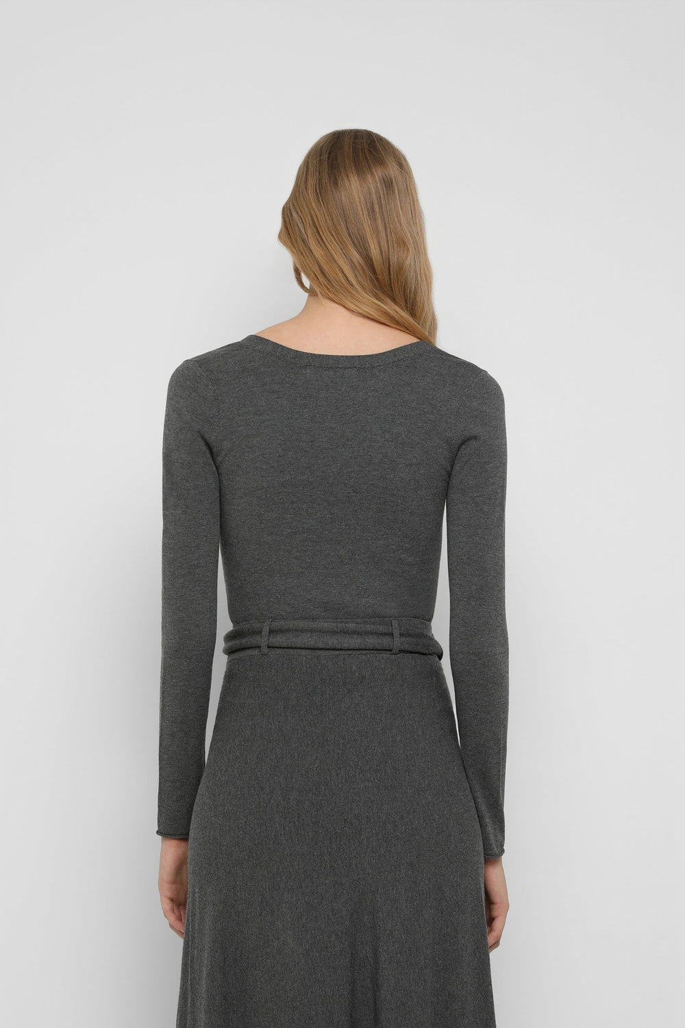 Sweater de malha dupla posição. Corte Slim Fit. Gola redonda de um lado e decote do outro. Manga comprida. A sweater pode ser usada dos dois lados.