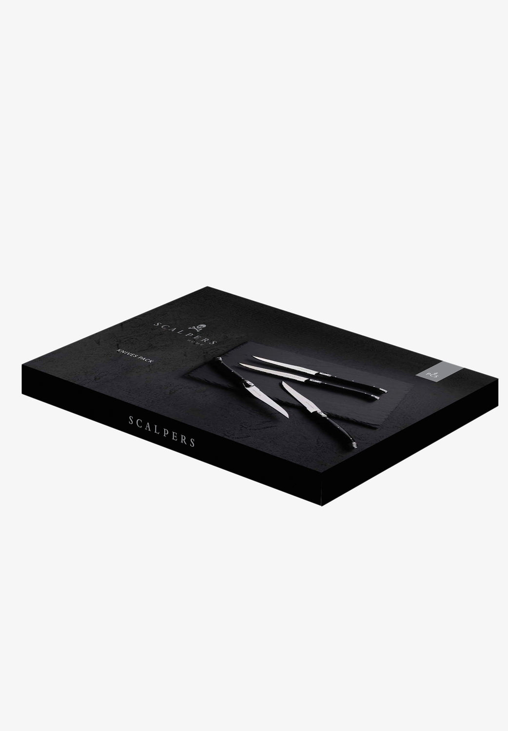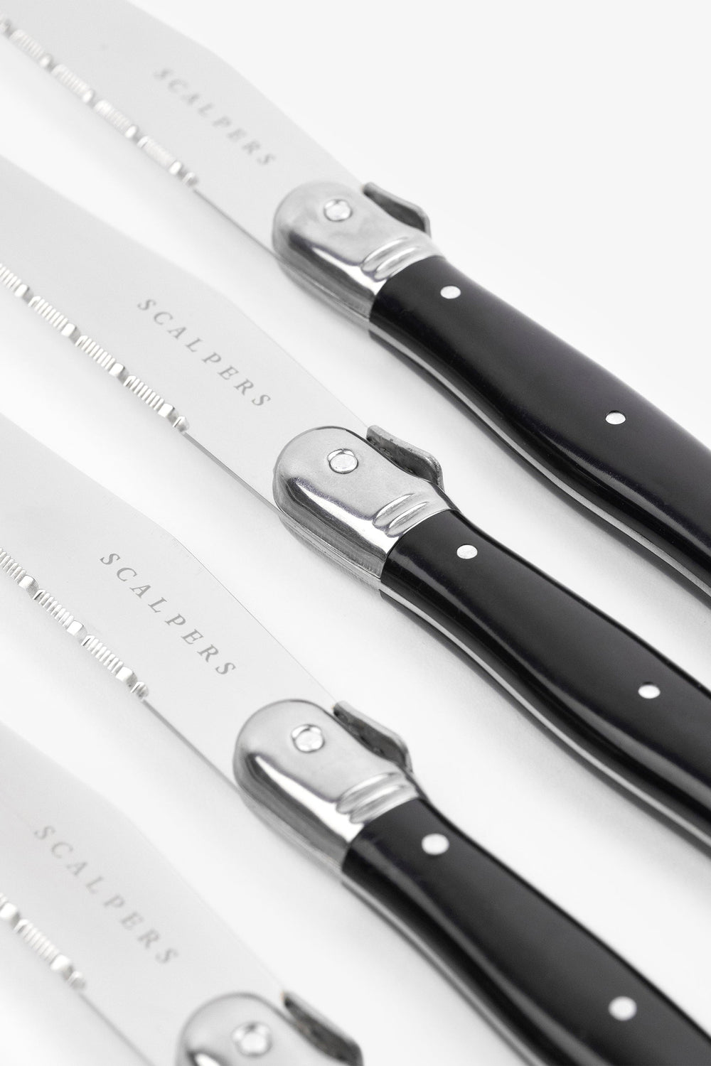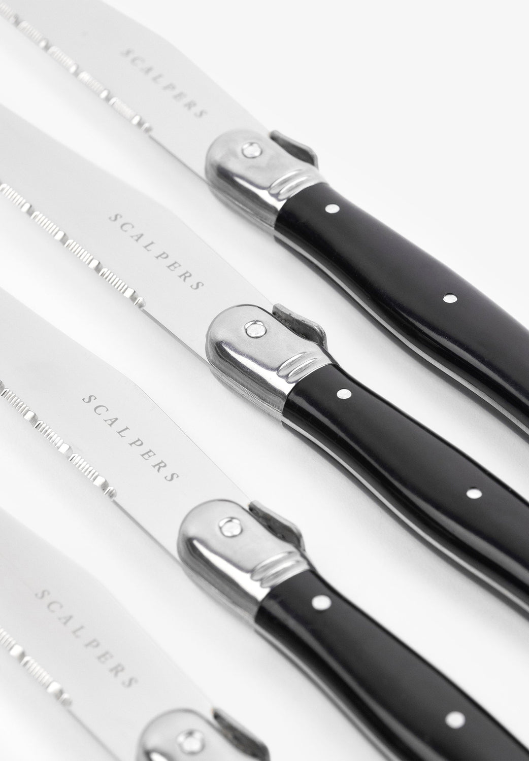 Pack de quatro facas. 100% aço inoxidável Pormenor de logótipo O conjunto contém: 4 peças