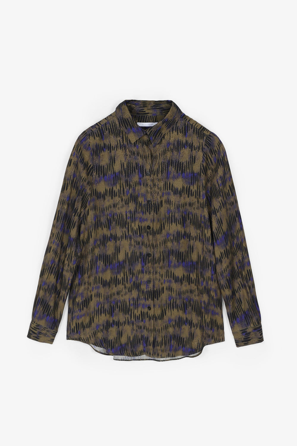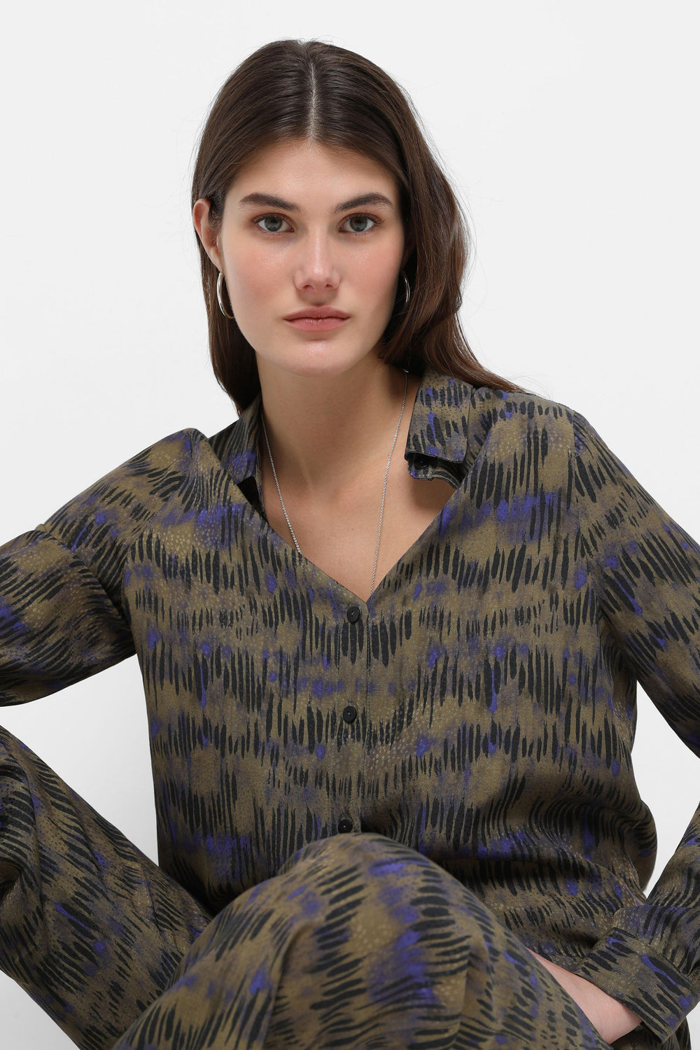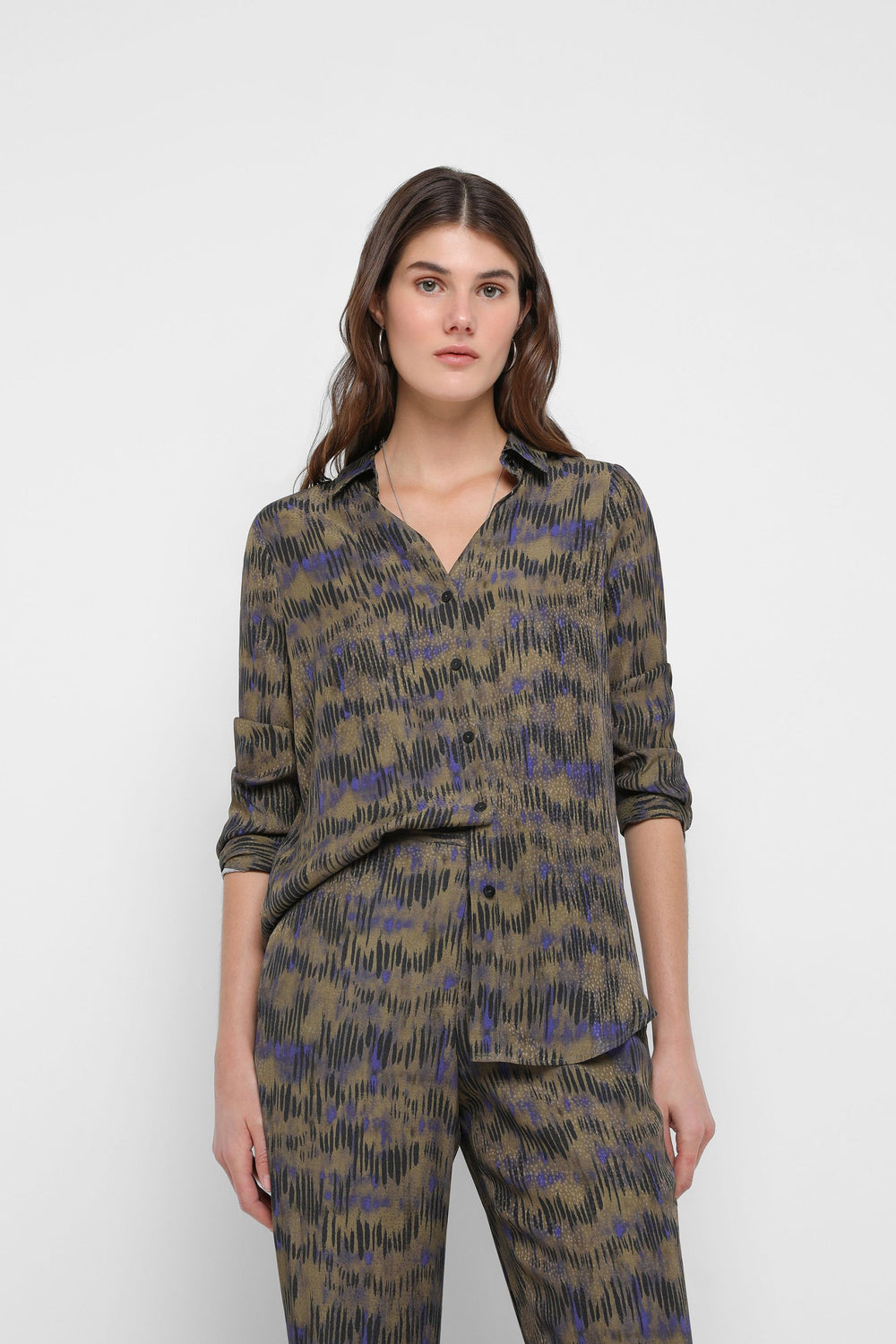 Camisa estampada fluida. Corte Regular Fit, colarinho clássico e fecho com botões. Manga comprida terminada em punho com botão.