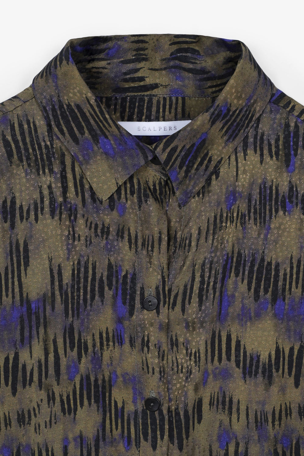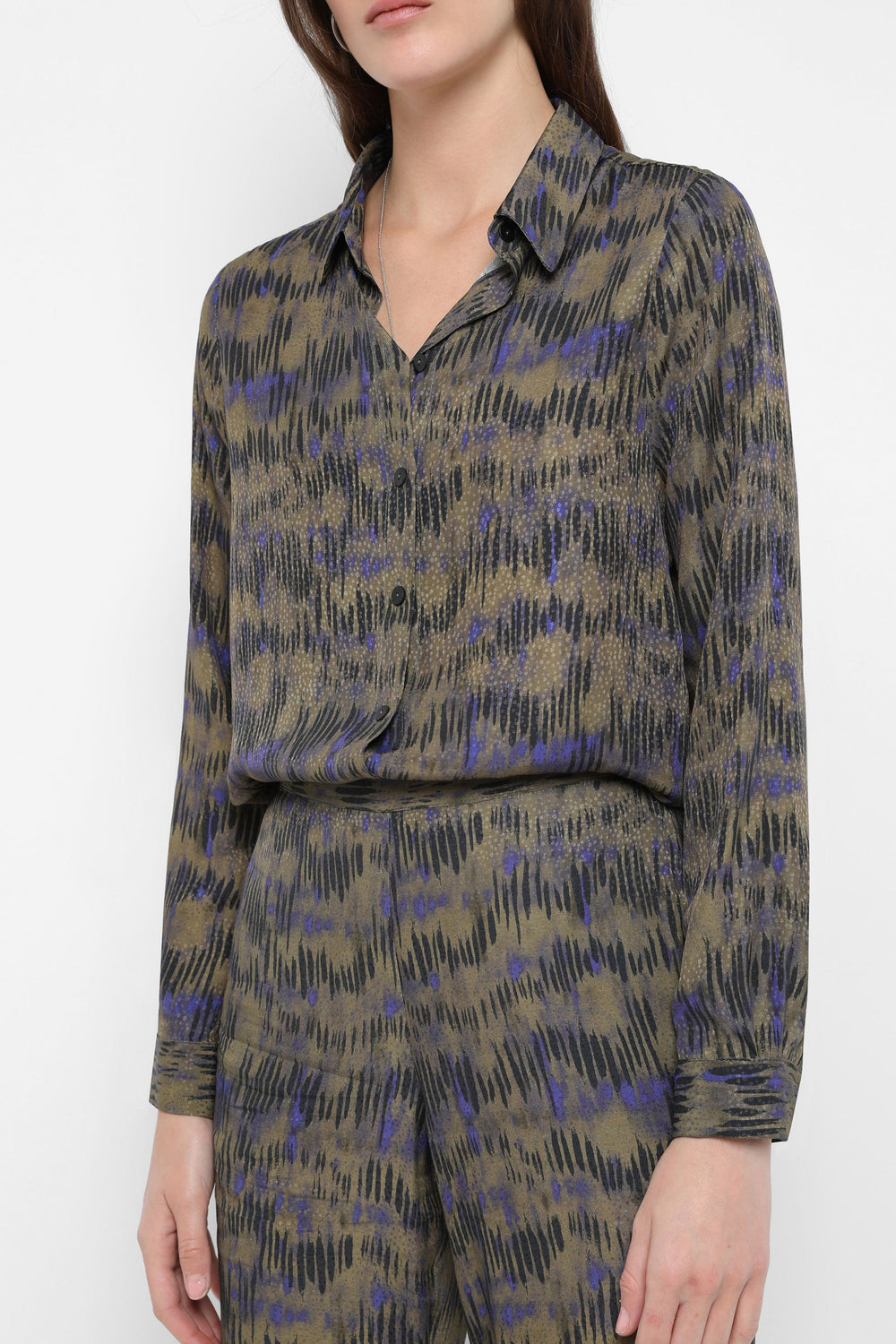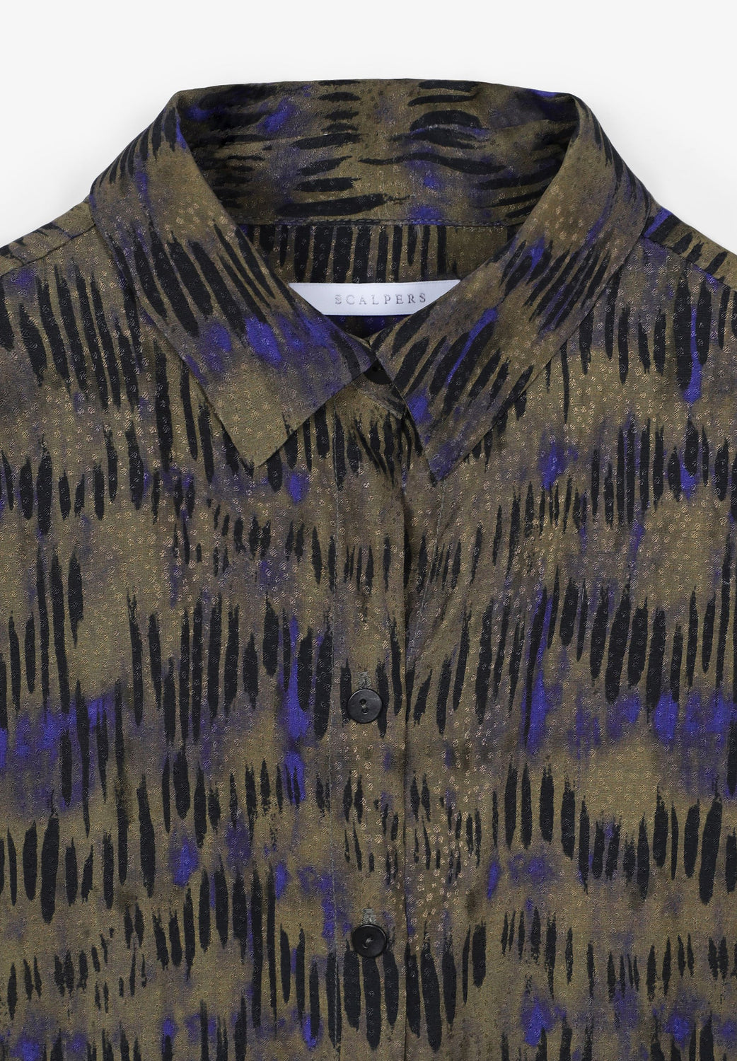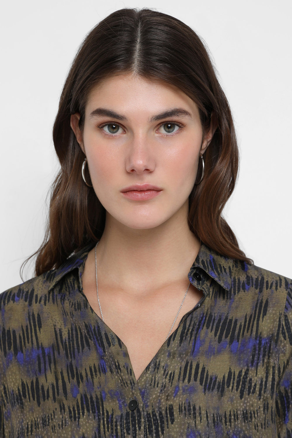 Camisa estampada fluida. Corte Regular Fit, colarinho clássico e fecho com botões. Manga comprida terminada em punho com botão.