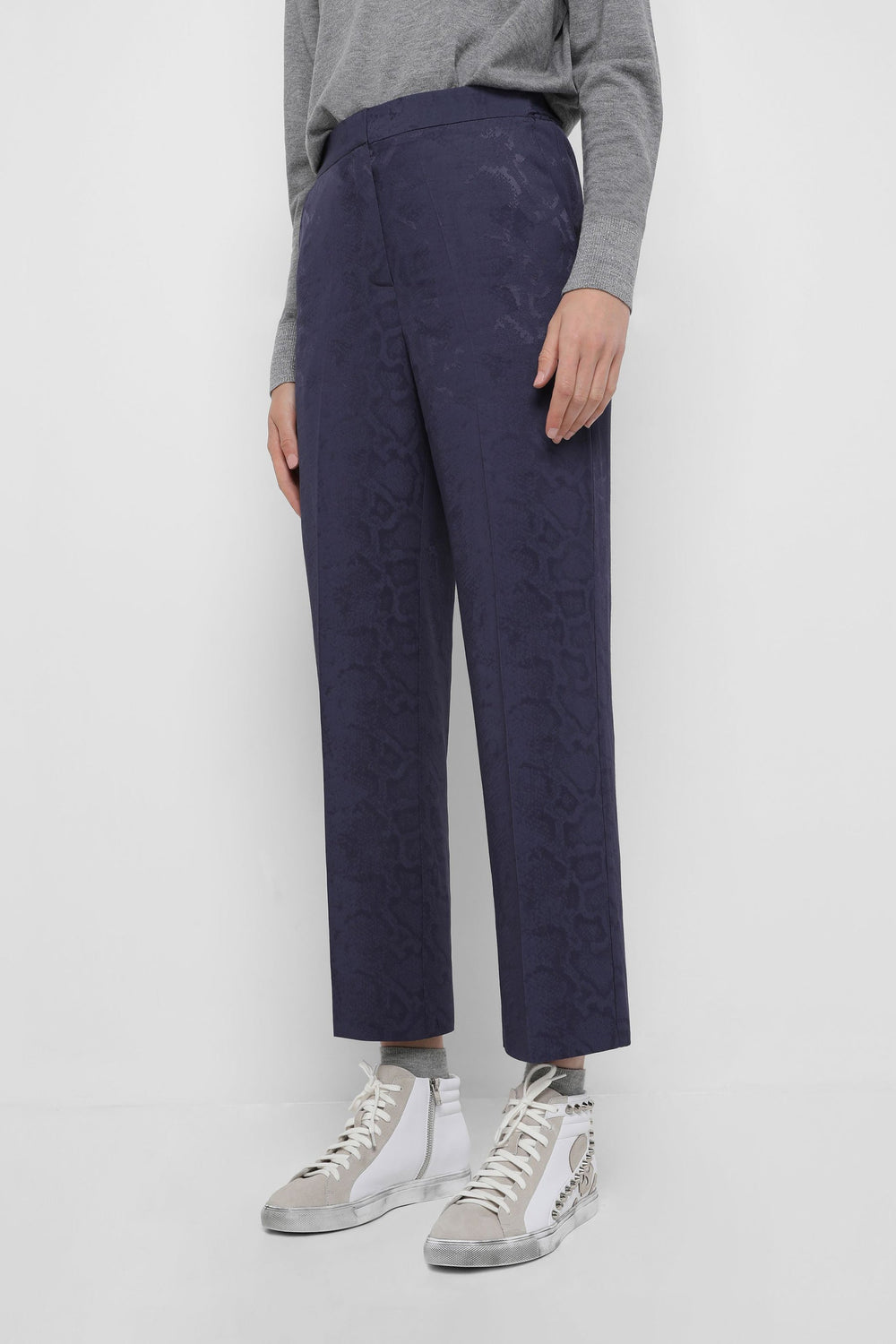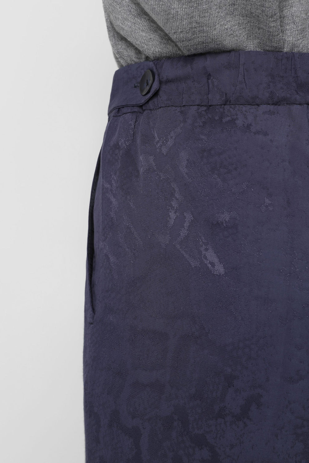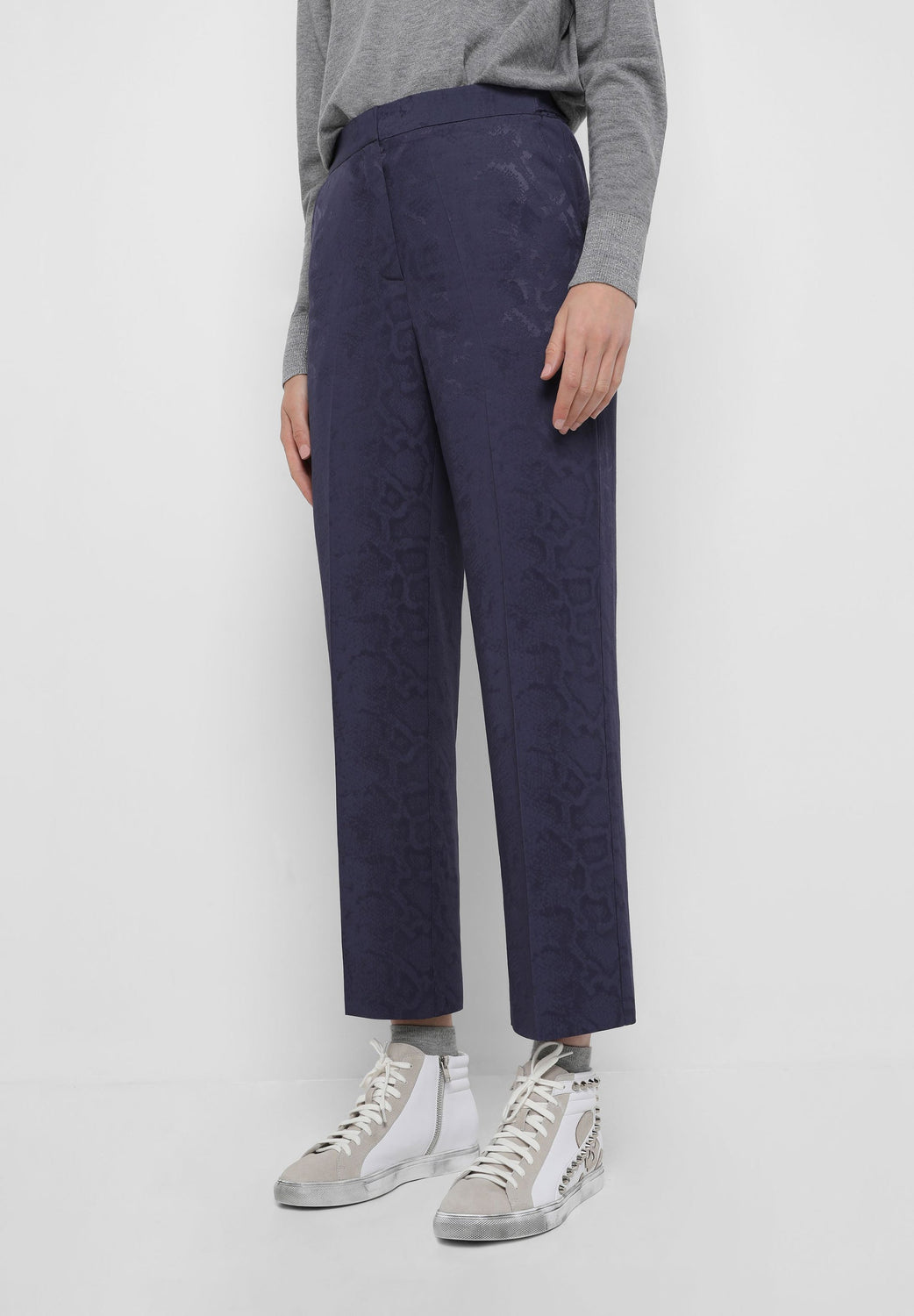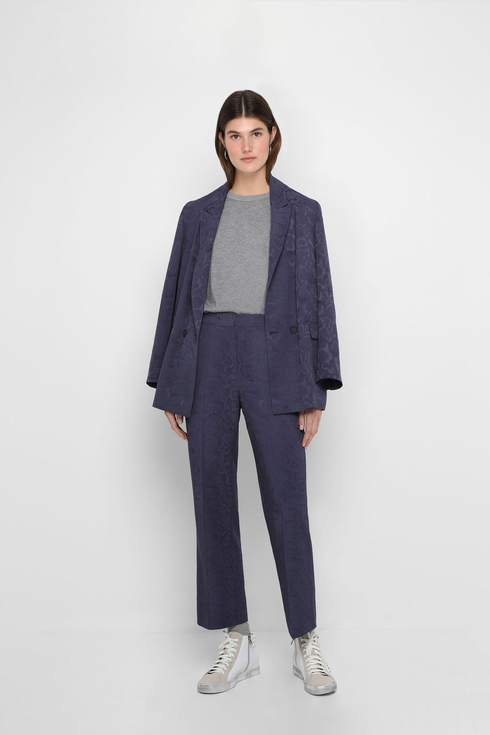 Calças fluidas confecionadas em tecido de jacquard. Corte Regular Fit, fecho com zip e colchete e bolsos laterais.