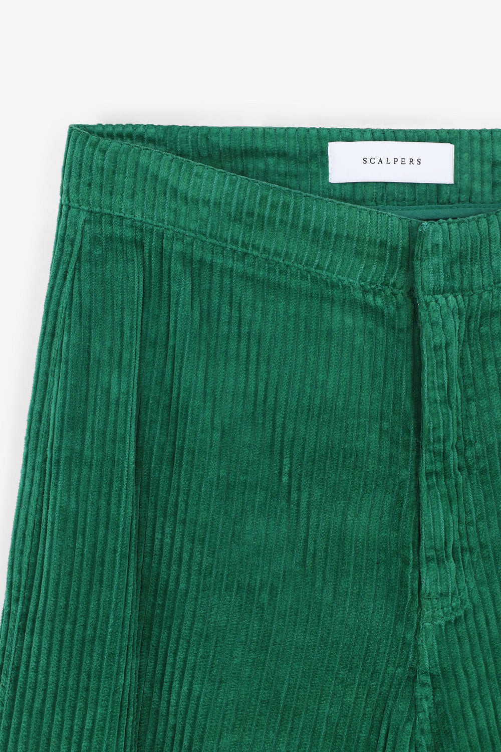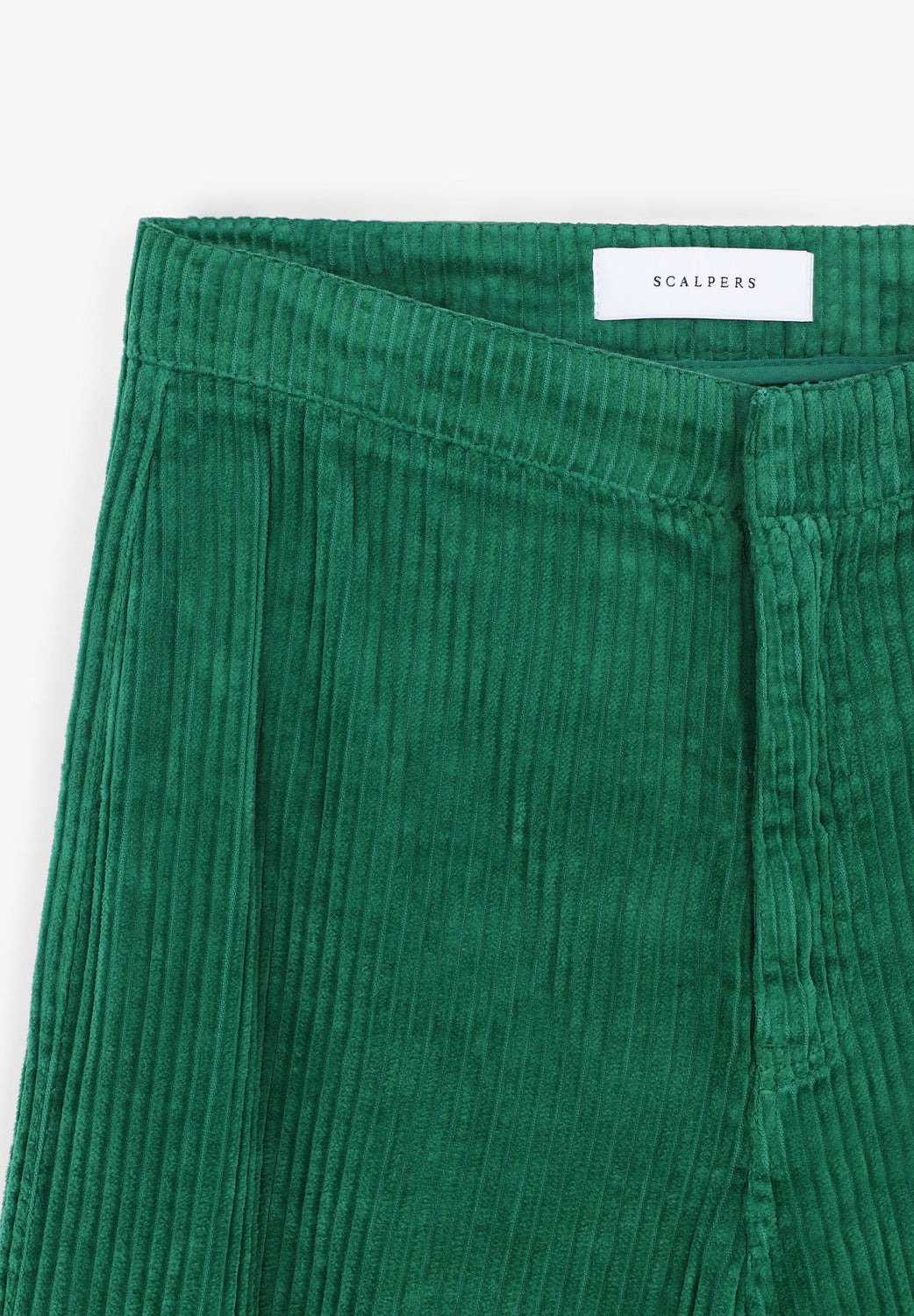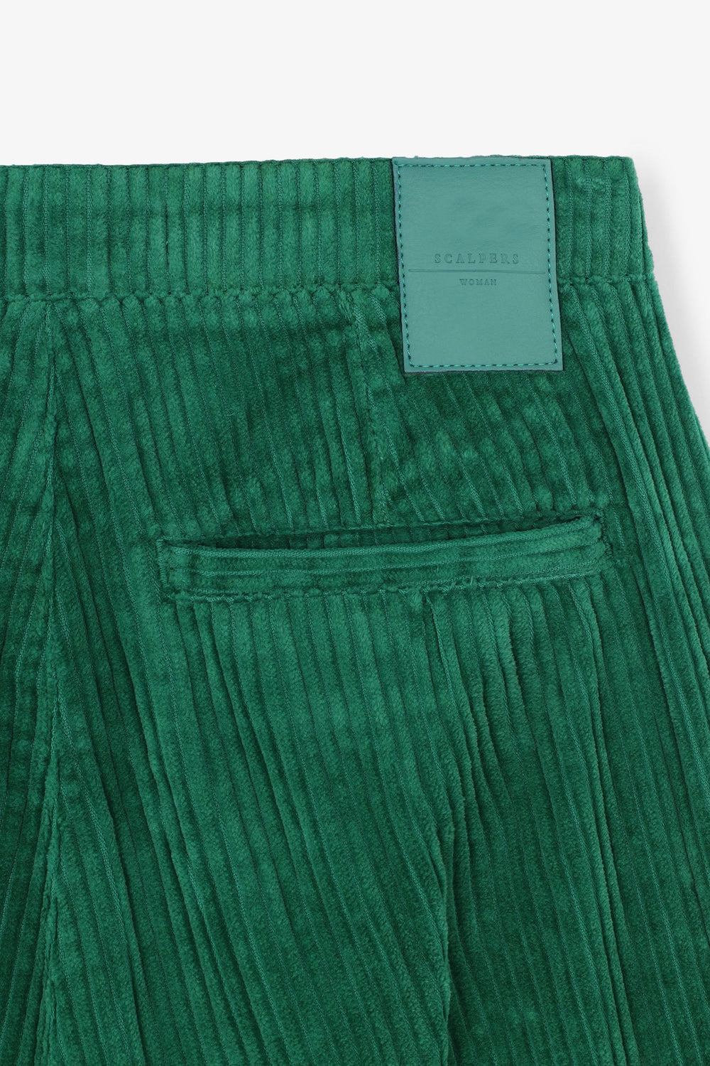 Calças de bombazina confecionadas em 100% algodão. Corte boca de sino com cintura subida, fecho com zip e colchete.