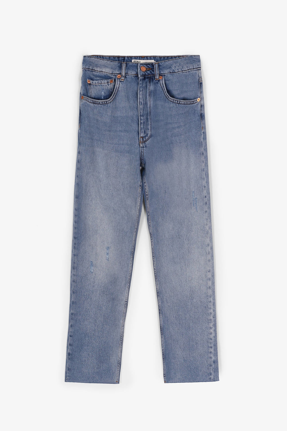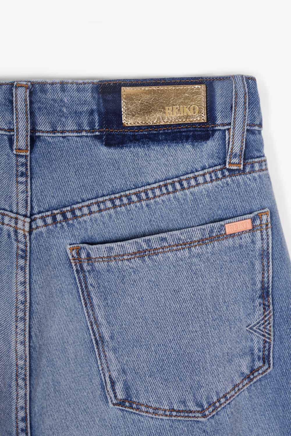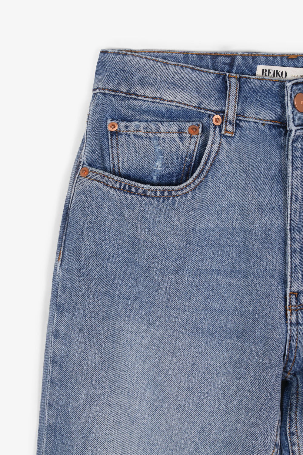 Jeans Reiko confeccionados en tejido 100% algodón. Corte regular fit con cintura alta. Tiene trabillas y cinco bolsillos.