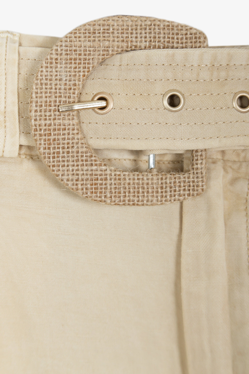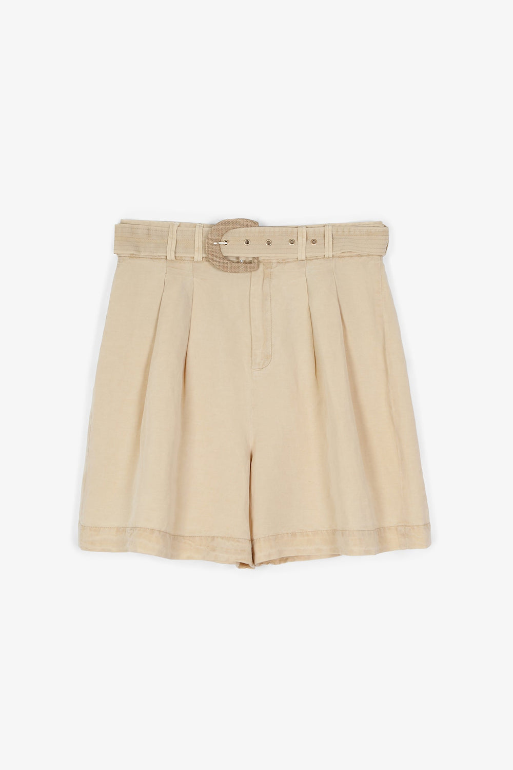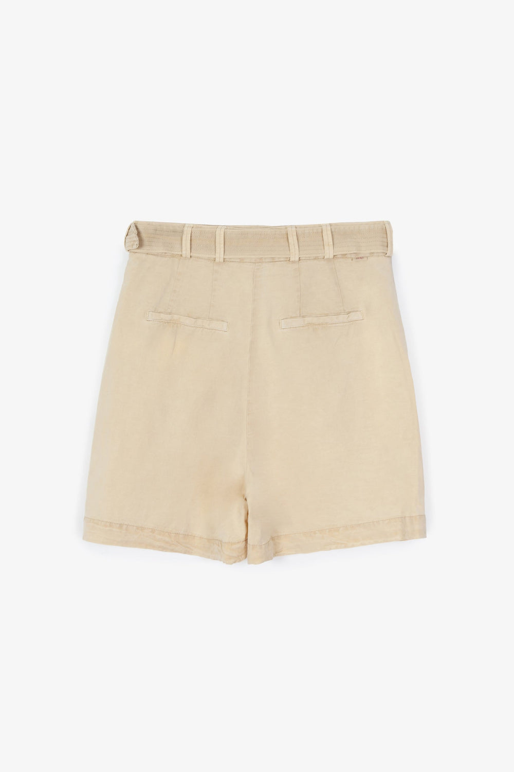 Shorts Reiko confeccionados en un tejido mezcla lyocell y lino. Corte regular fit con cintura alta. Bolsillos traseros con ribetes.