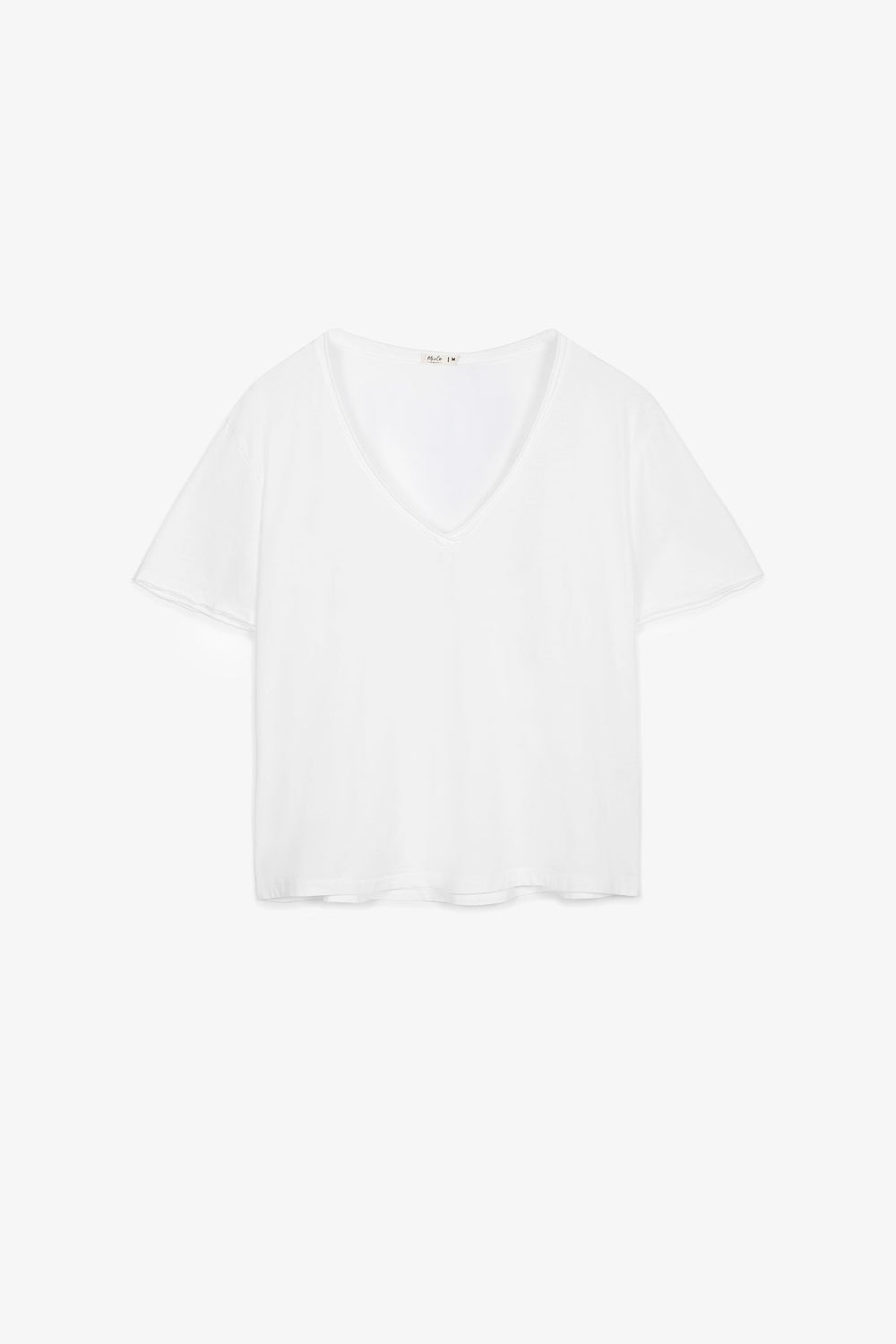 Camiseta básica Mi&Co de manga corta y cuello pico. Confeccionada en tejido de lino.