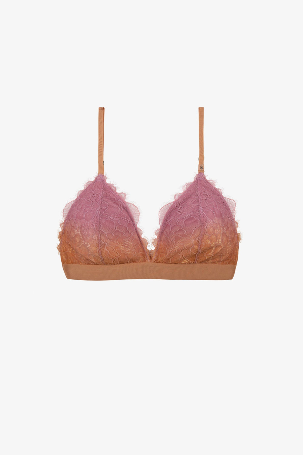 Sujetador Love Stories confeccionado en encaje floral teñido a mano logrando un efecto degradado.