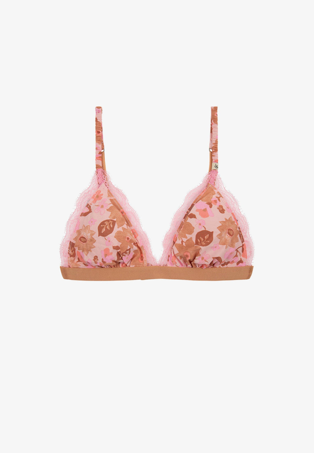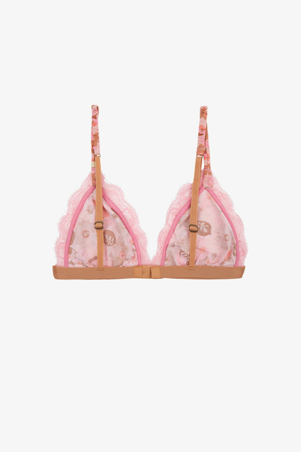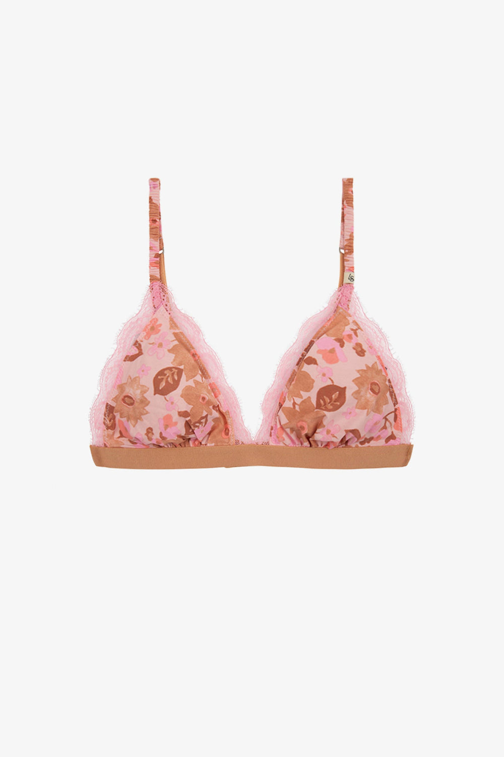 Sujetador de triángulos Love Stories confeccionado en tela suave y brillante con estampado de flores.