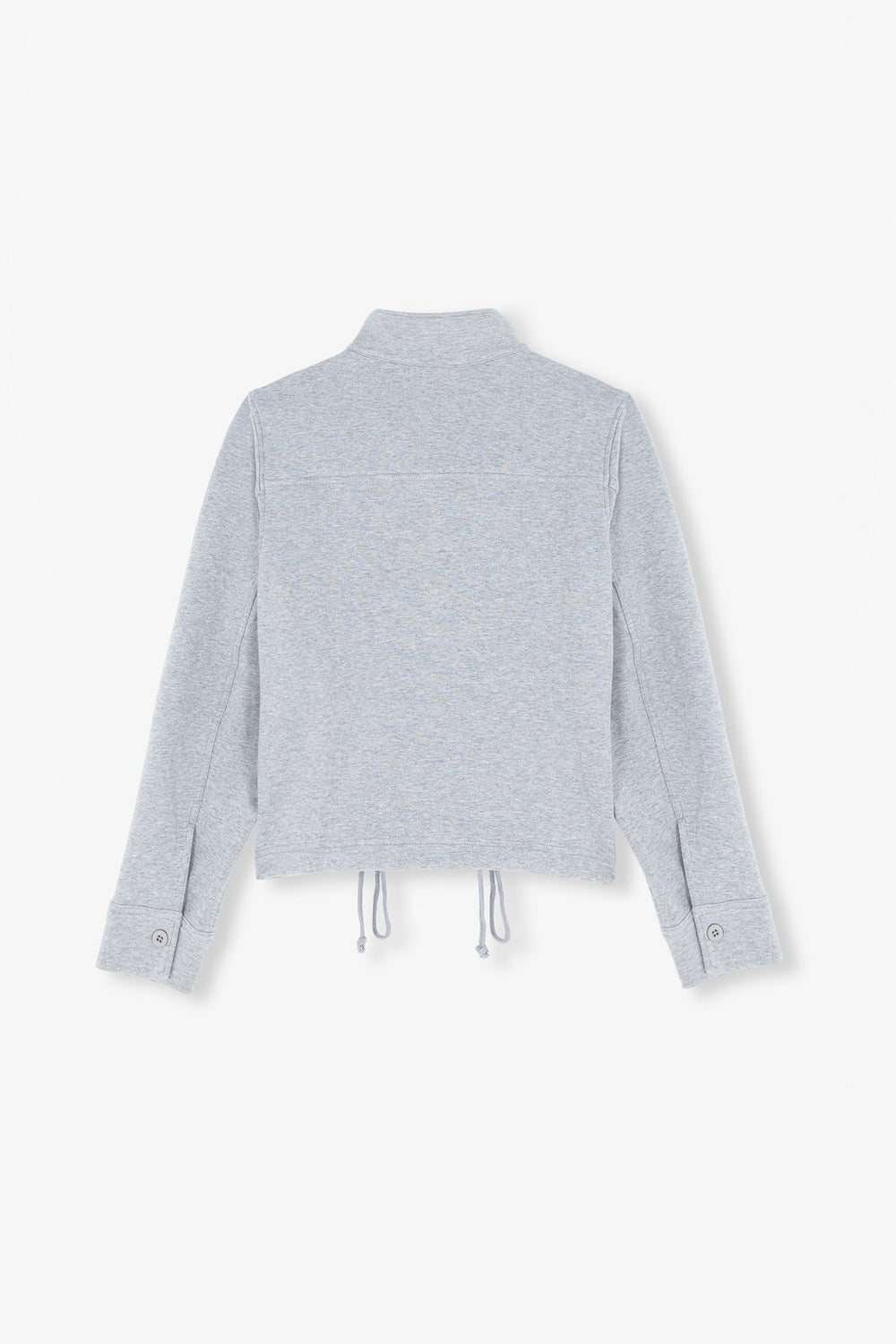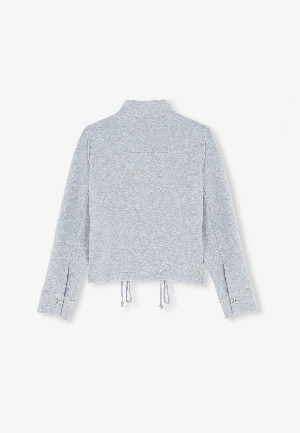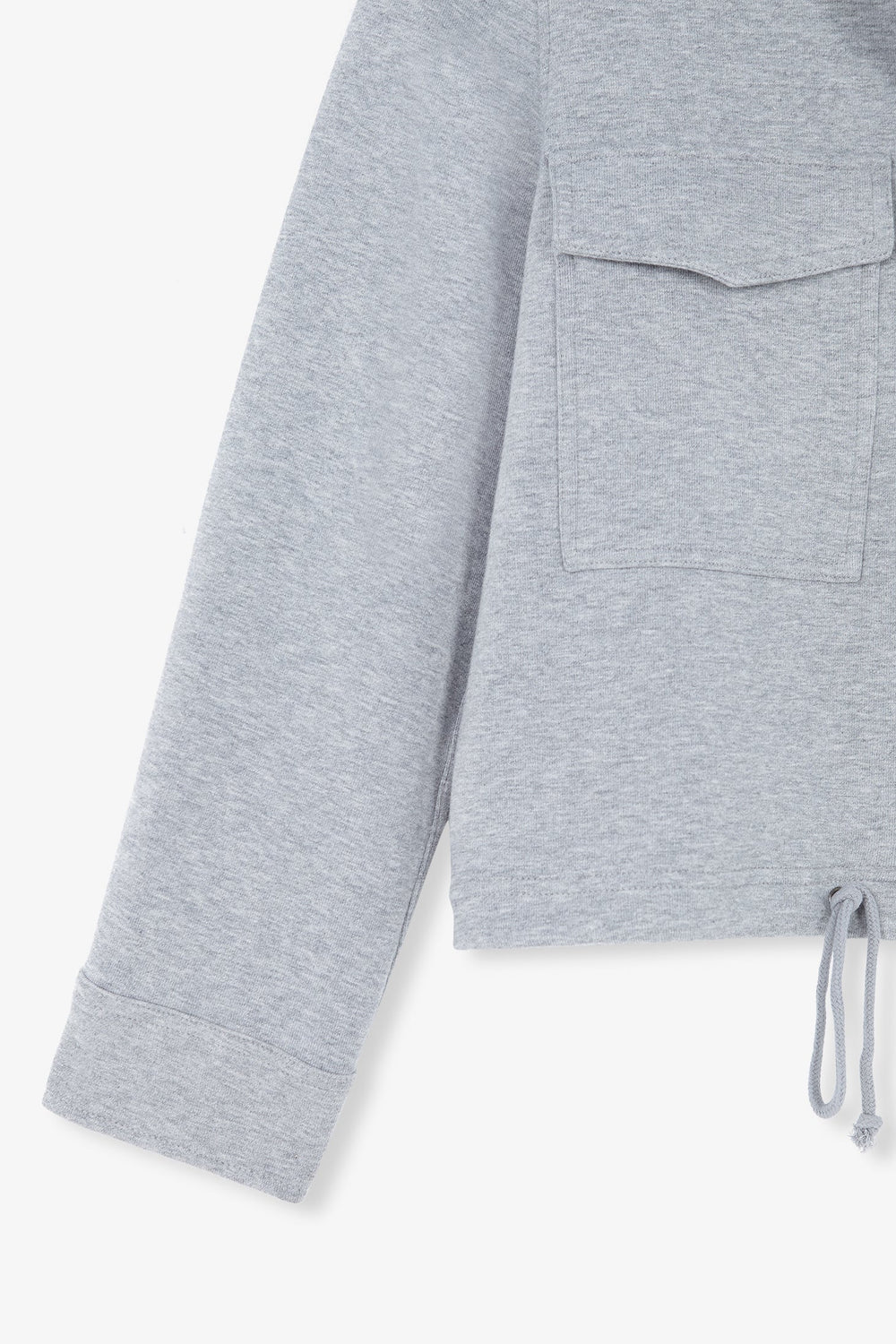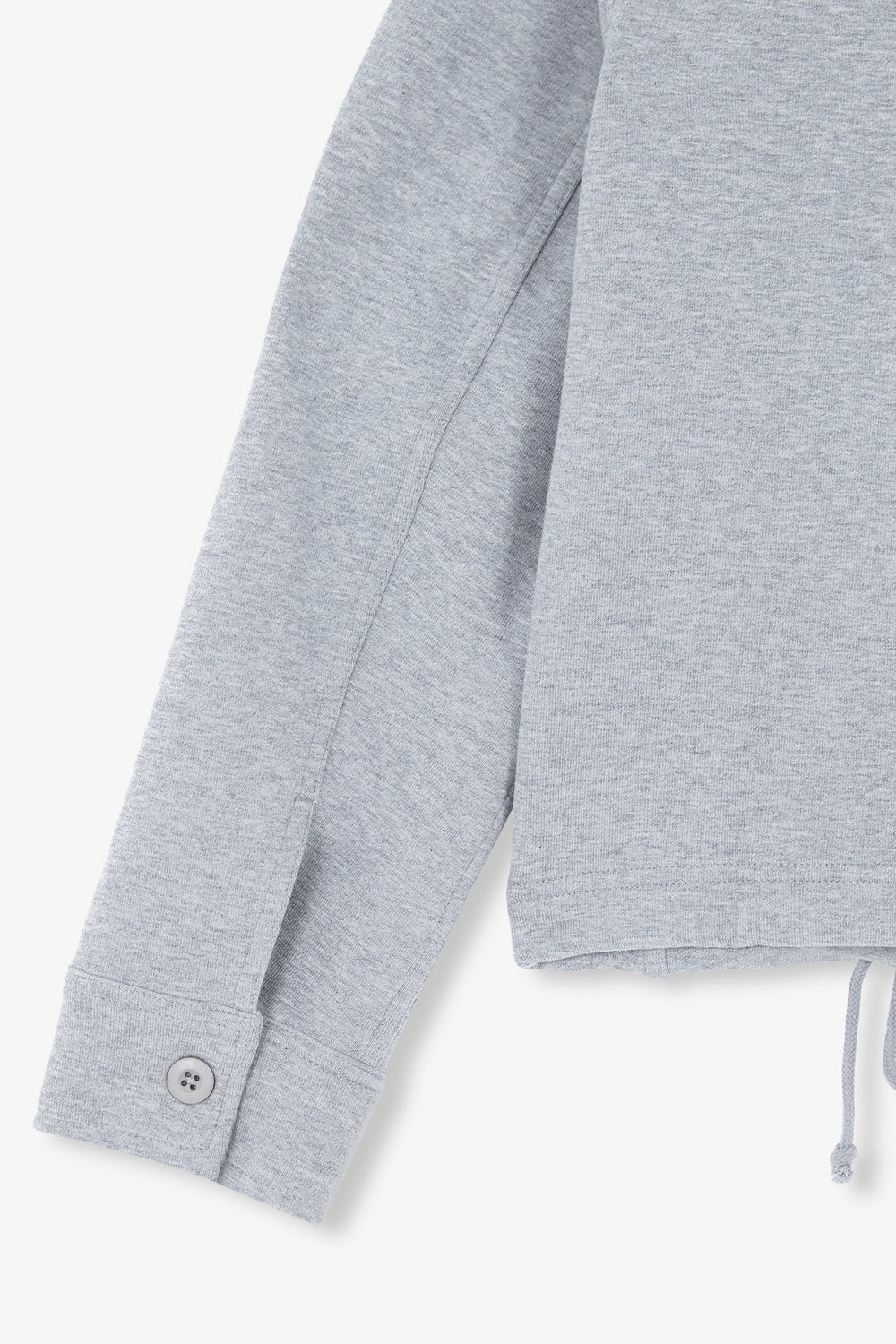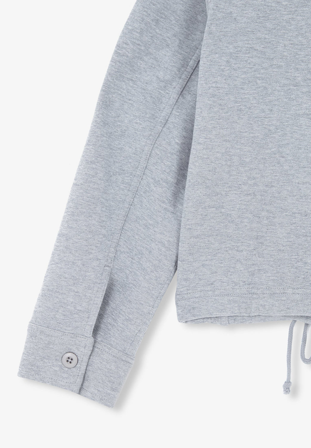- Ajuste com cordão na bainha e comprimento ligeiramente recortado.
