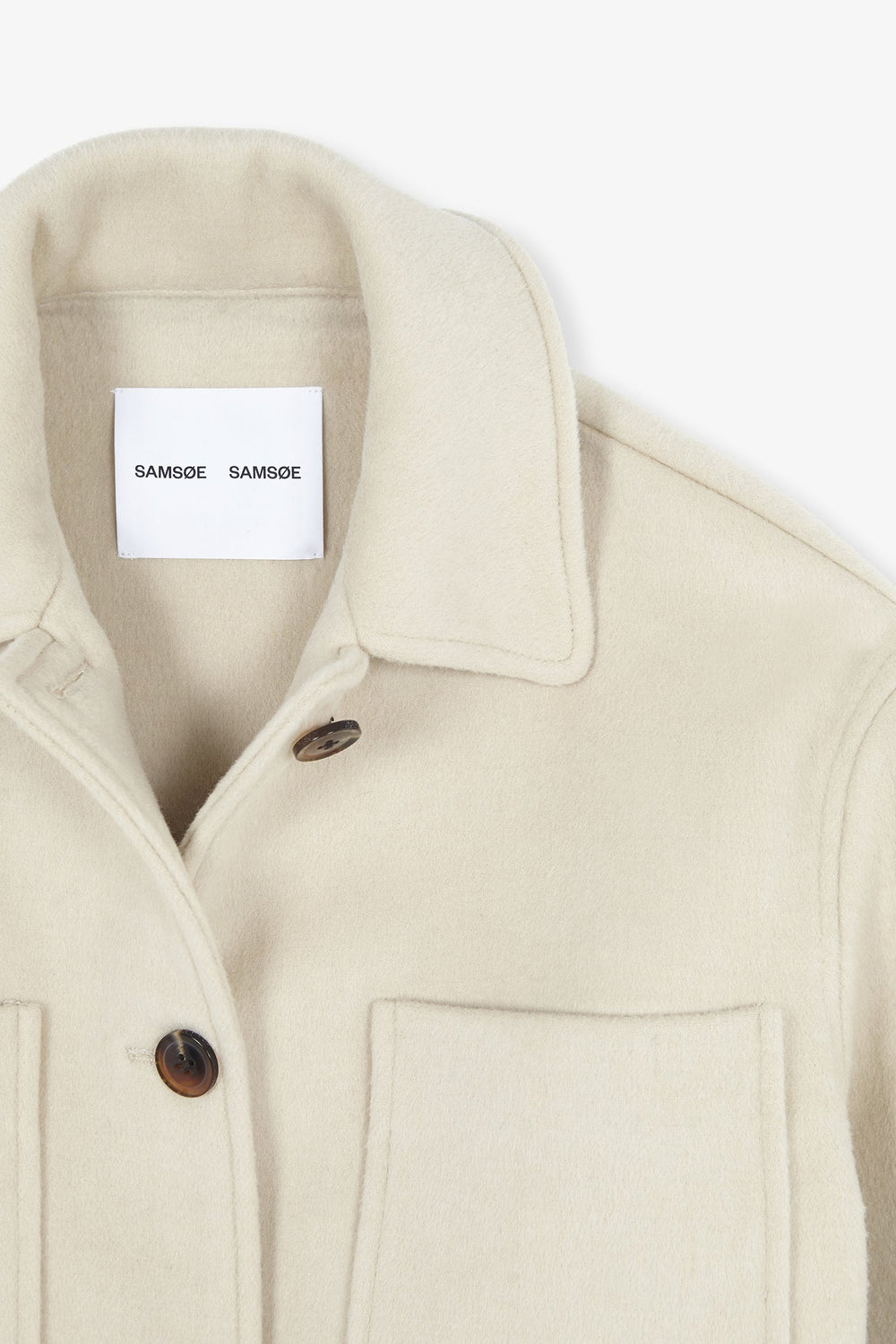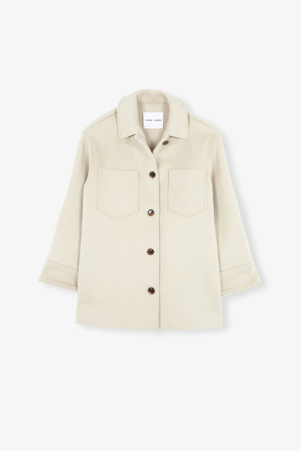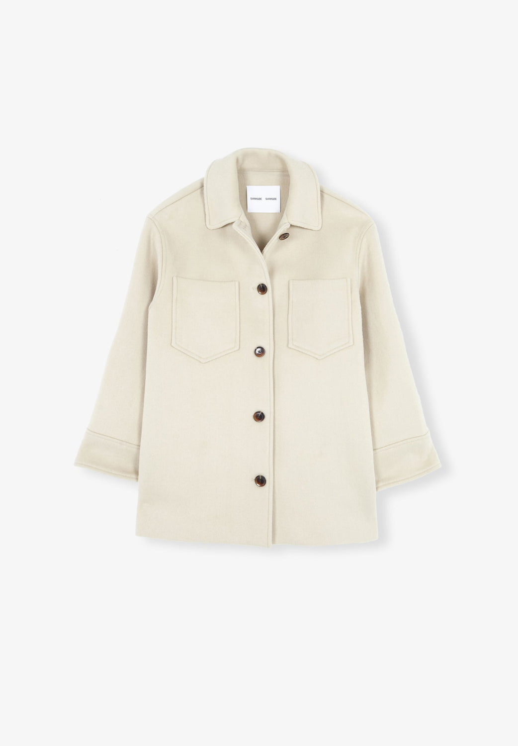 Sobrecamisa Samsoe confeccionada en un tejido mezcla de lana y poliéster con una suave superficie cepillada.