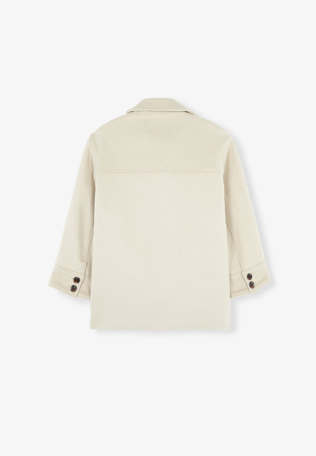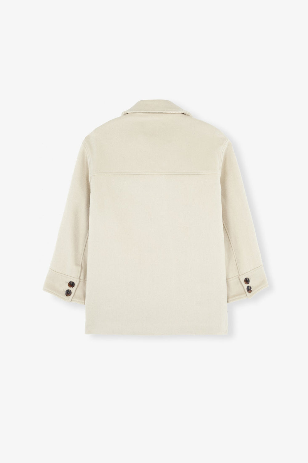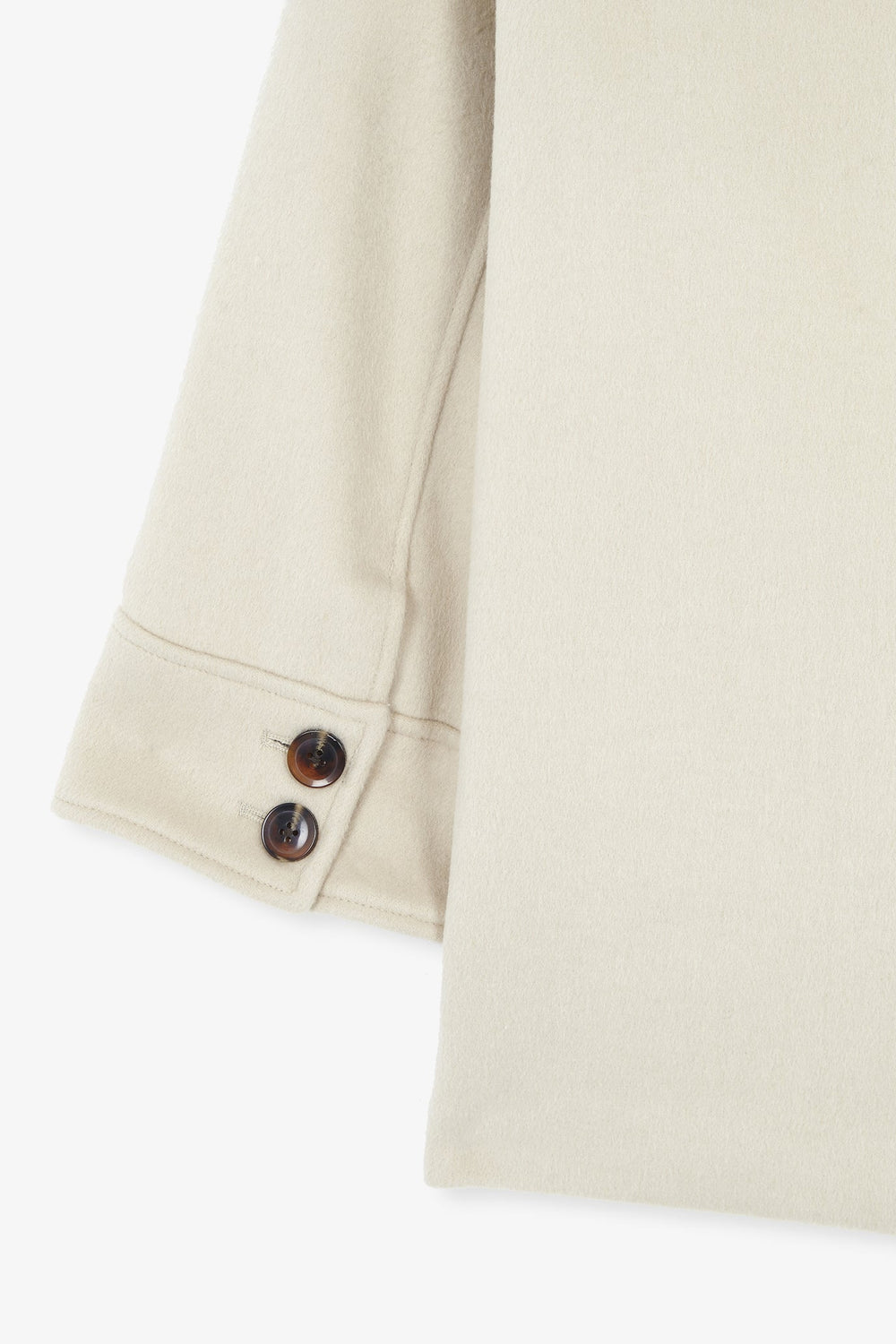 Sobrecamisa Samsoe confeccionada en un tejido mezcla de lana y poliéster con una suave superficie cepillada.
