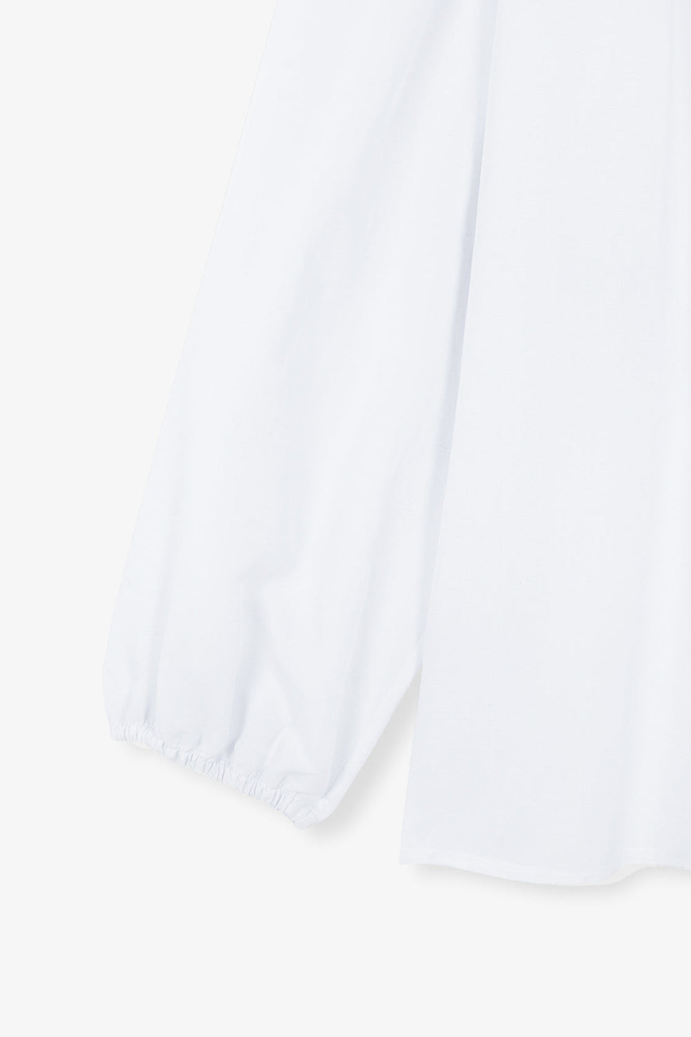 - Corte holgado con sisa profunda y mangas largas abullonadas.