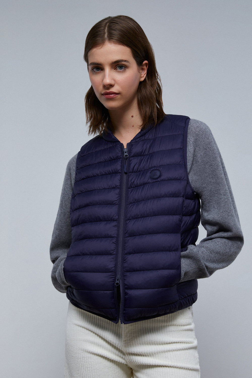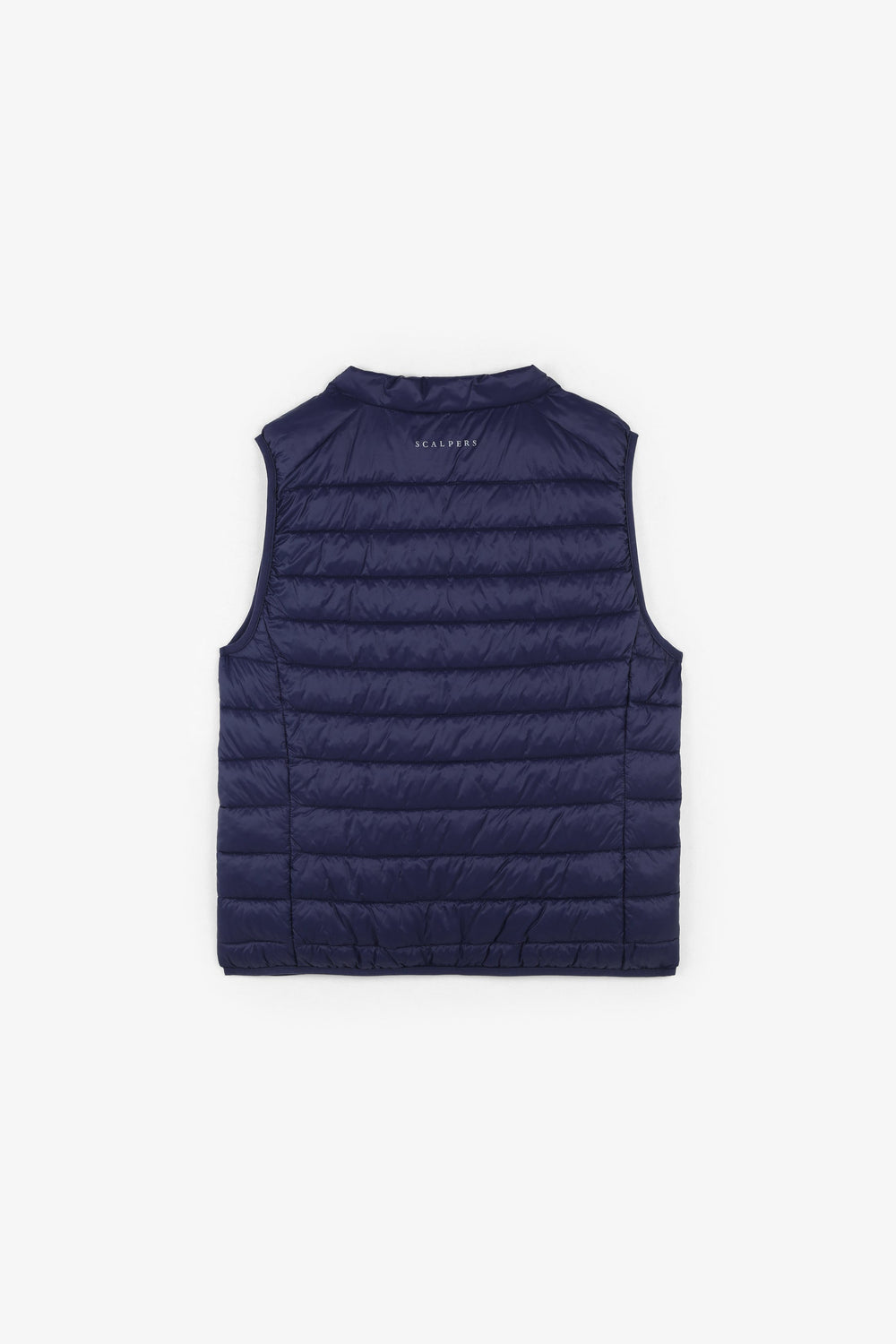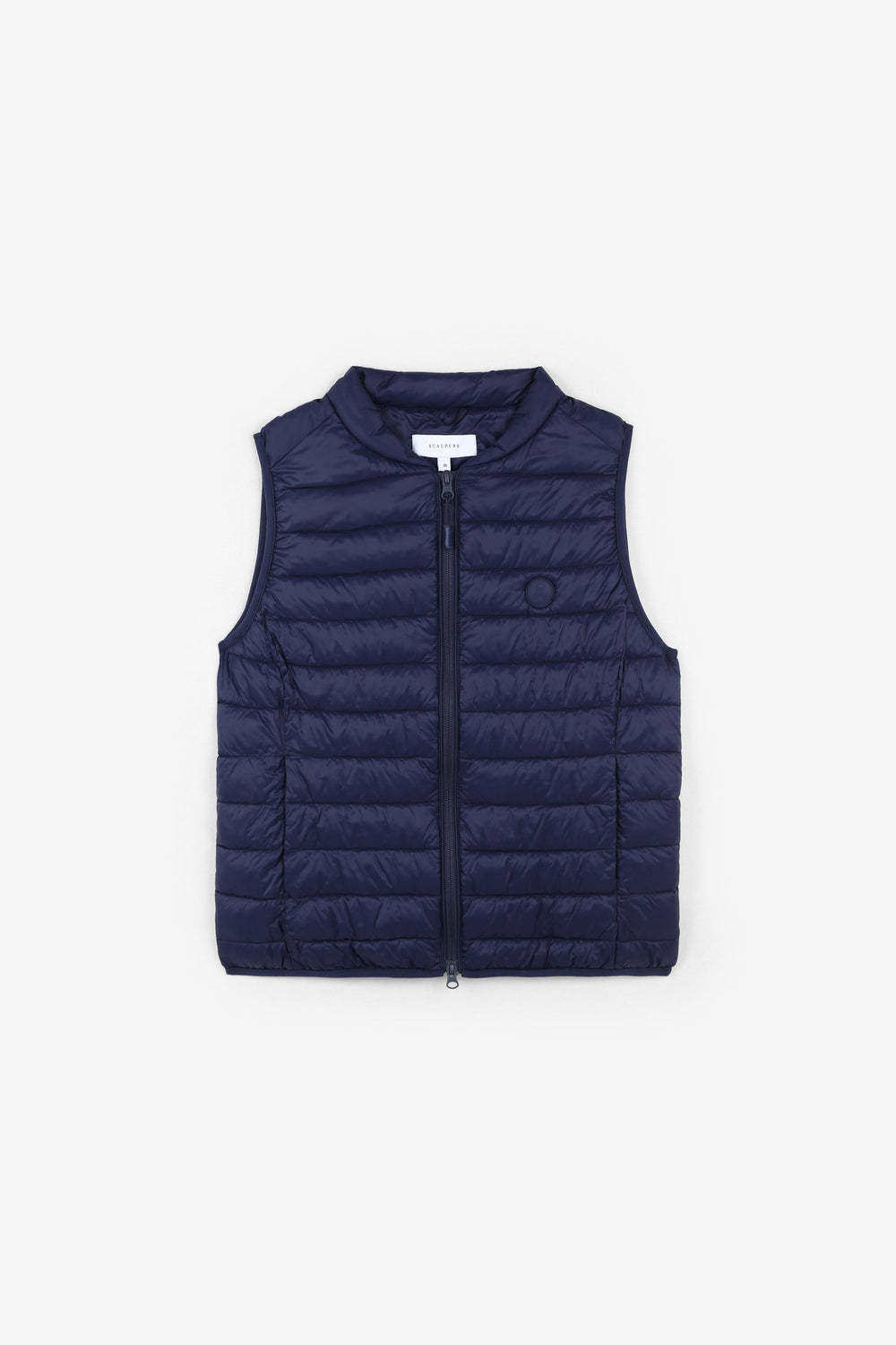 Colete acolchoado com logótipo confecionado em nylon. Corte Regular Fit, gola subida e fecho com zip. Bolsos com zip.