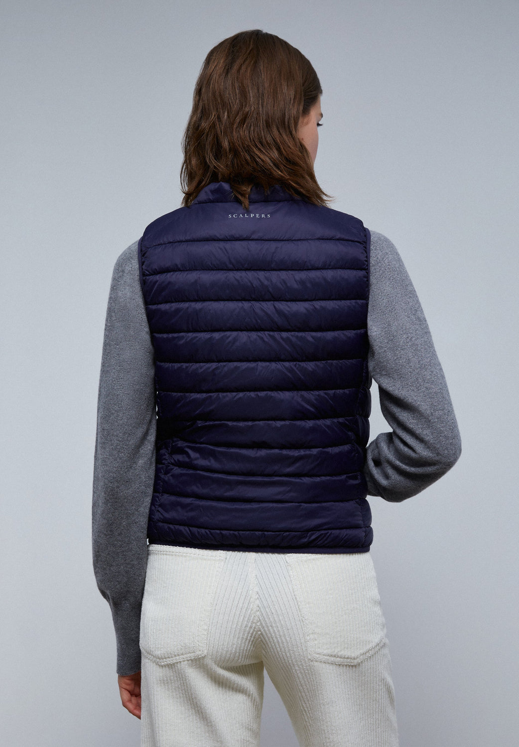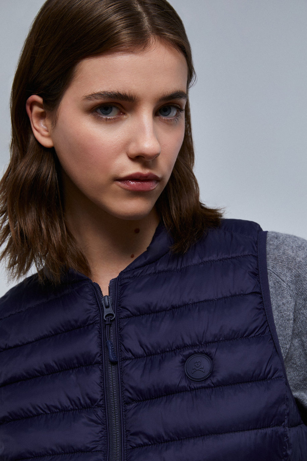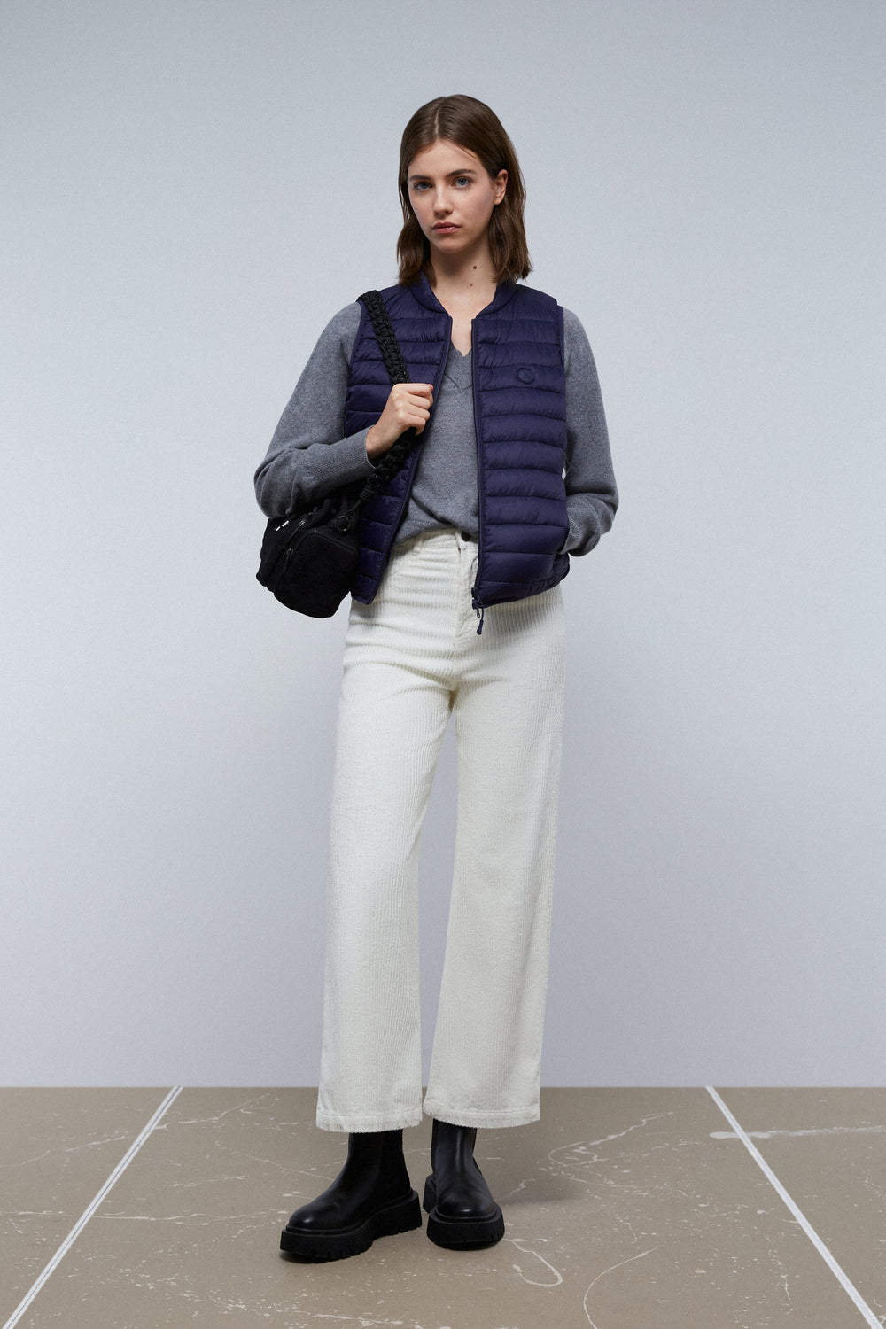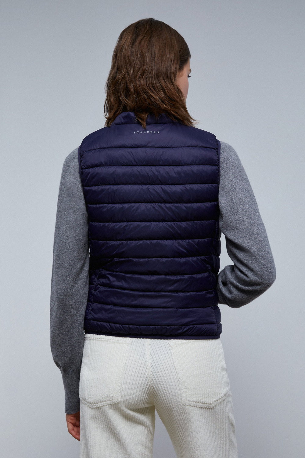 Colete acolchoado com logótipo confecionado em nylon. Corte Regular Fit, gola subida e fecho com zip. Bolsos com zip.