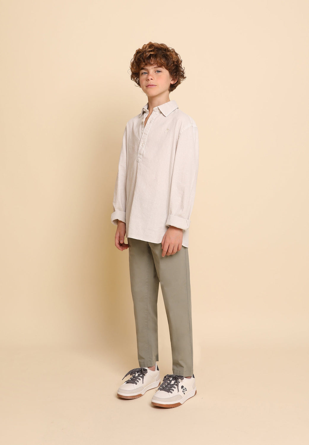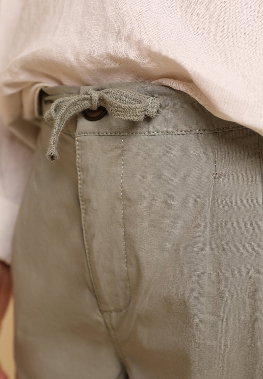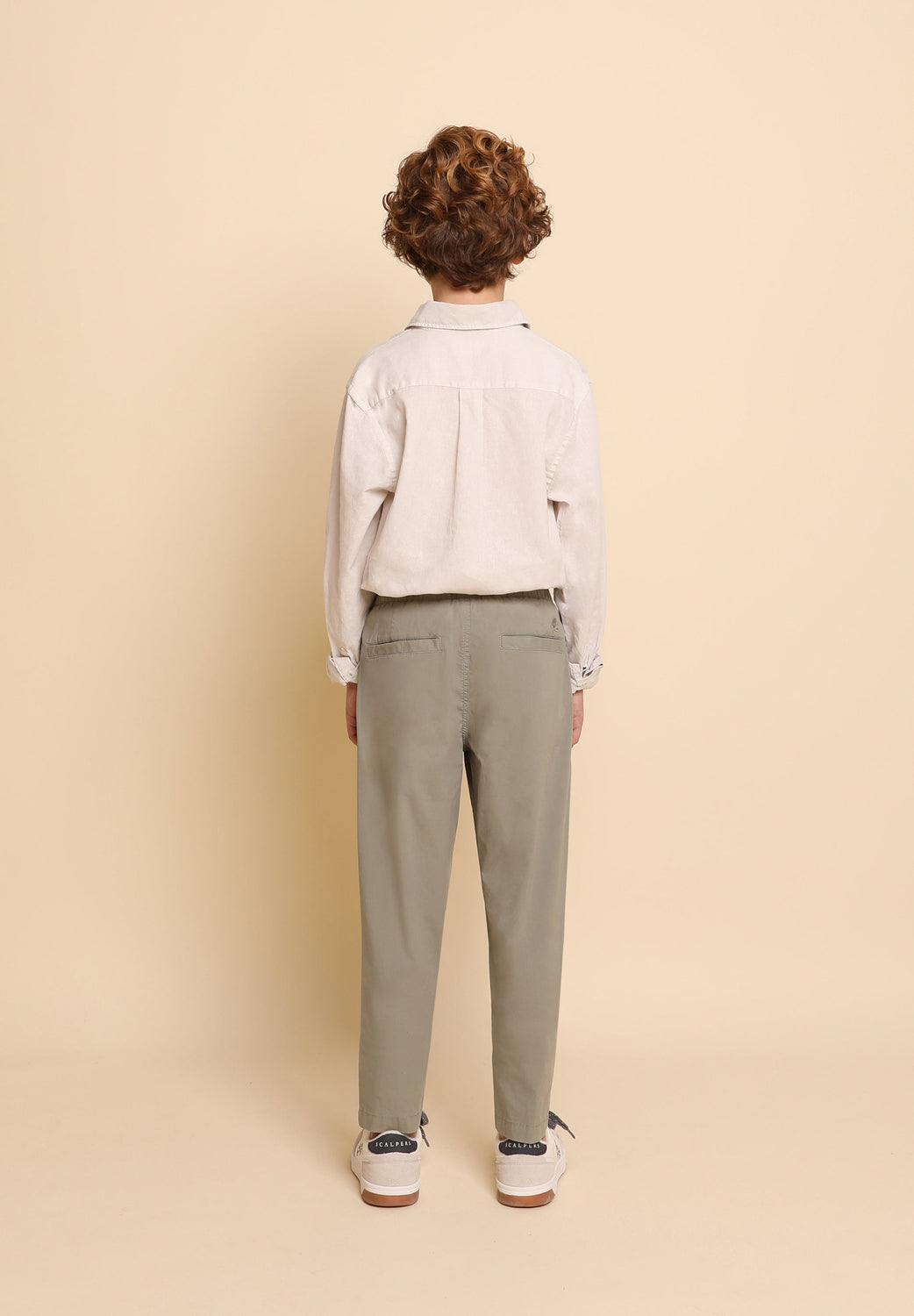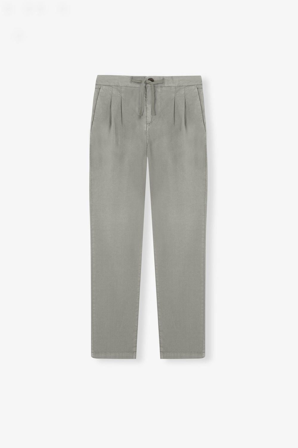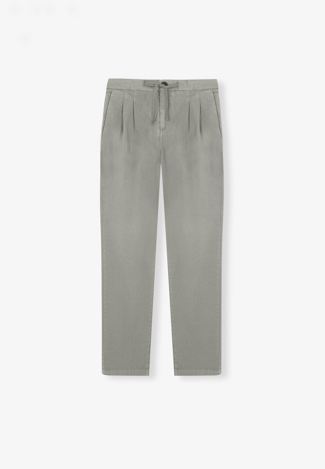 Calças tipo chinos leves confecionadas em algodão ligeiramente elástico. Corte Regular Fit com pinças, fecho com laçada e botão e fecho de correr e bolsos laterais e atrás.