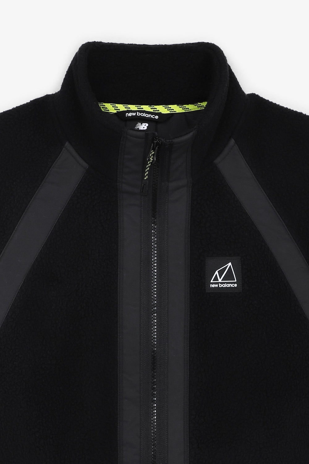Chaqueta New Balance confeccionada en tejido sherpa glacial 100% poliéster reciclado.