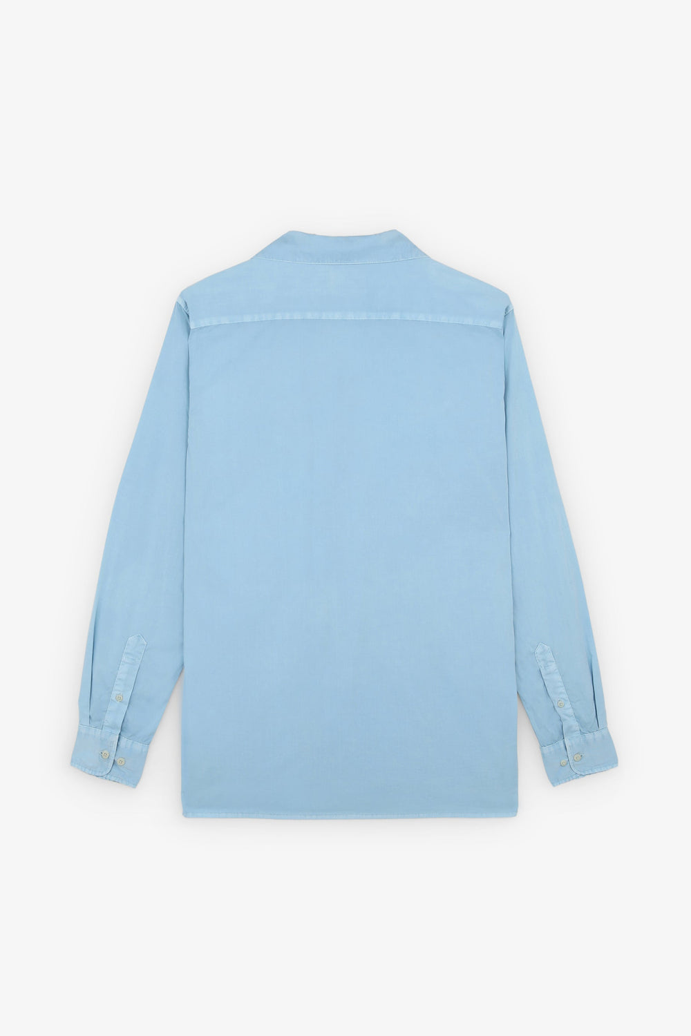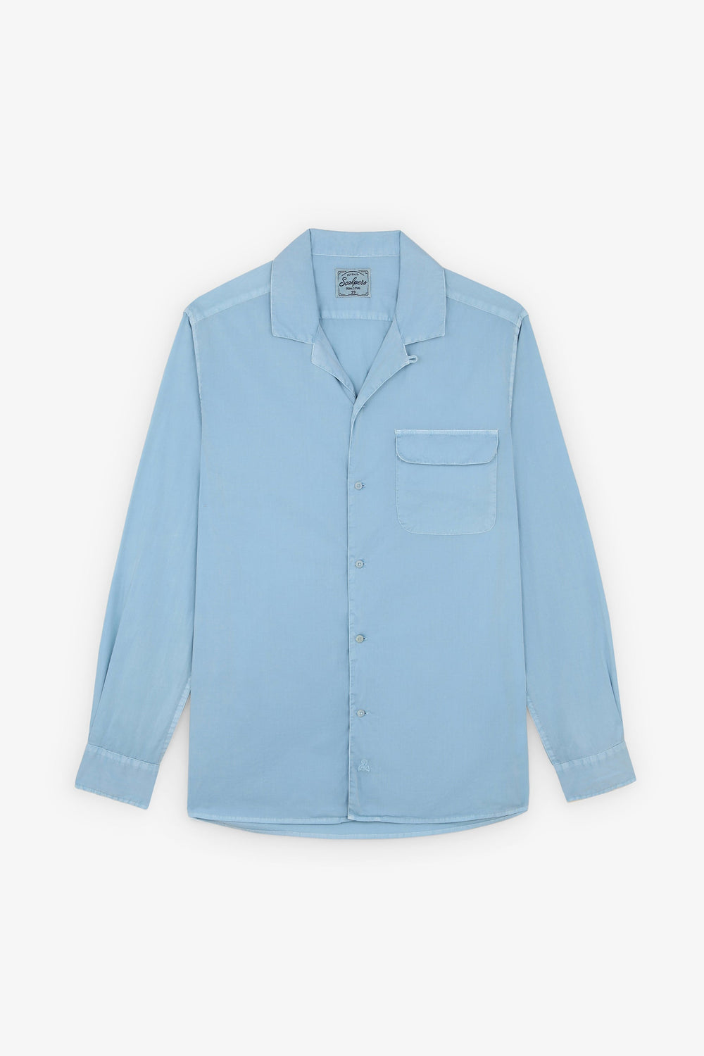 Camisa de corte tipo pijama confecionada em algodão ligeiramente elástico. Corte Regular Fit, decote tipo pijama e manga comprida terminada em punho. Bolso no peito.
