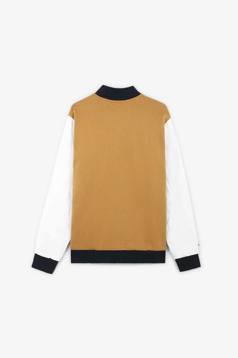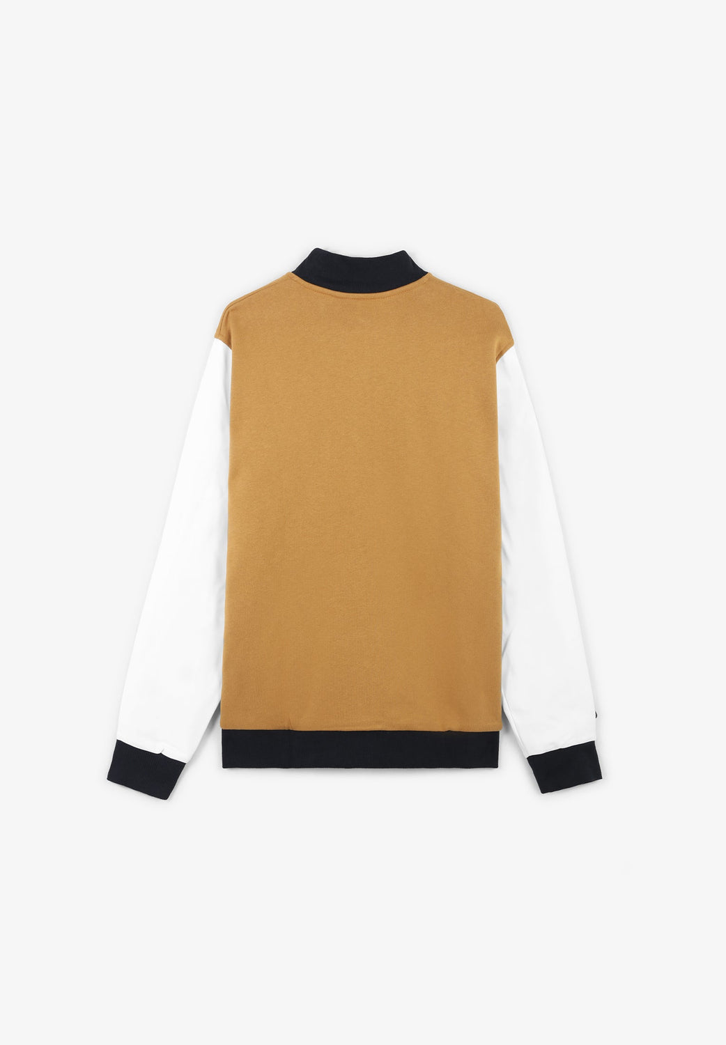 - Nervuras caneladas nas mangas, gola e bainha.
