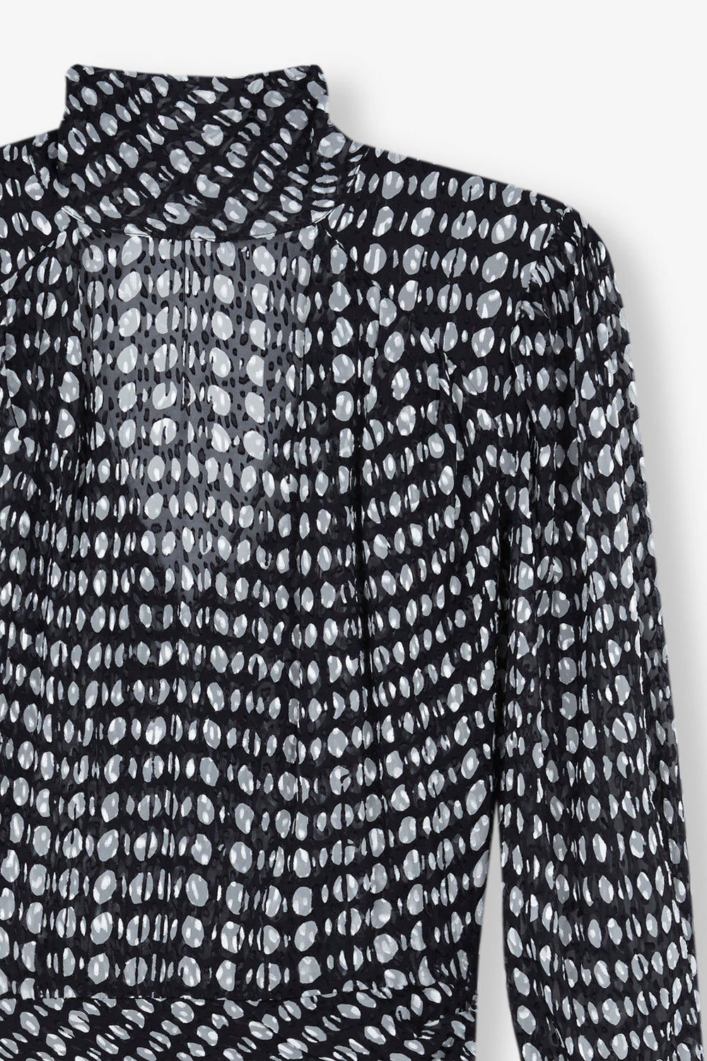 - Detalle juegos de transparencia y abertura triangular en la espalda.