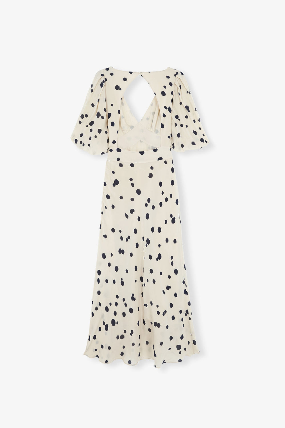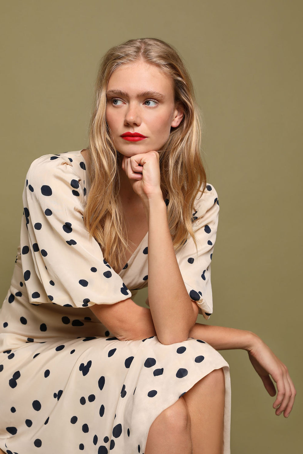 No solo con básicos se completa un buen armario. Apuesta por prendas más arriesgadas, como este vestido de lunares y estética parisina que caracteriza a Ba&sh.