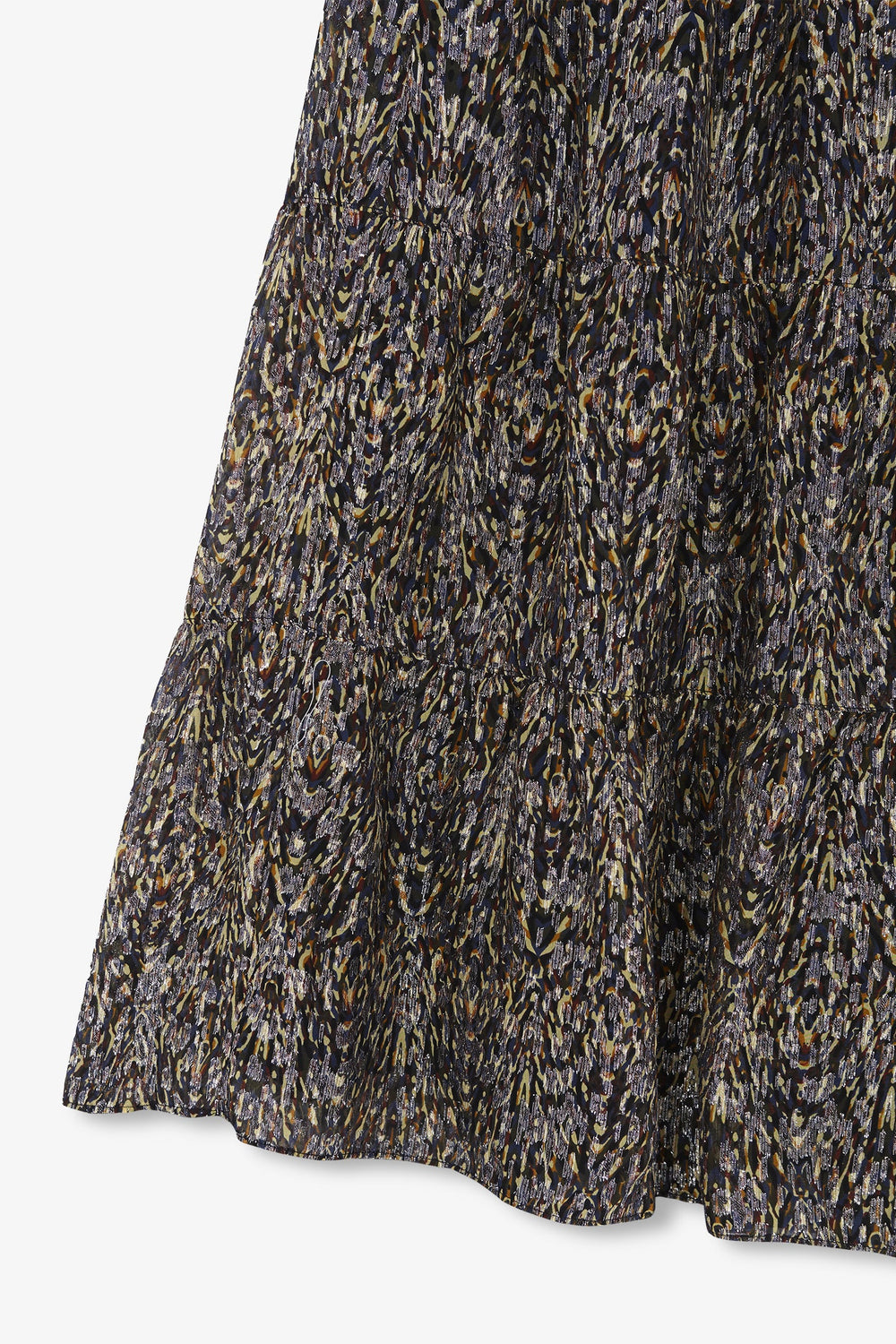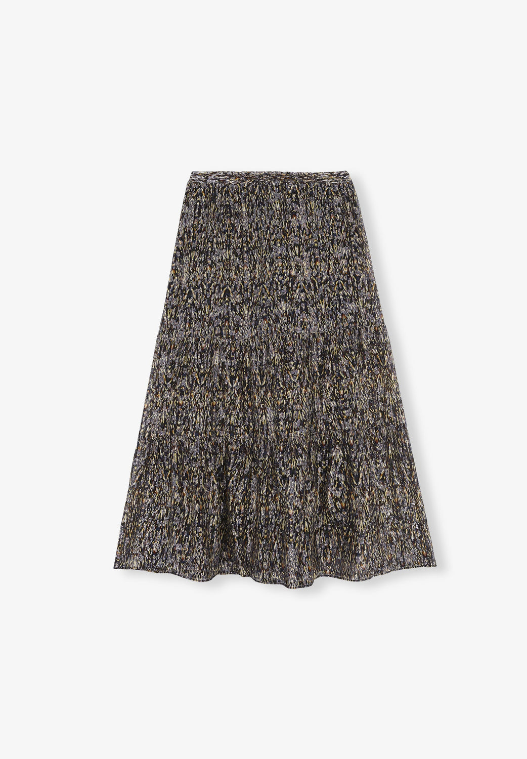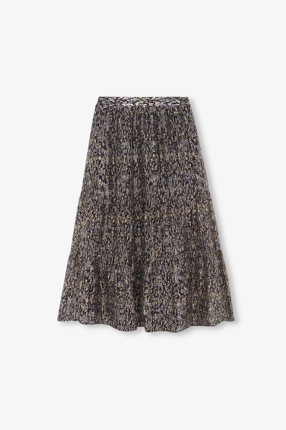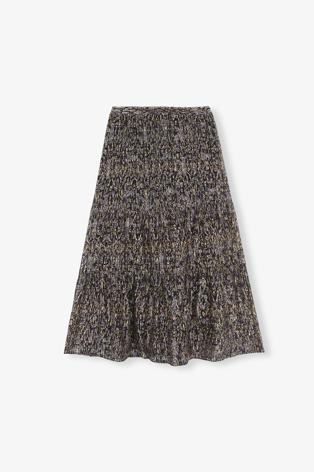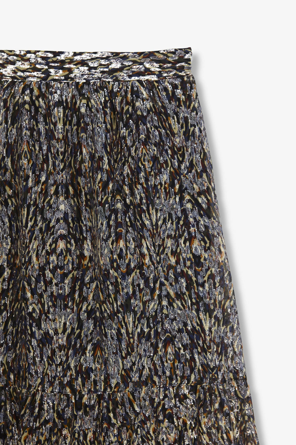 Falda Ba&sh confeccionada en tejido mezcla seda, viscosa y hilo metálico.