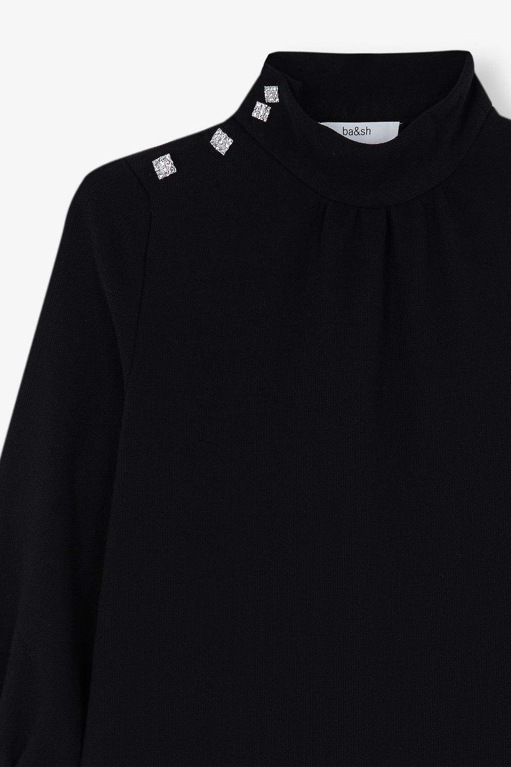 Vestido corto Ba&sh confeccionado en tejido mezcla de lana, poliéster y viscosa.