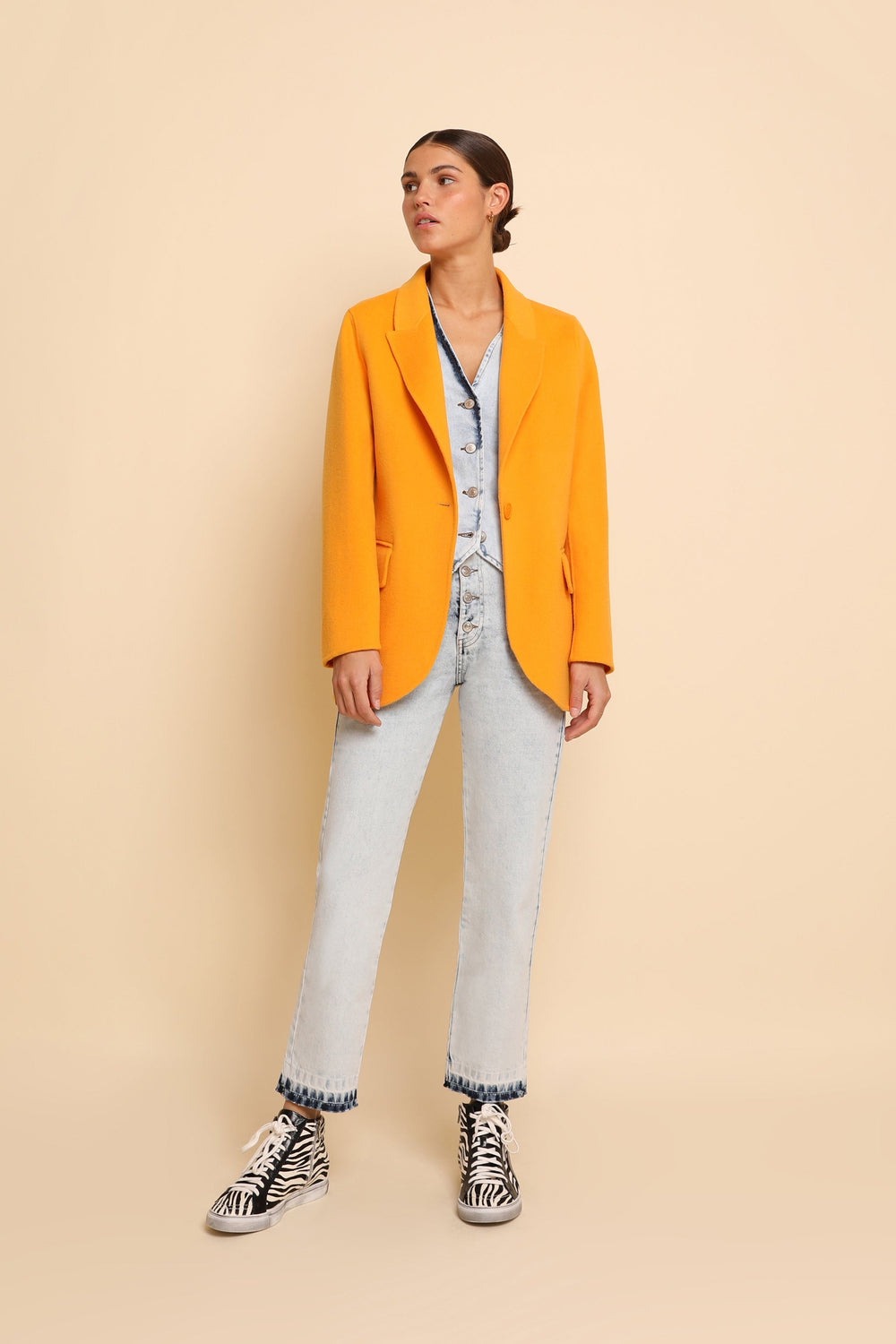 Casaco de dupla face confecionado em mistura de lã. Corte Regular Fit, gola de lapelas e manga comprida. Fecho com botão e bolsos com aba.